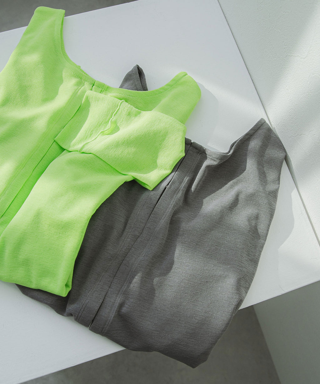 インナーにはブラトップやキャミソールなどをレイヤードするのがおすすめ。