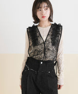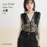 エレガントで立体的なコード刺繍レースとフリルデザインが目を引く2wayベスト。