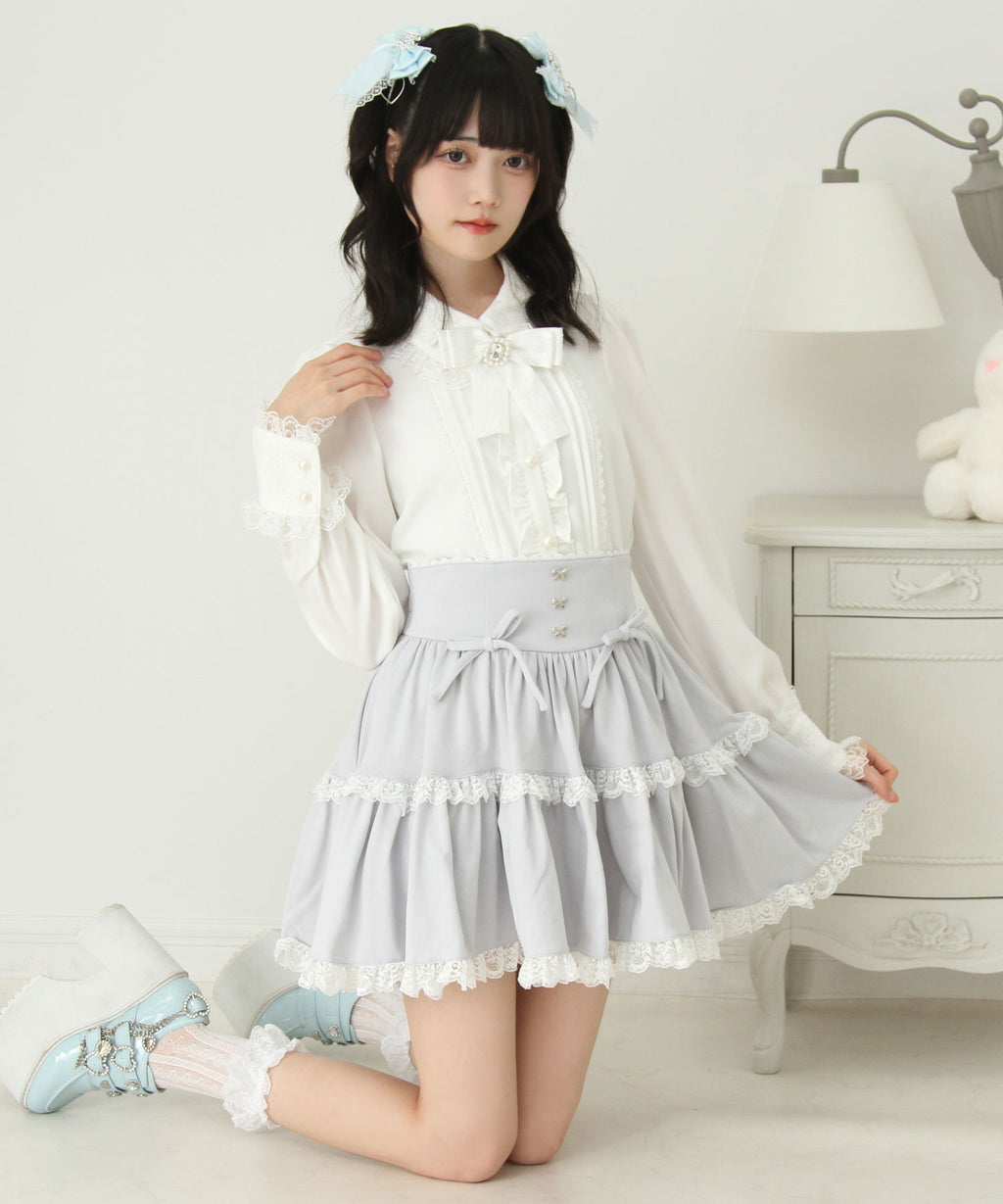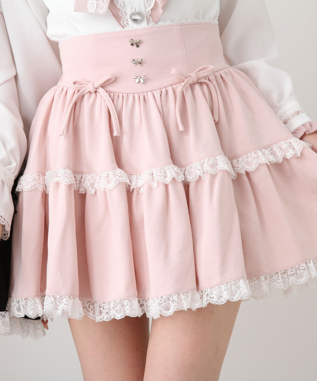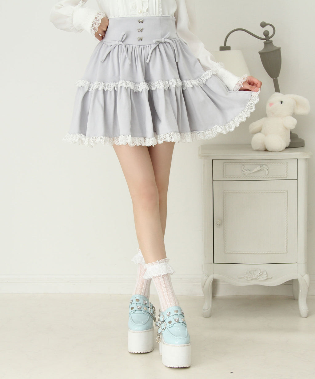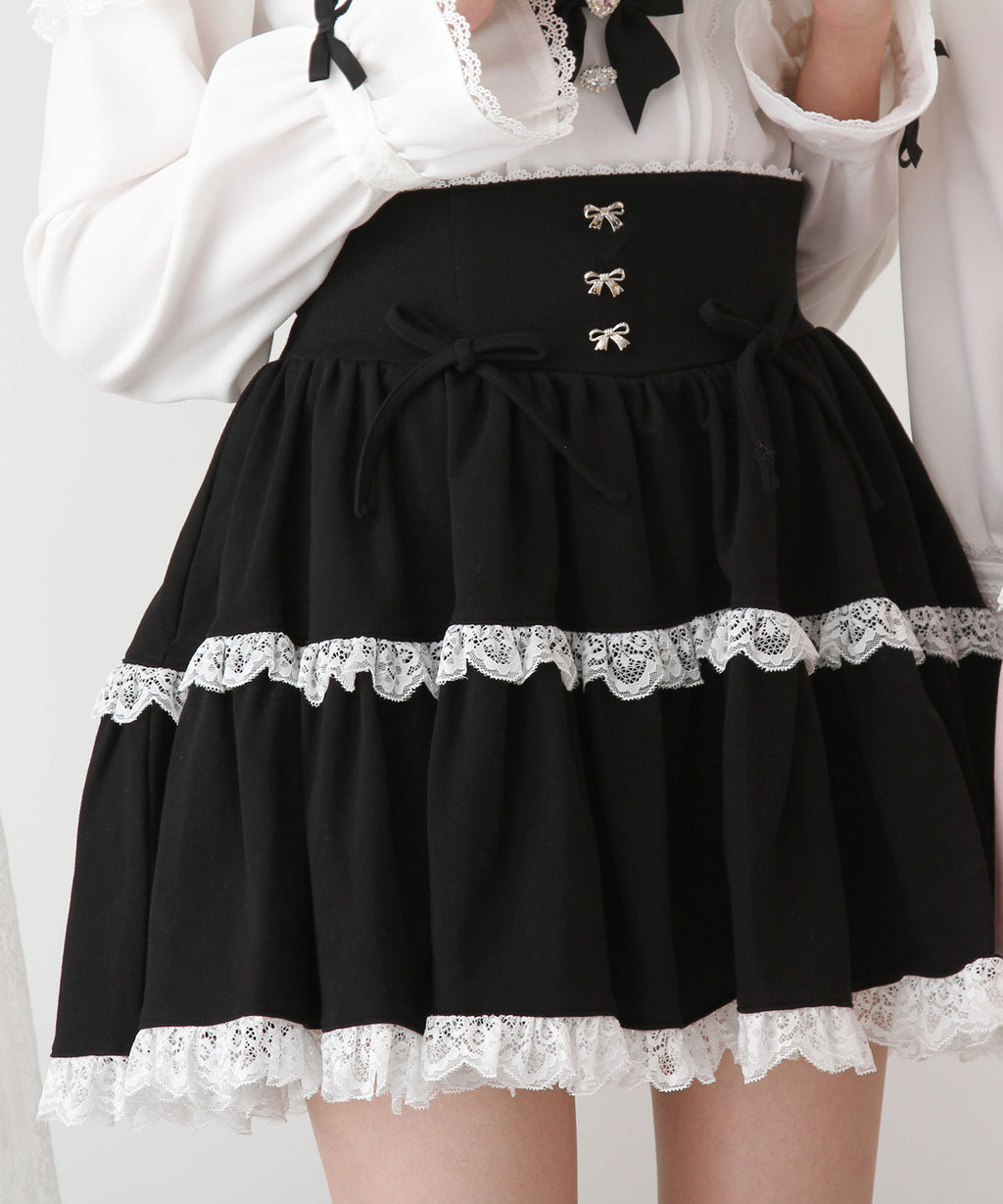 スカートにはレースがあしらわれていてかわいくどんなコーデも映えるデザインです♪