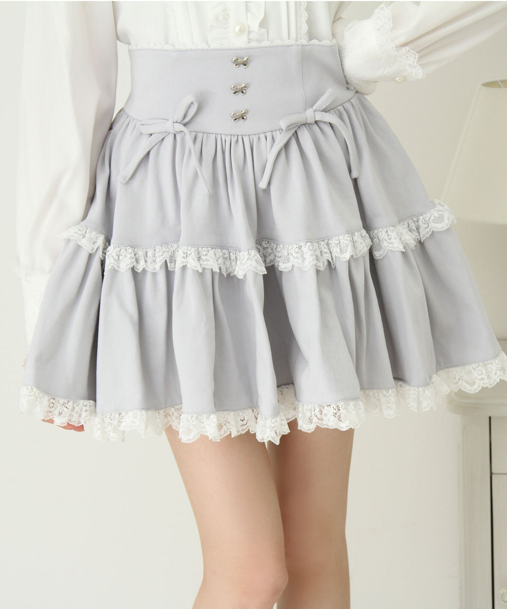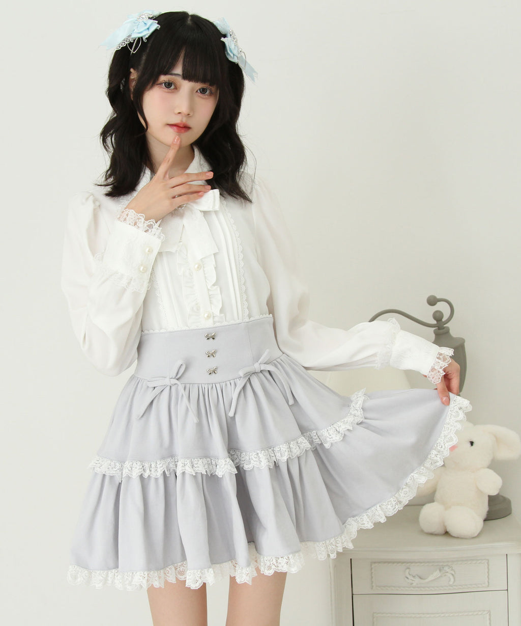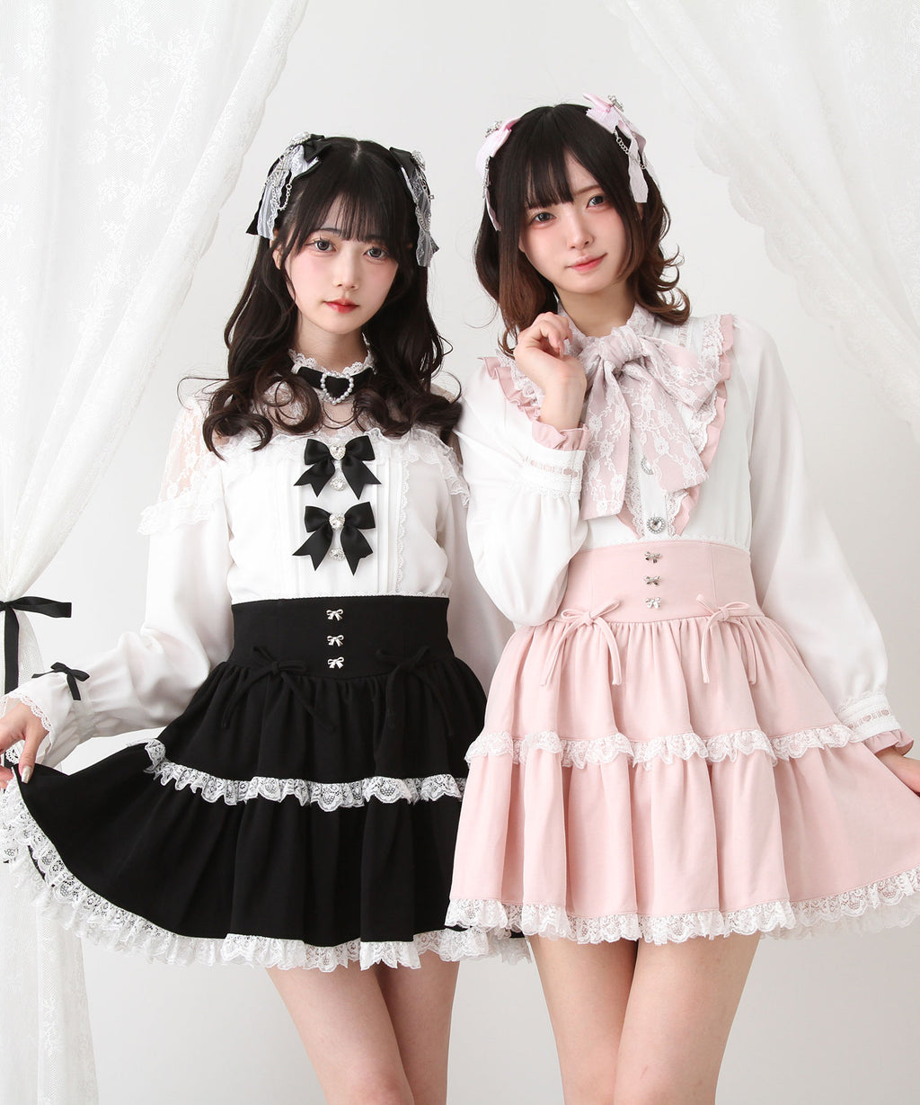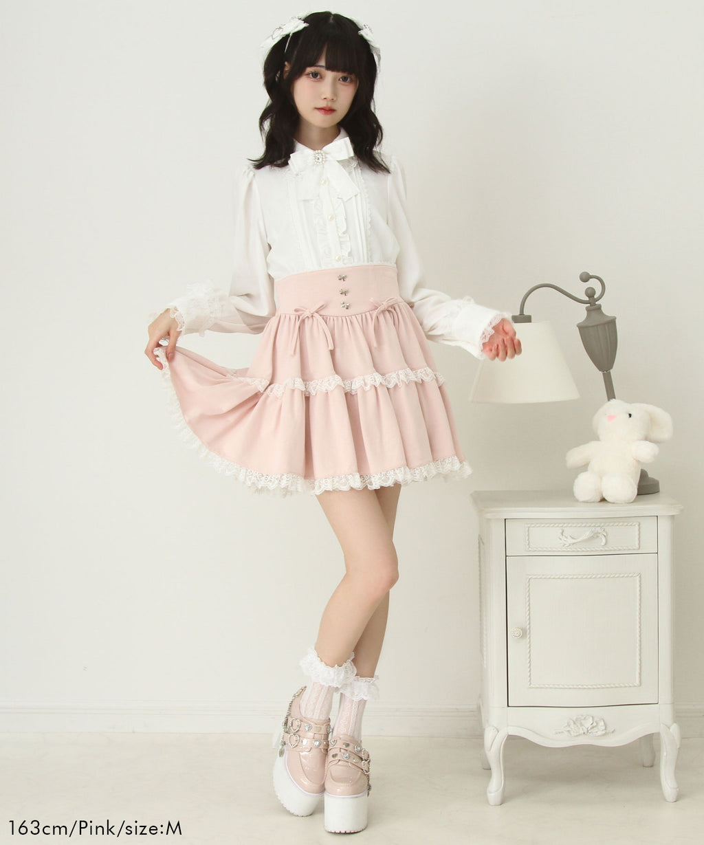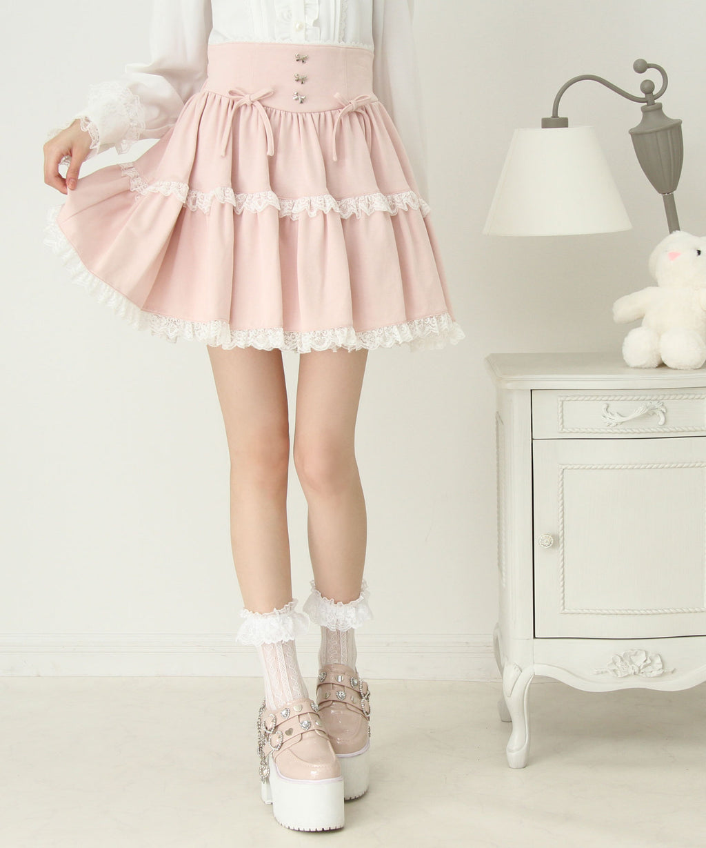 スカートにはレースがあしらわれていてかわいくどんなコーデも映えるデザインです♪