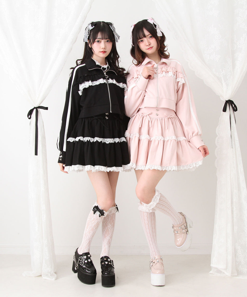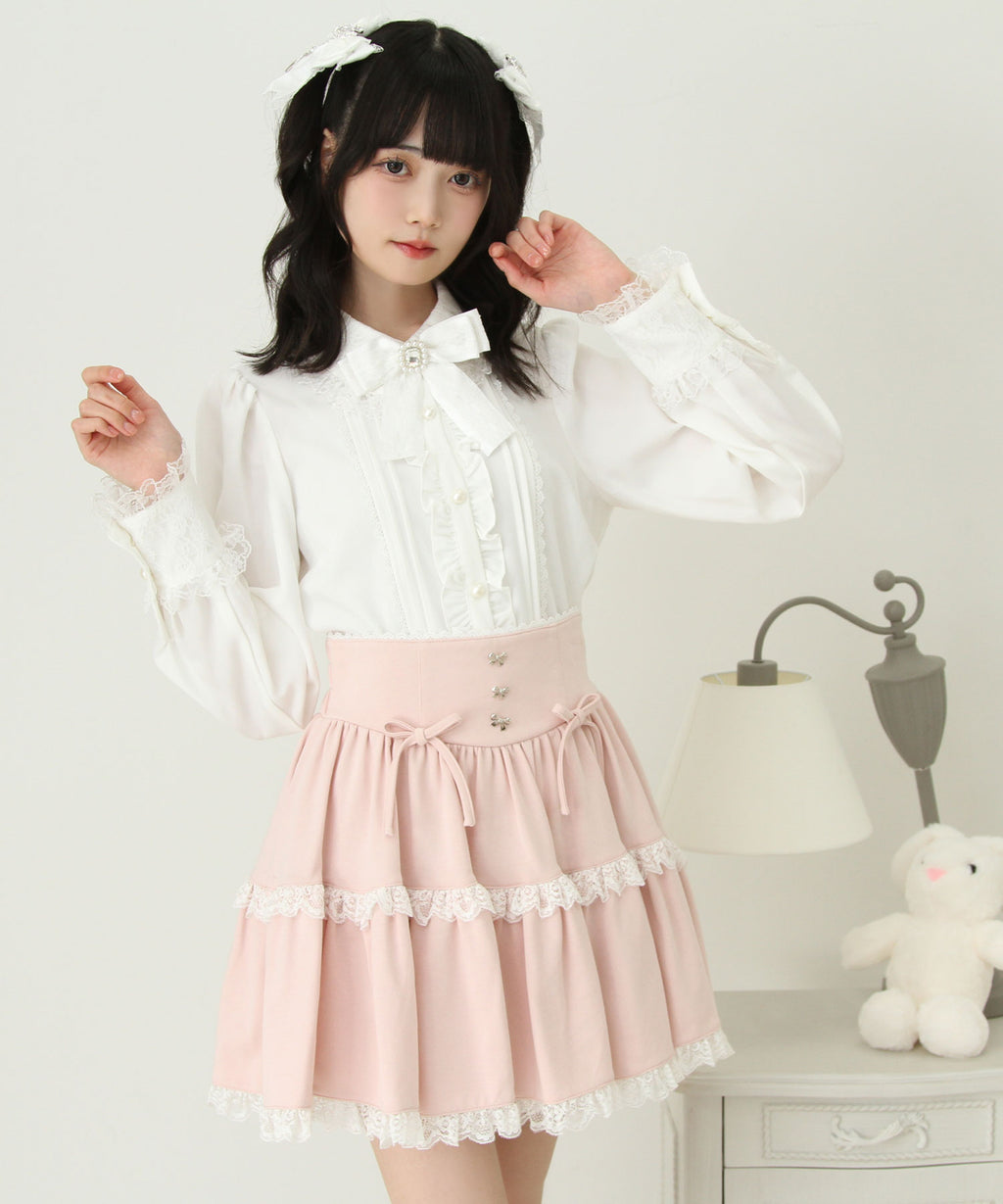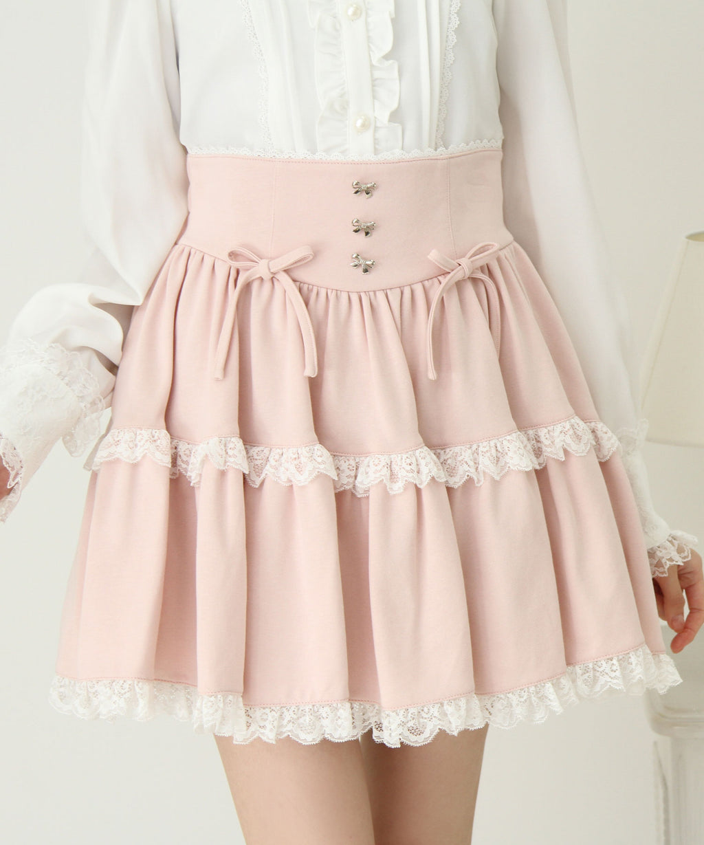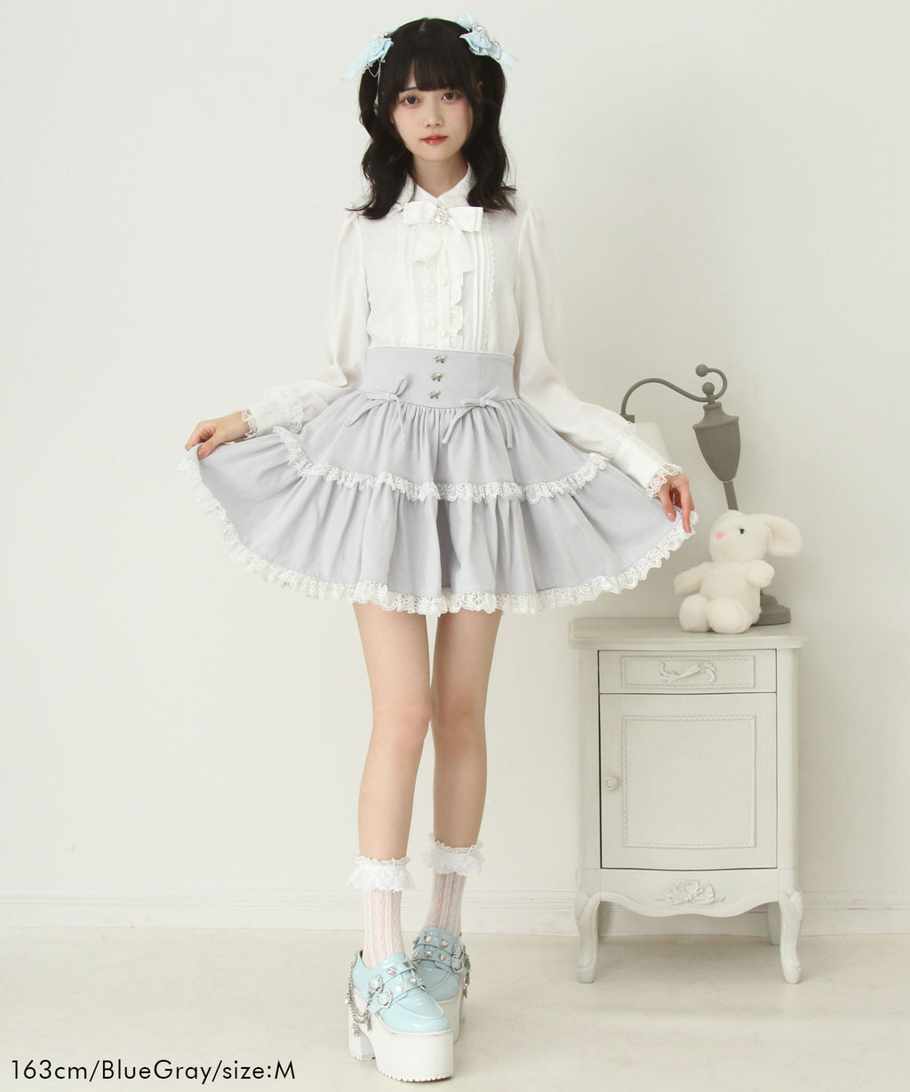 スカートにはレースがあしらわれていてかわいくどんなコーデも映えるデザインです♪