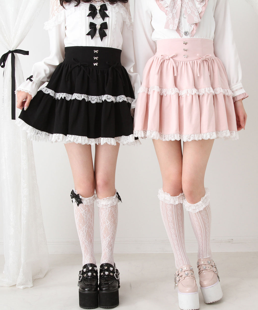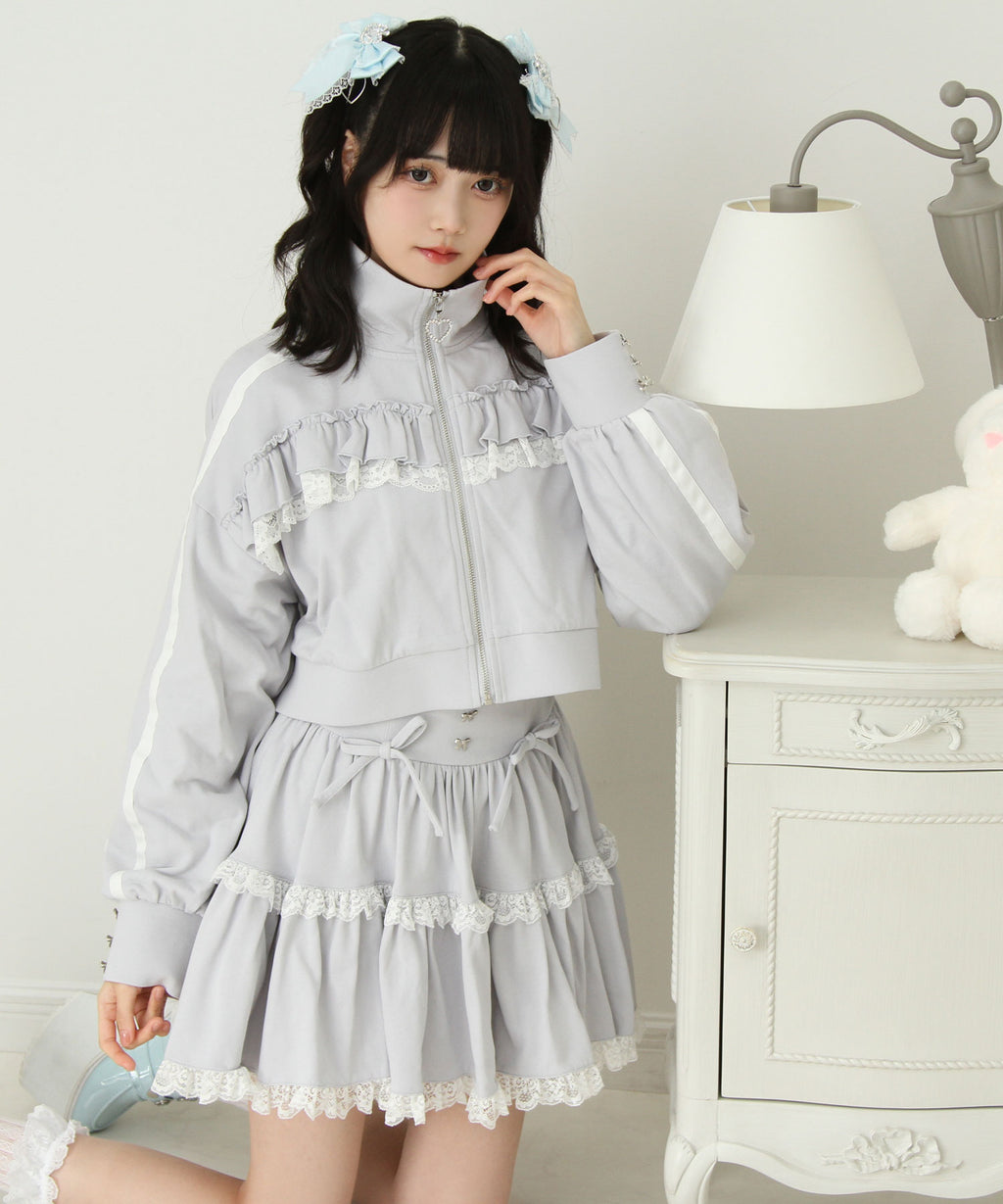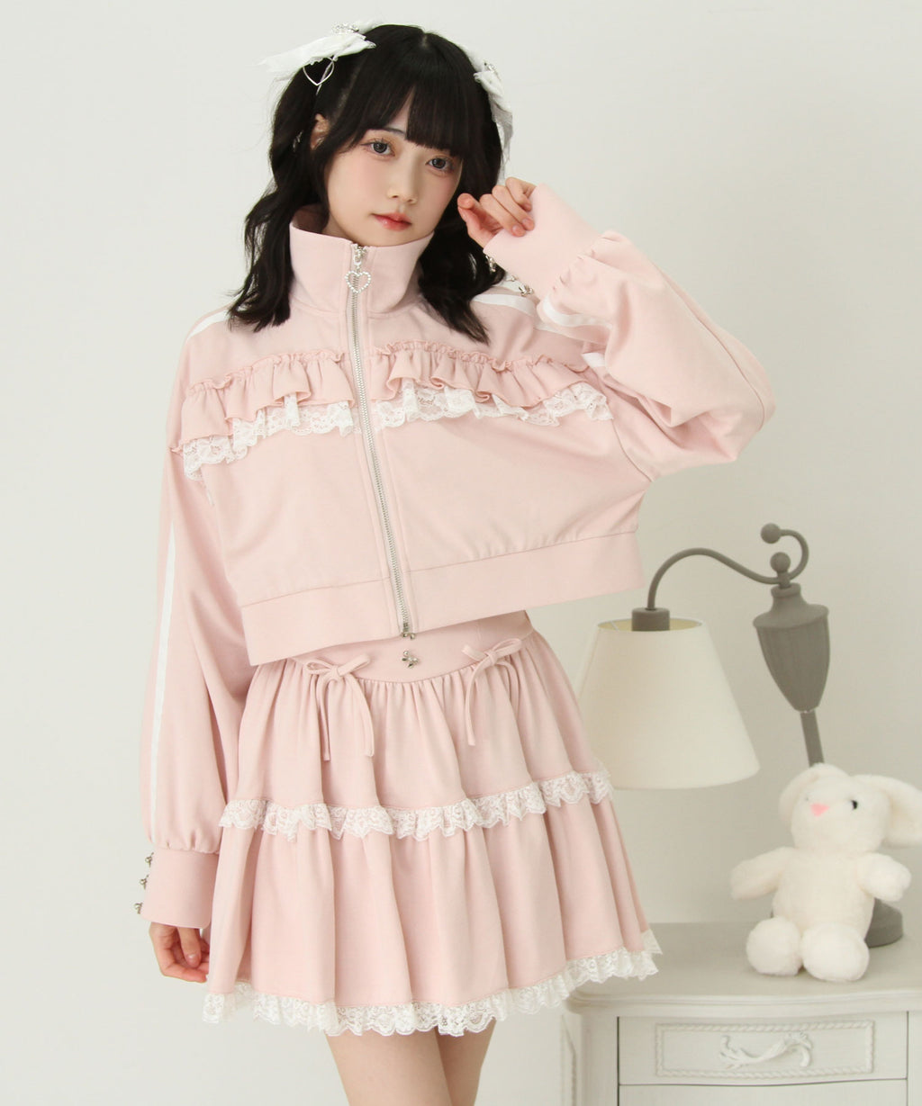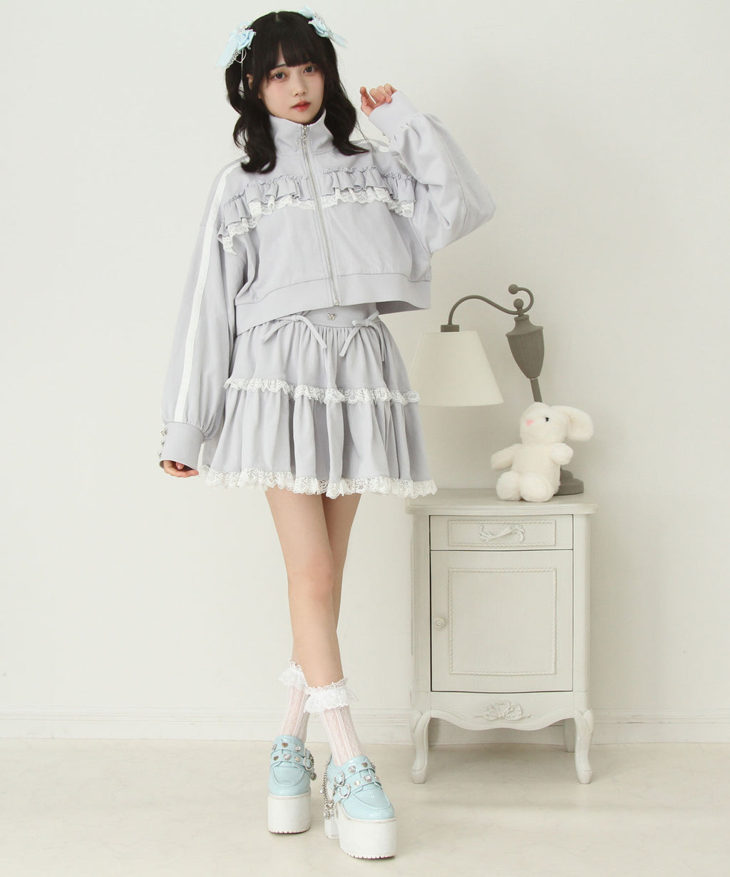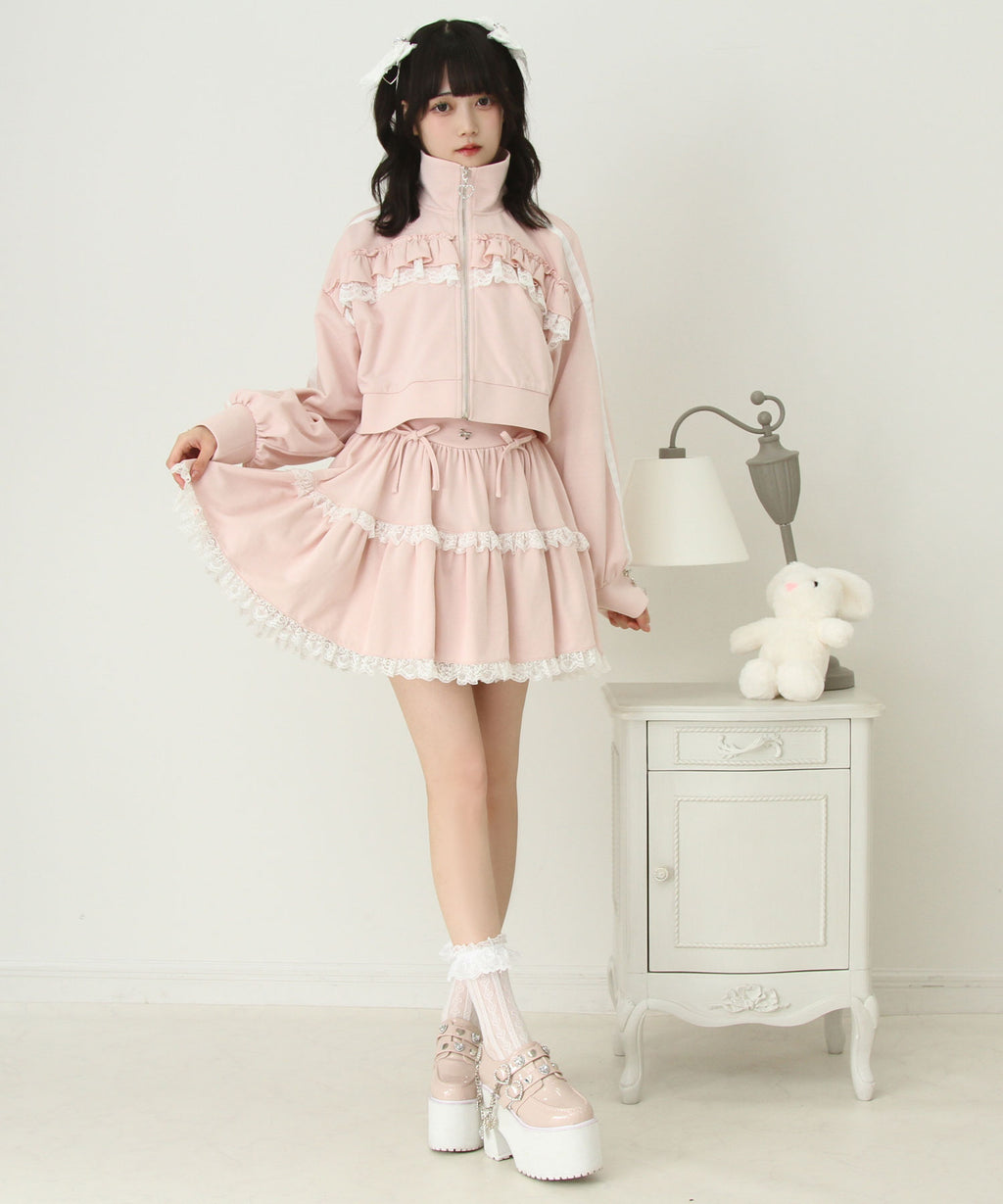 スカートにはレースがあしらわれていてかわいくどんなコーデも映えるデザインです♪