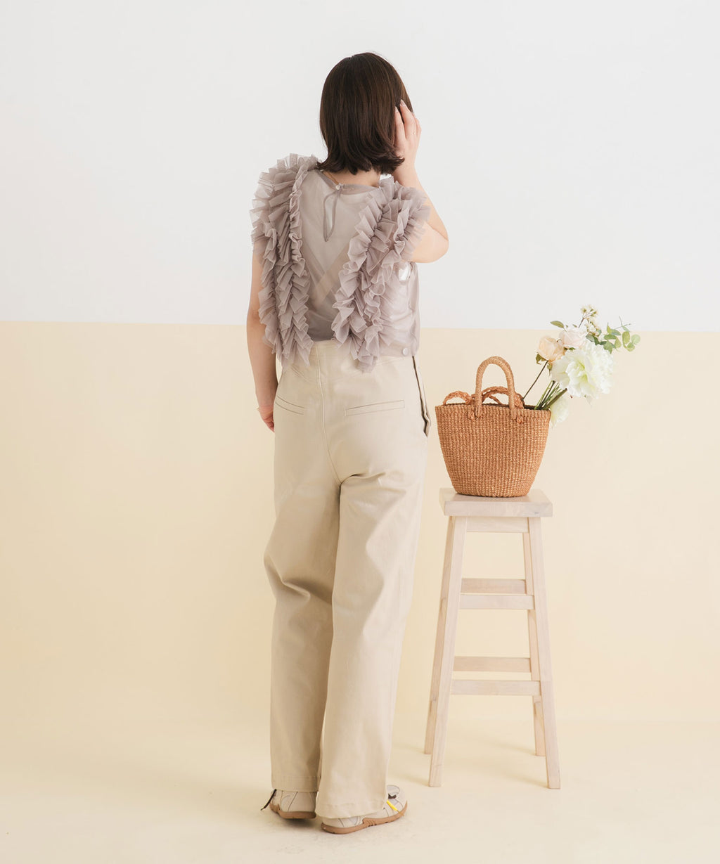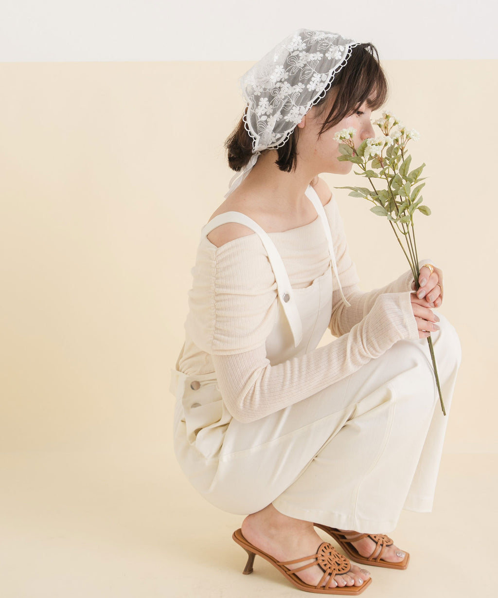 ブラウスやオフショルトップスと合わせた大人ガーリースタイル。