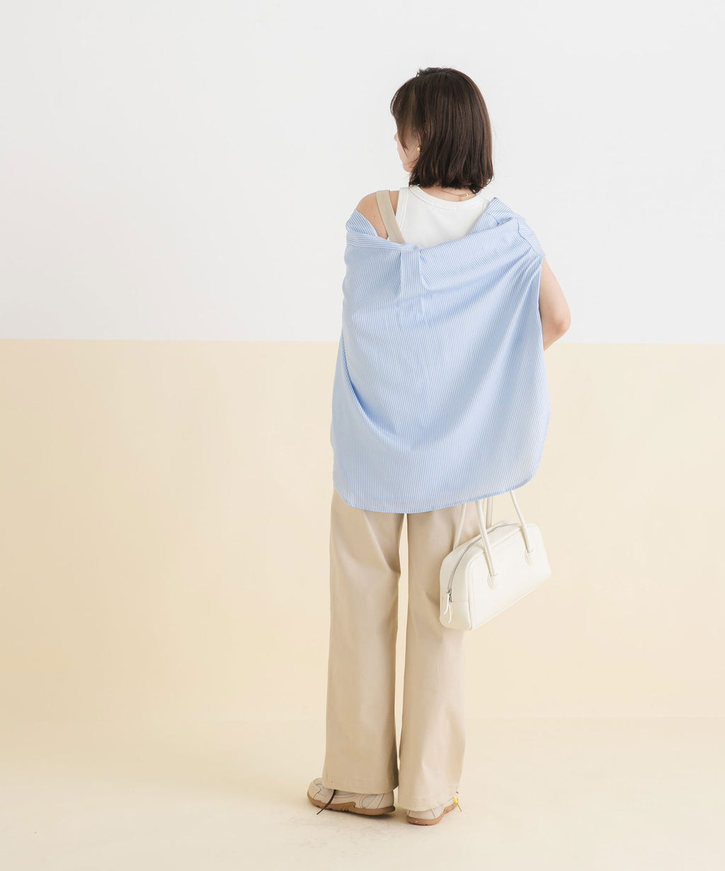 Tシャツやタンクトップと合わせたカジュアルスタイル。