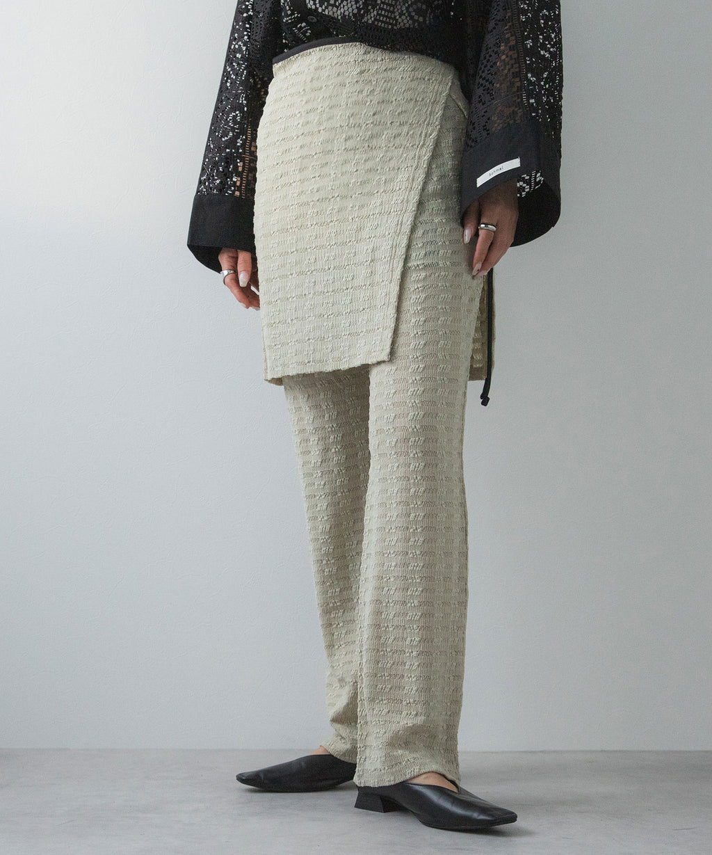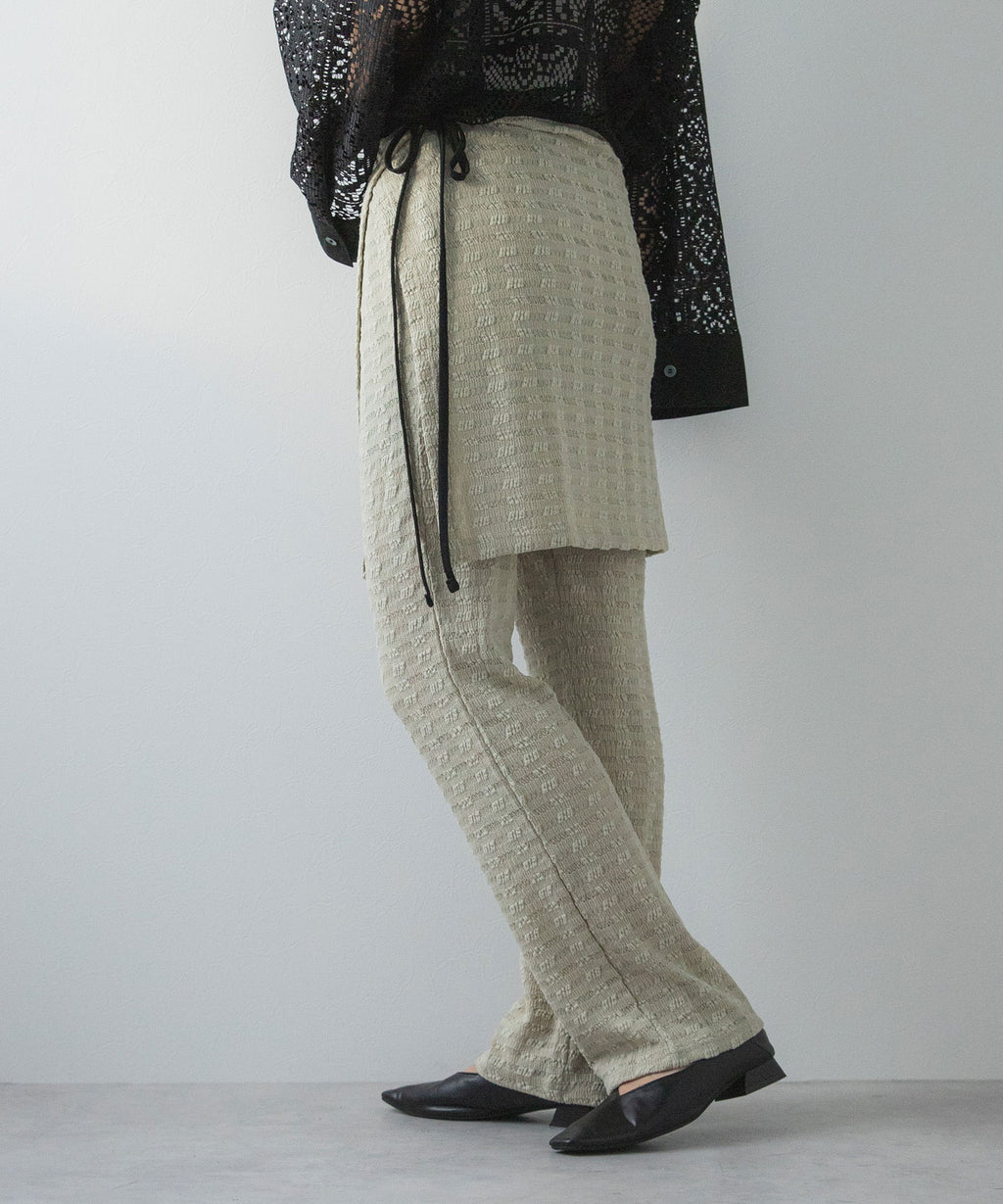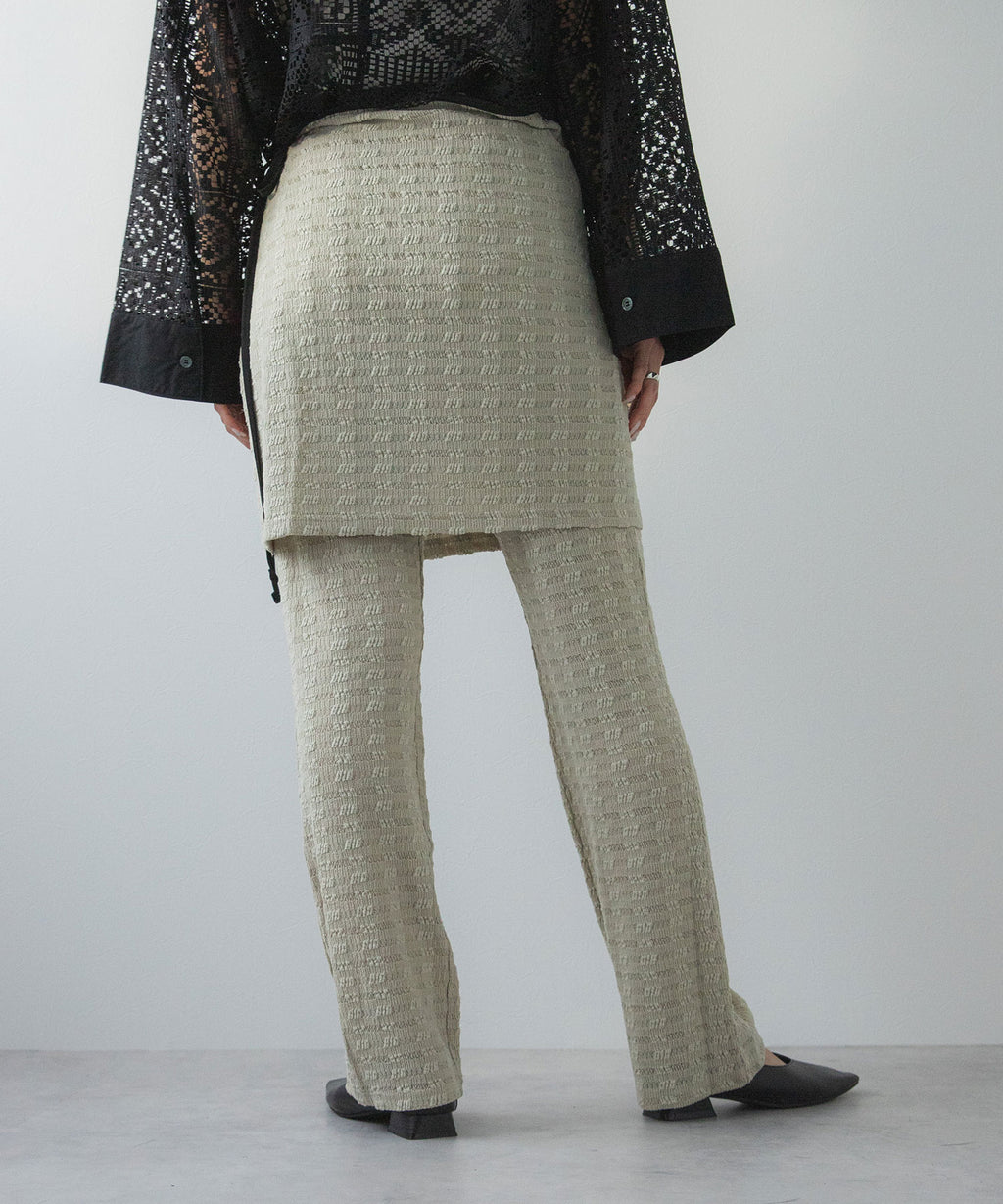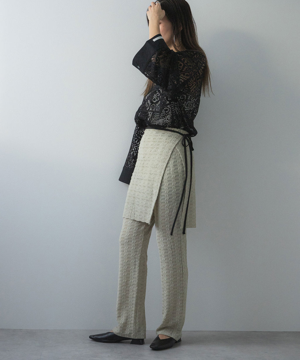 程よいシアー感のあるジャガード生地で仕立てられたパンツは