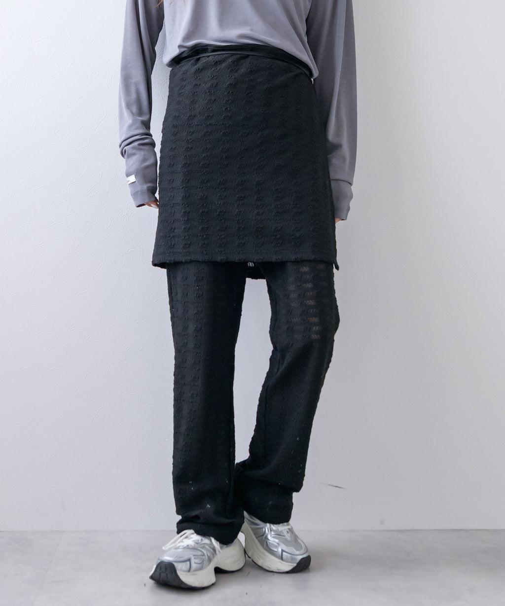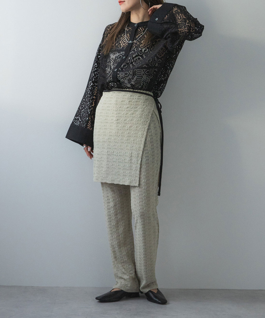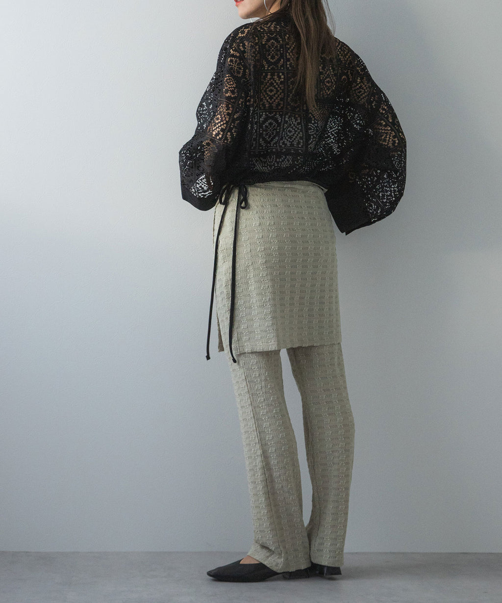 程よいシアー感のあるジャガード生地で仕立てられたパンツは