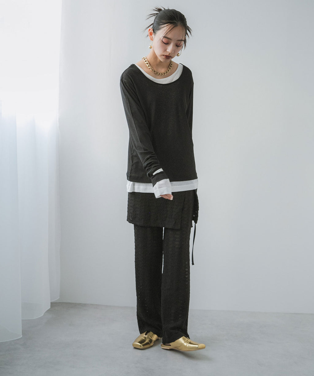 デザイン&素材感どちらにもアクセントがあるので、シンプルなトップスとの相性が抜群。