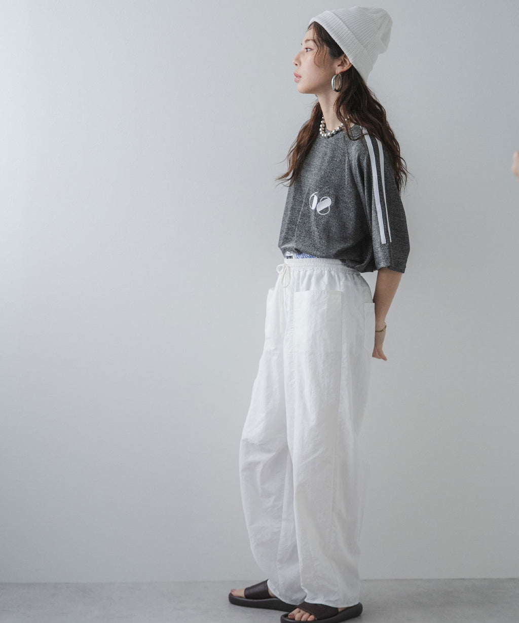 カジュアルにナイロンパンツやデニムと合わすのはもちろん、