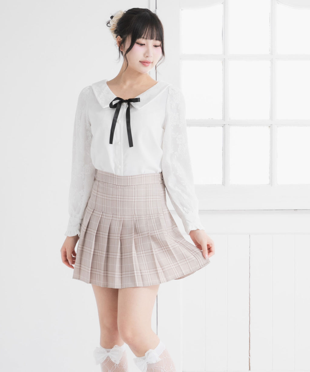 ガーリーにまとめたいときにはボウタイや丸襟のブラウス、カジュアル目に合わせたいときはシンプルなカットソーを合わせるのがおすすめ♪