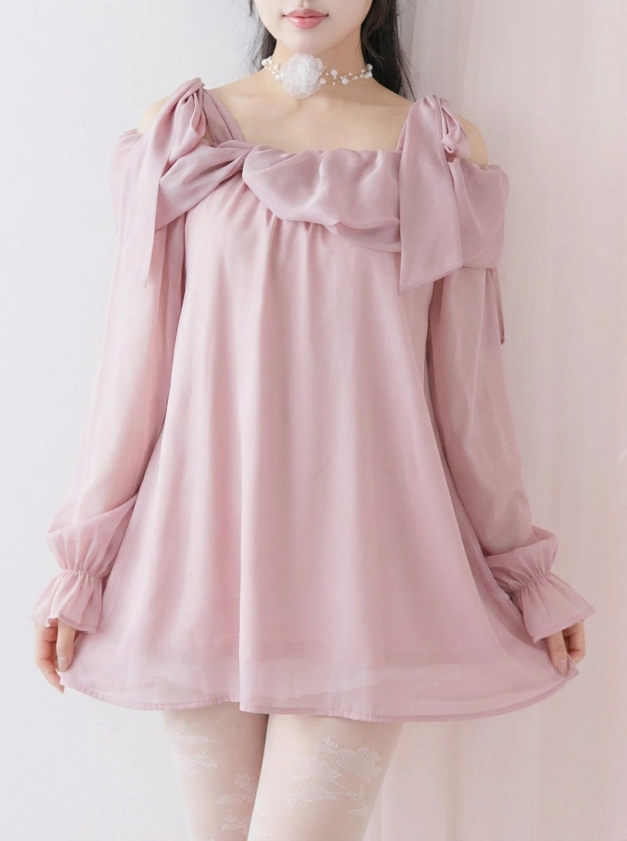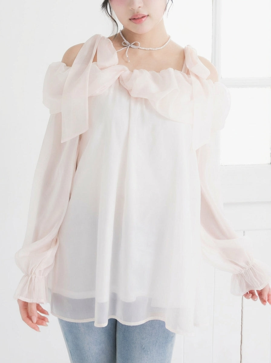 肩にあしらわれたリボンが、ほんのりあざとくて可愛らしいアクセントに◎