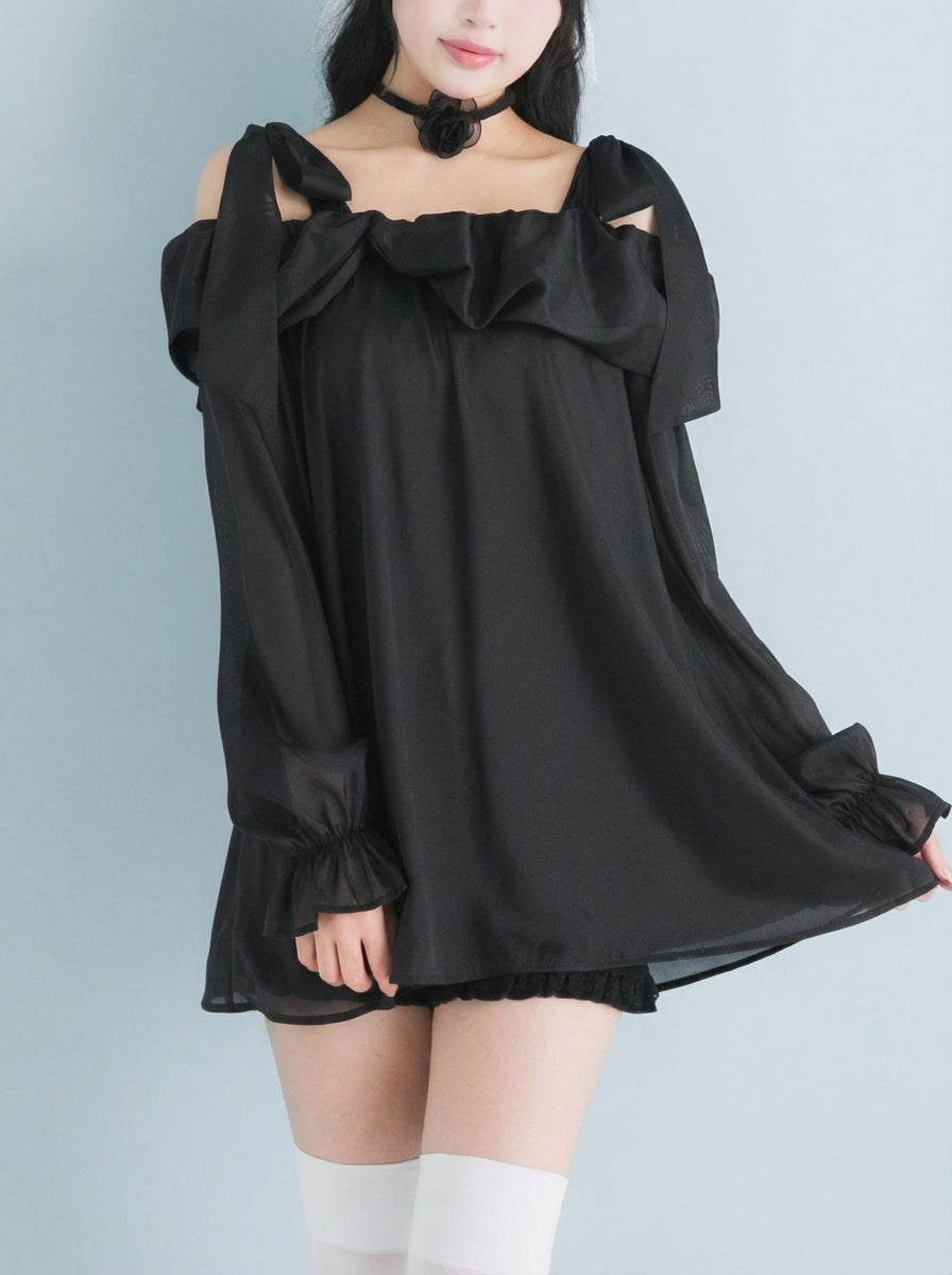 トレンド感満載のオフショルデザインが魅力的なシアーチュニックワンピースのご紹介。