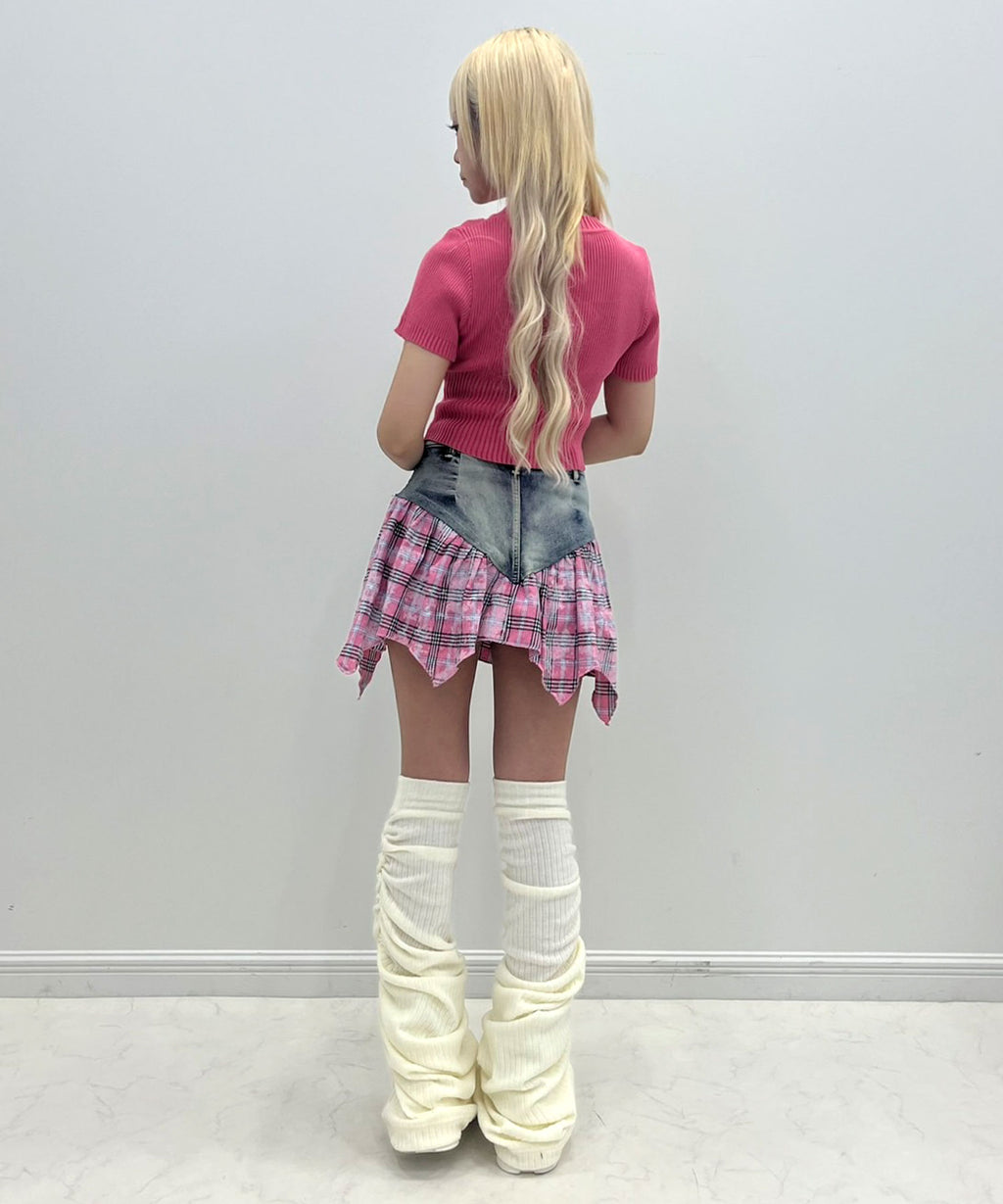 デニム×チェック柄の最強MIX!スカート見えなのに動きやすい万能アイテム