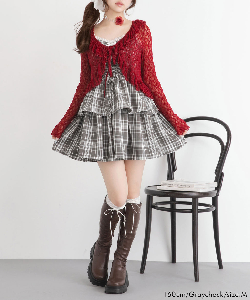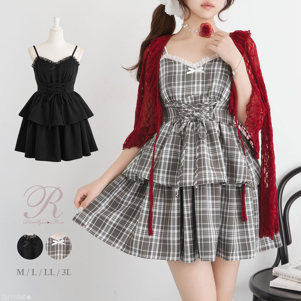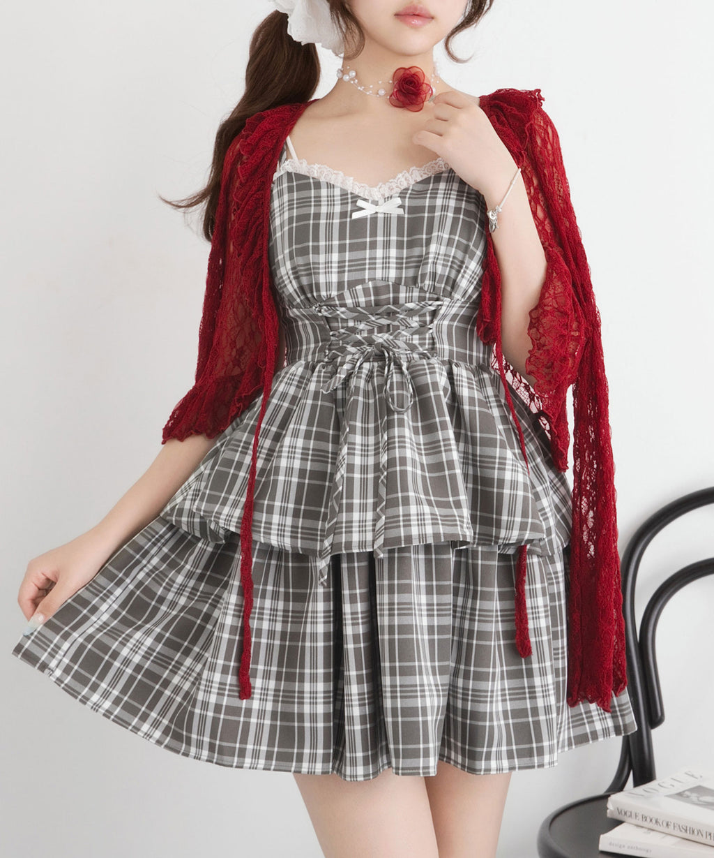 コルセット風レースアップが目を惹く、ティアードキャミワンピースが登場!