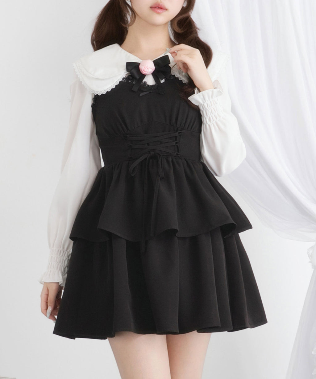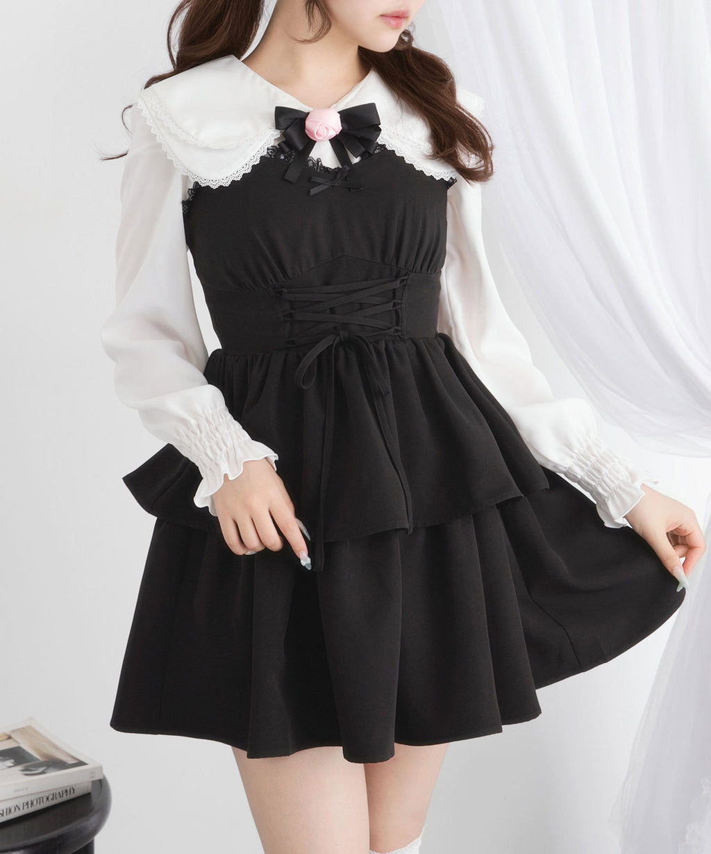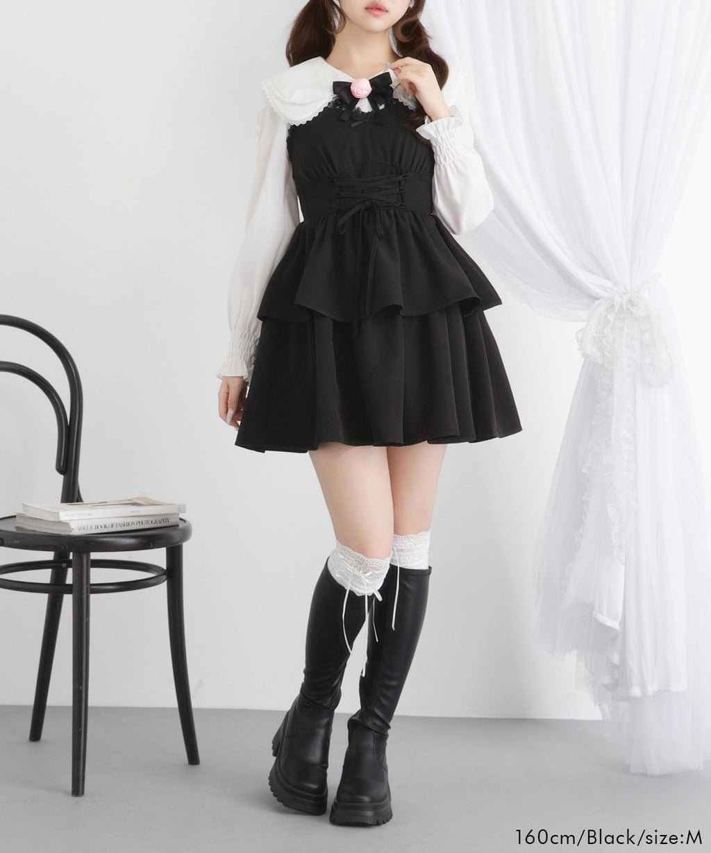ウエスト部分には、コルセット風のレースアップを施しており、きゅっと締めることで細見え効果バツグン!