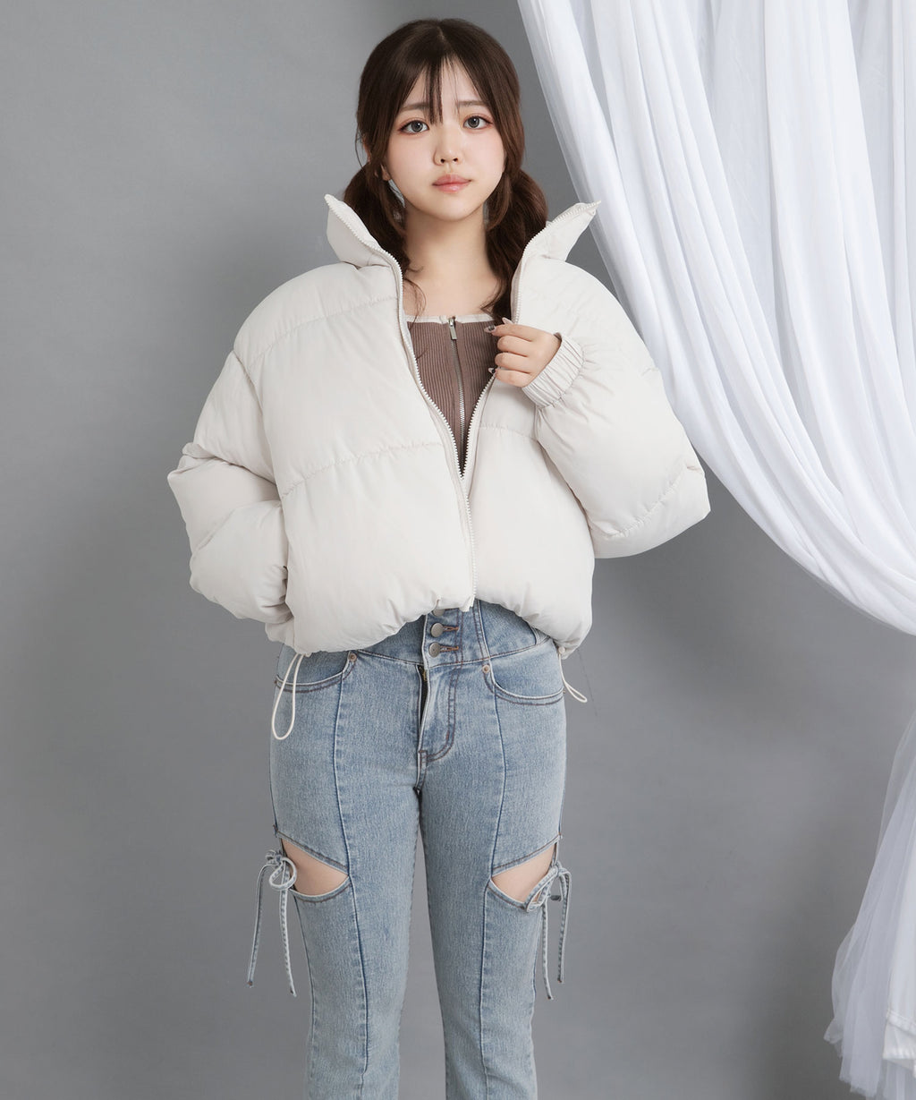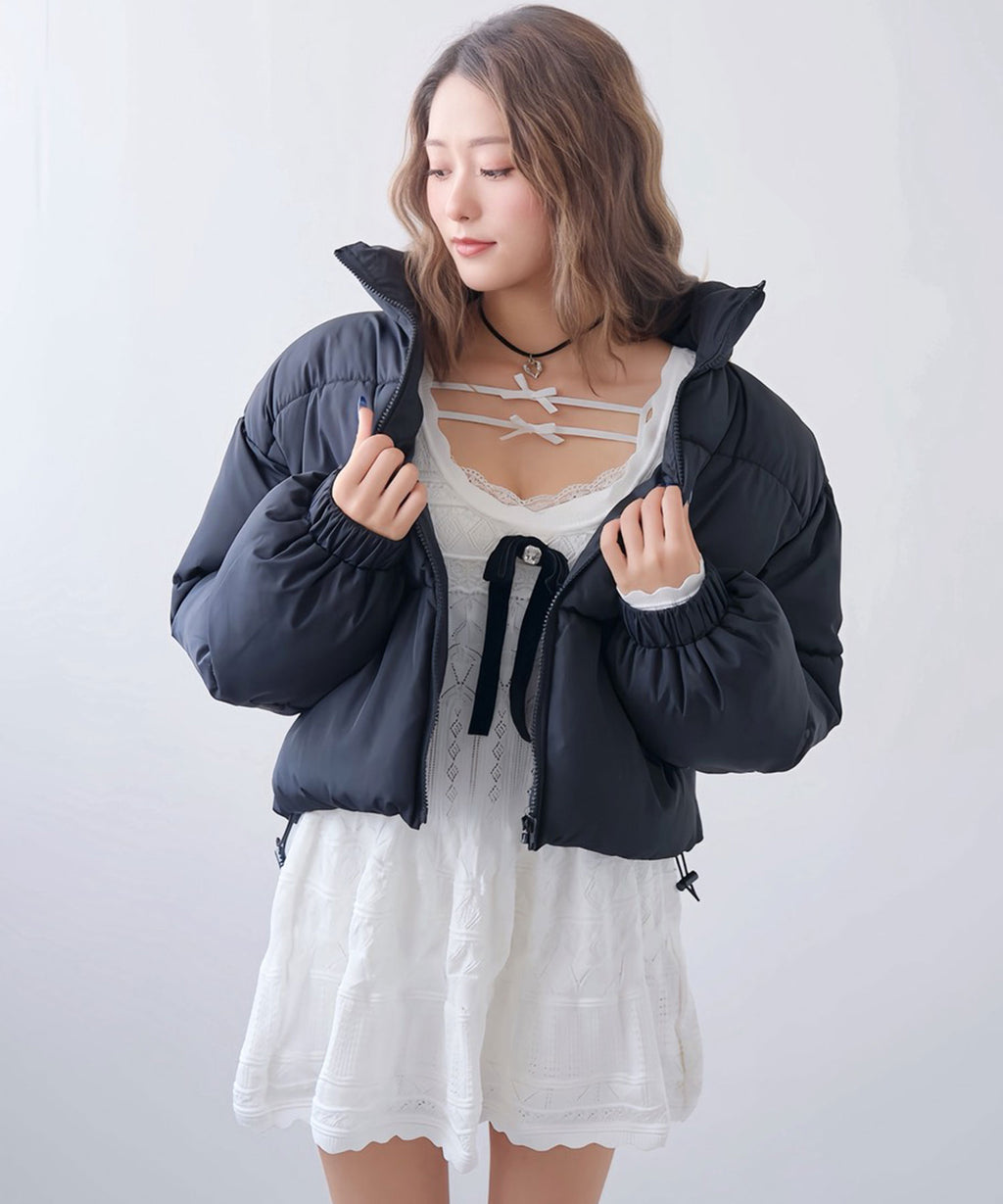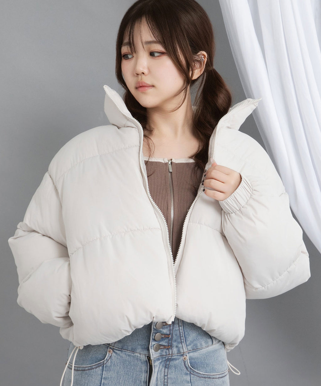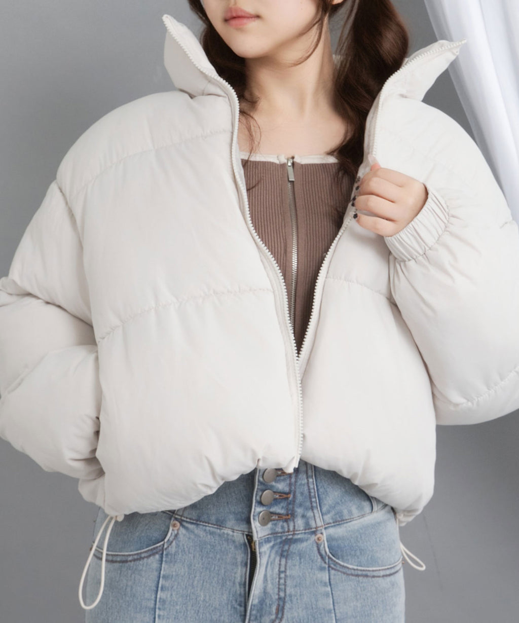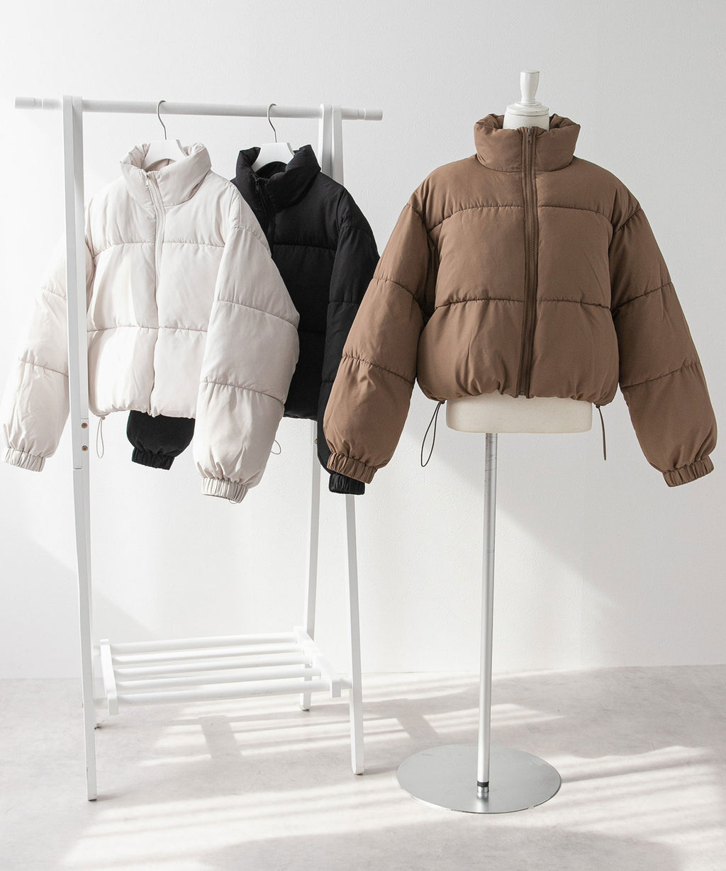 抜け感とトレンド感を兼ね備えた、ショート丈の中綿ジャケット。