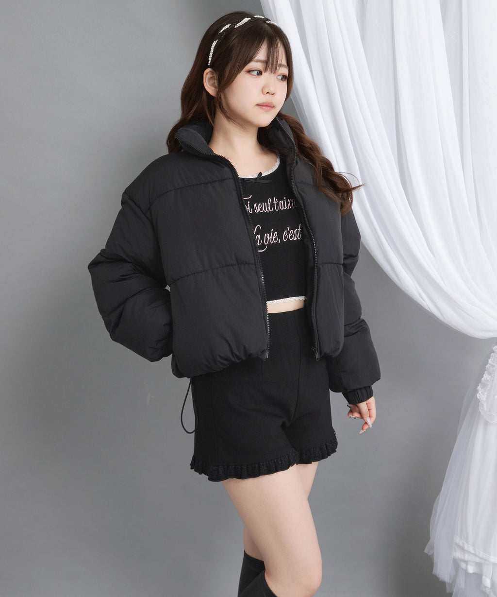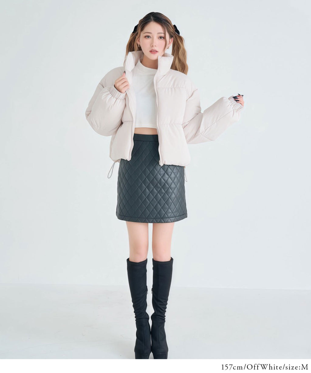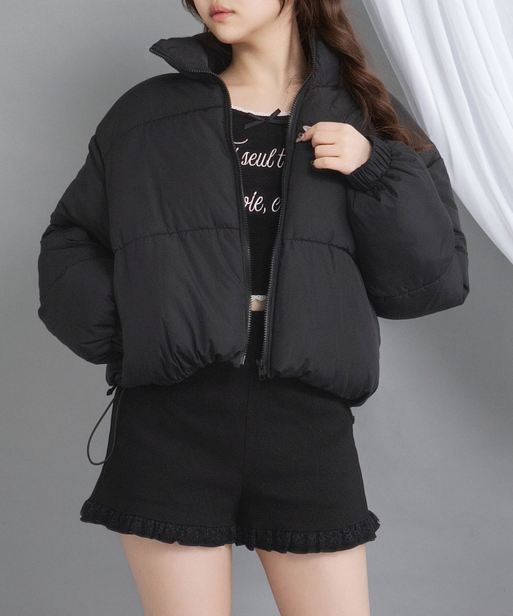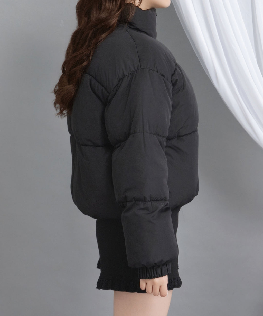 抜け感とトレンド感を兼ね備えた、ショート丈の中綿ジャケット。