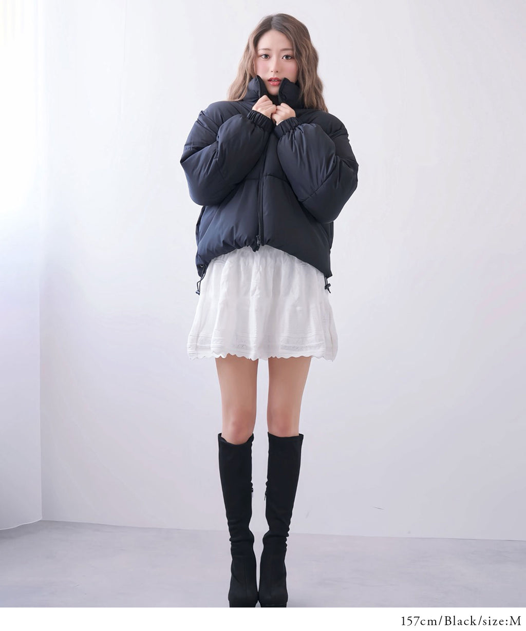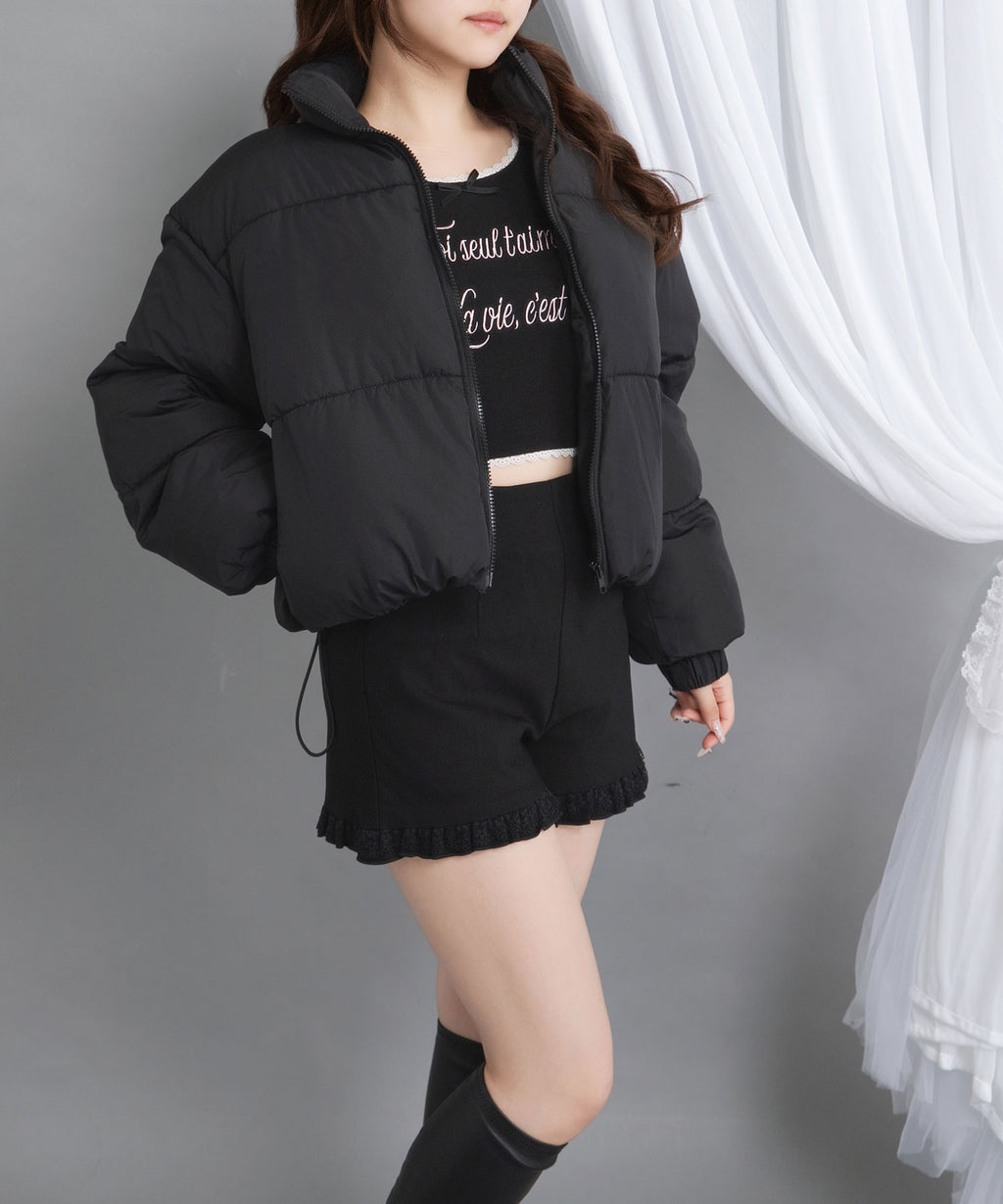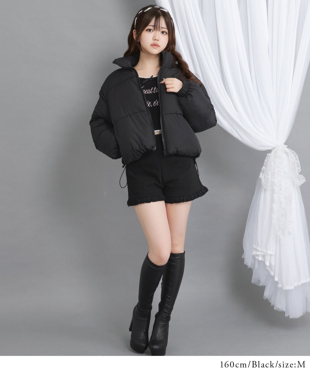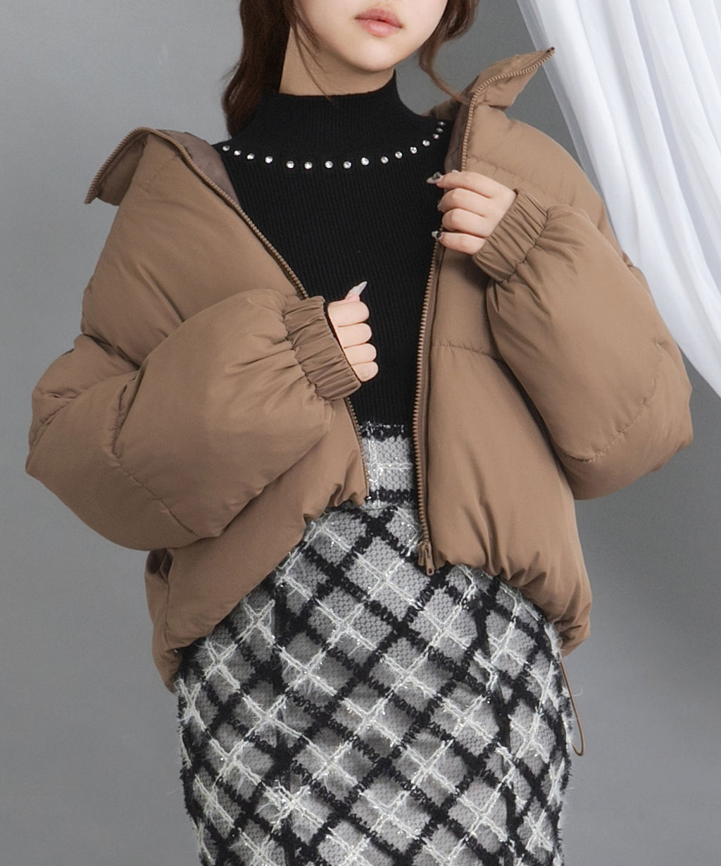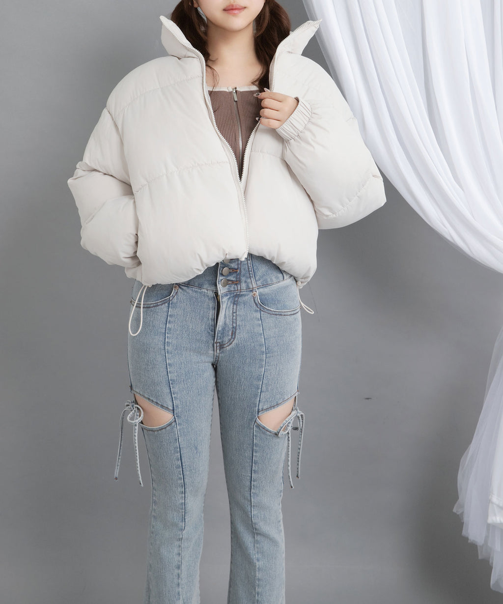 抜け感とトレンド感を兼ね備えた、ショート丈の中綿ジャケット。