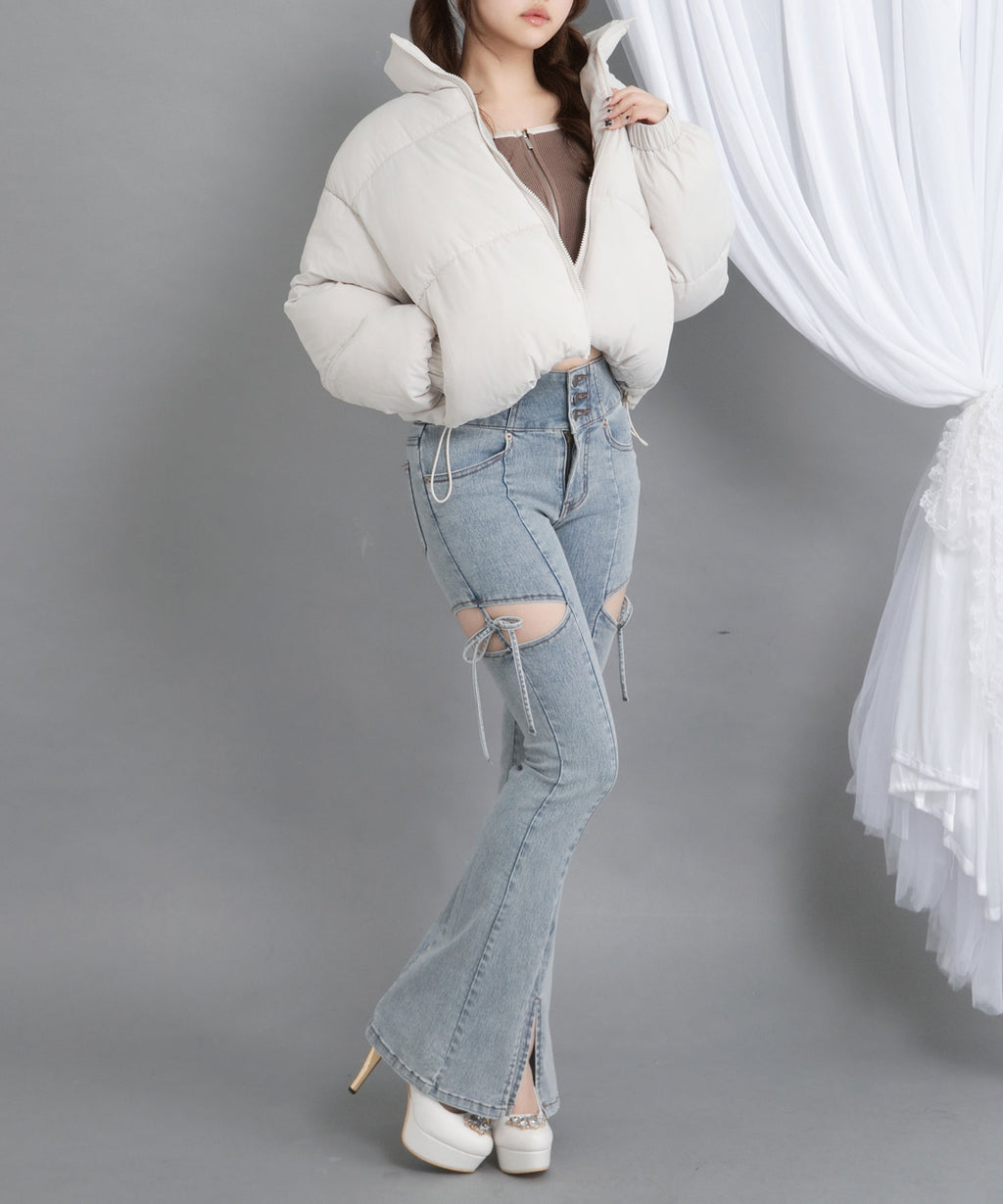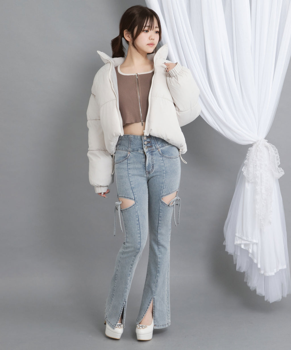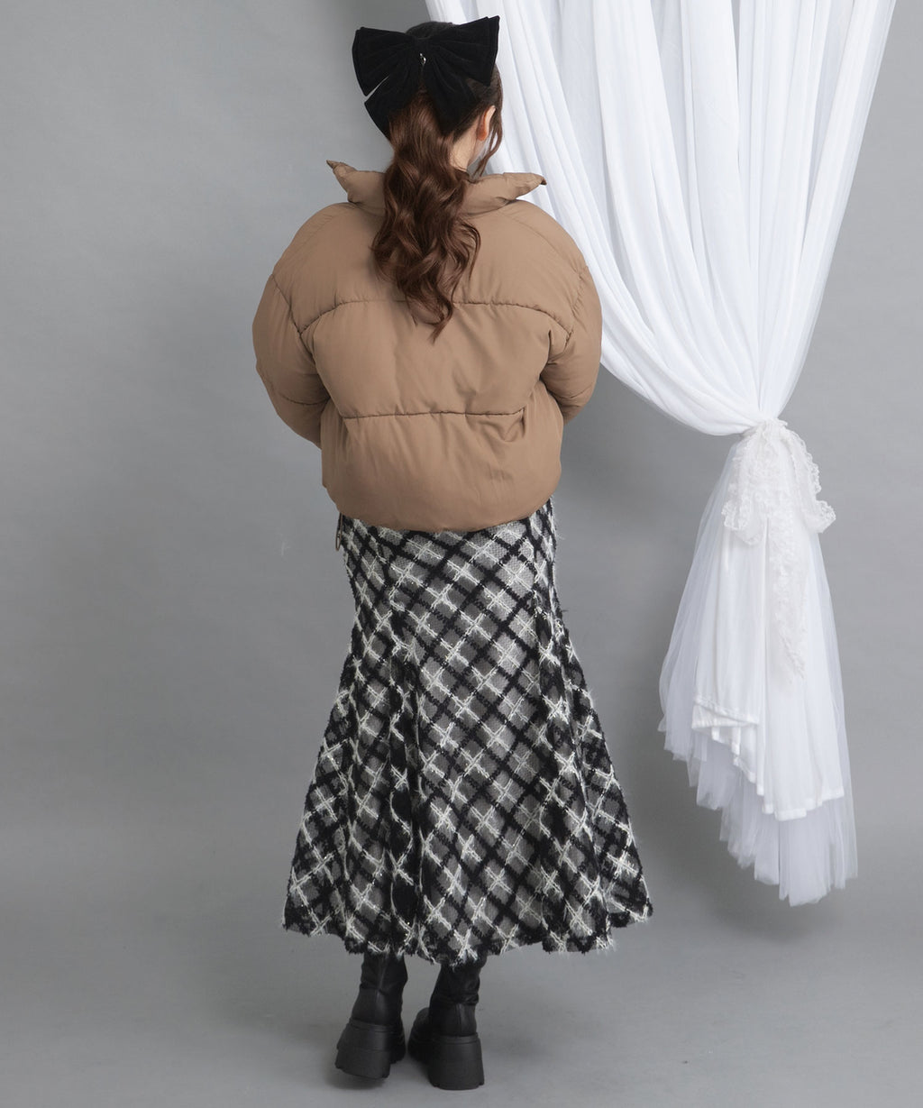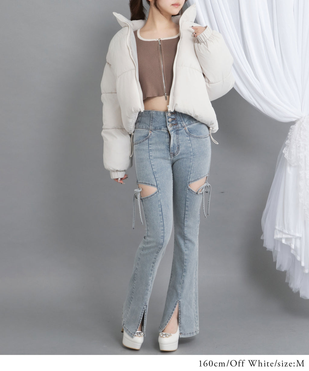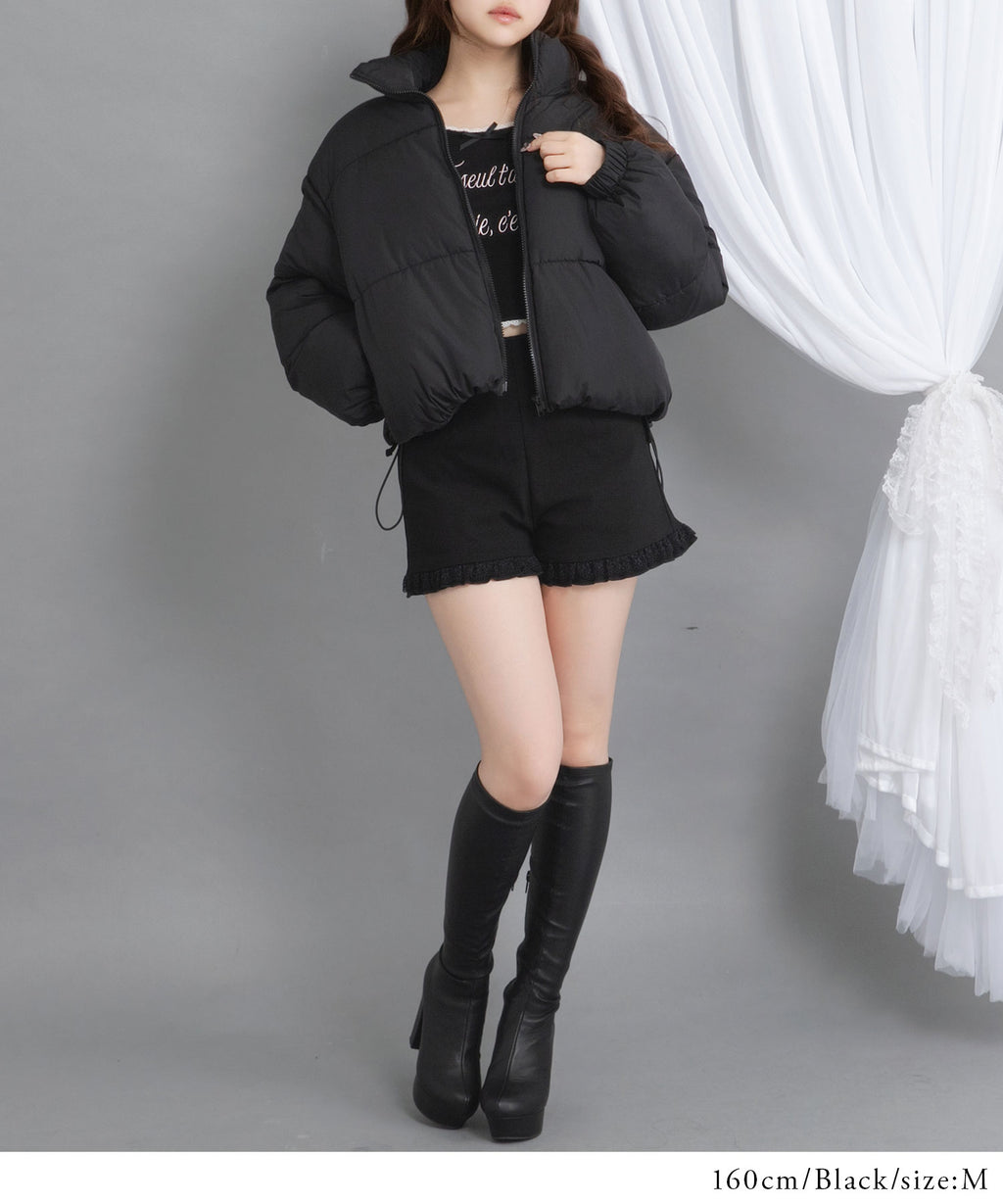抜け感とトレンド感を兼ね備えた、ショート丈の中綿ジャケット。