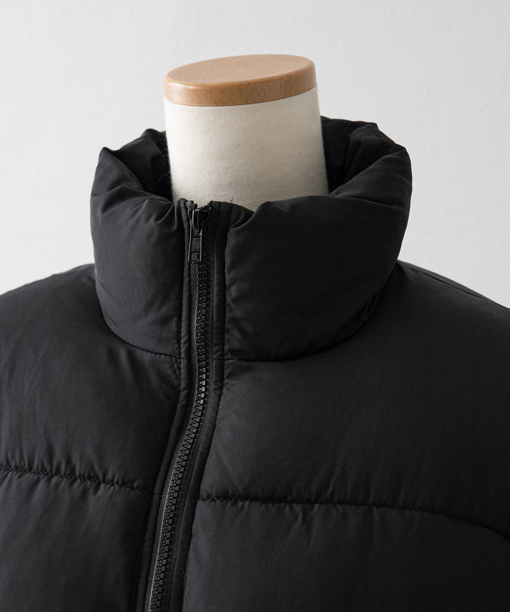 立ち襟デザインで首元まで防寒でき、ジップの開閉で印象を変えられます。