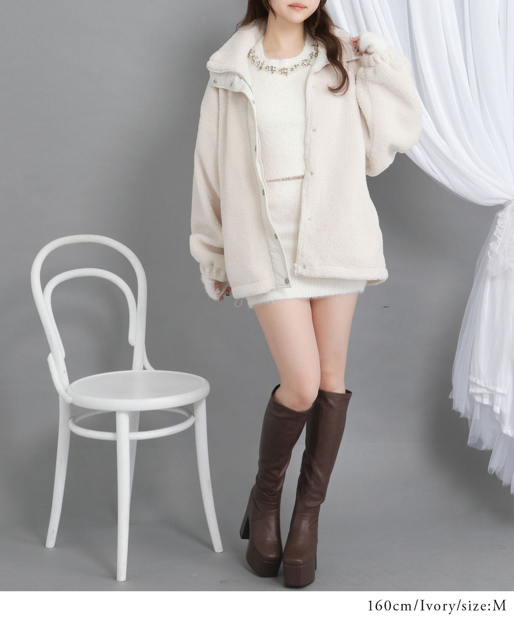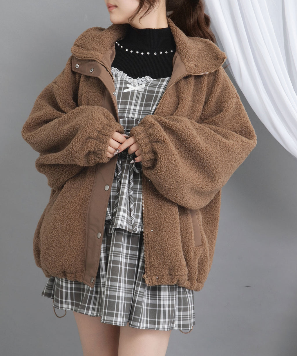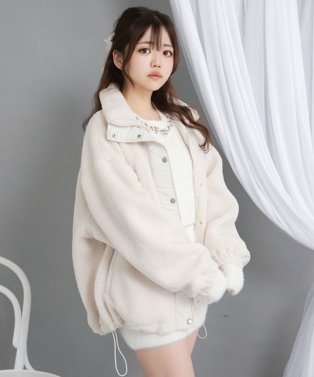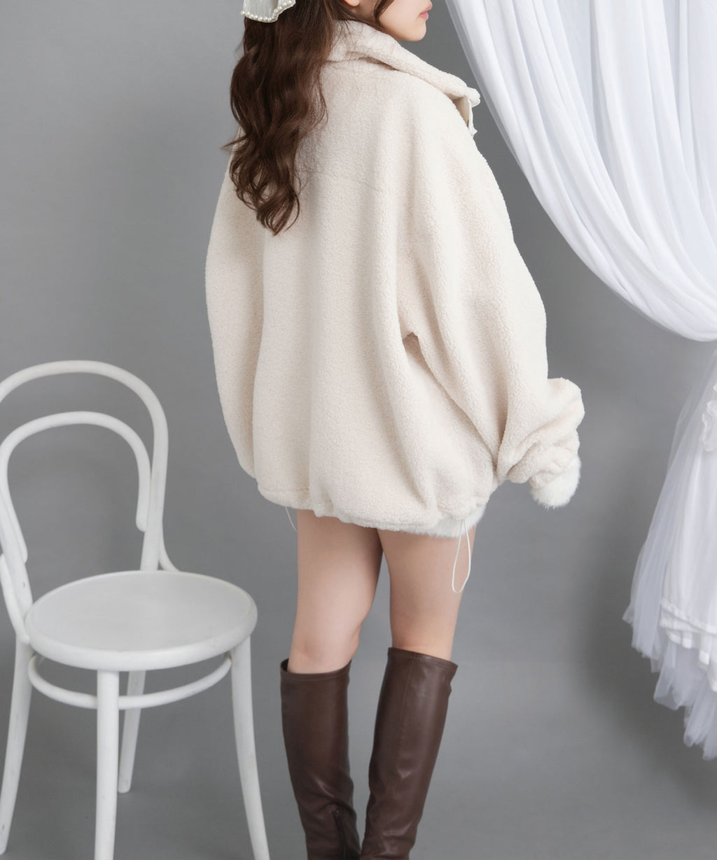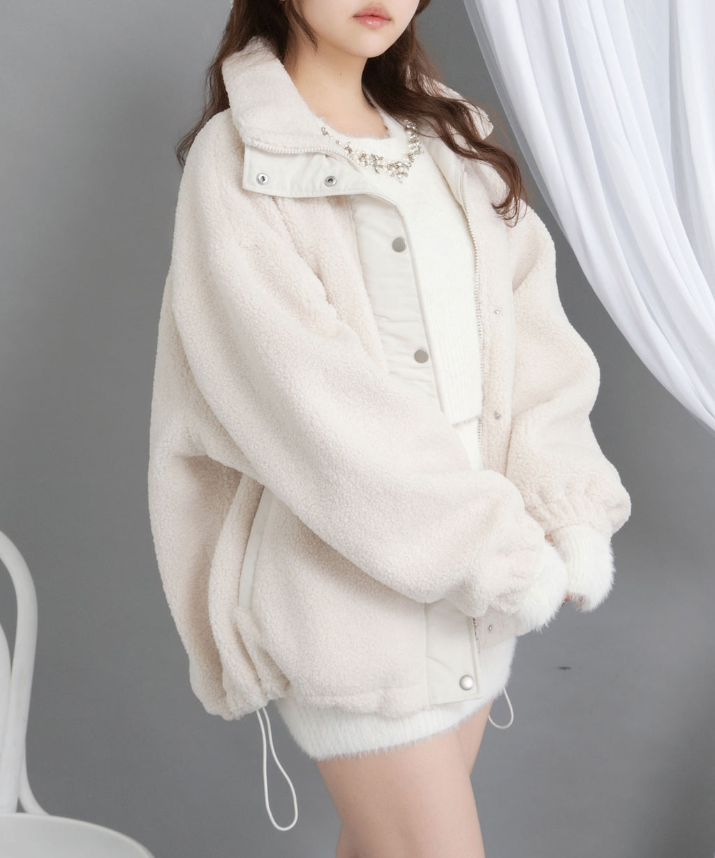 ふんわり柔らかなボア素材で仕立てた、トレンド感あふれるスタンドブルゾン。