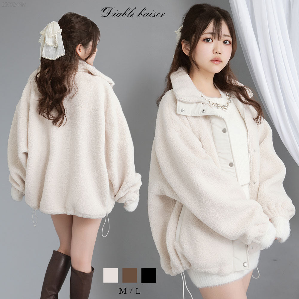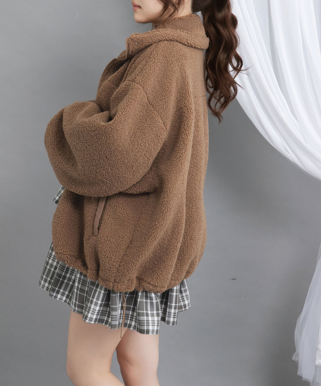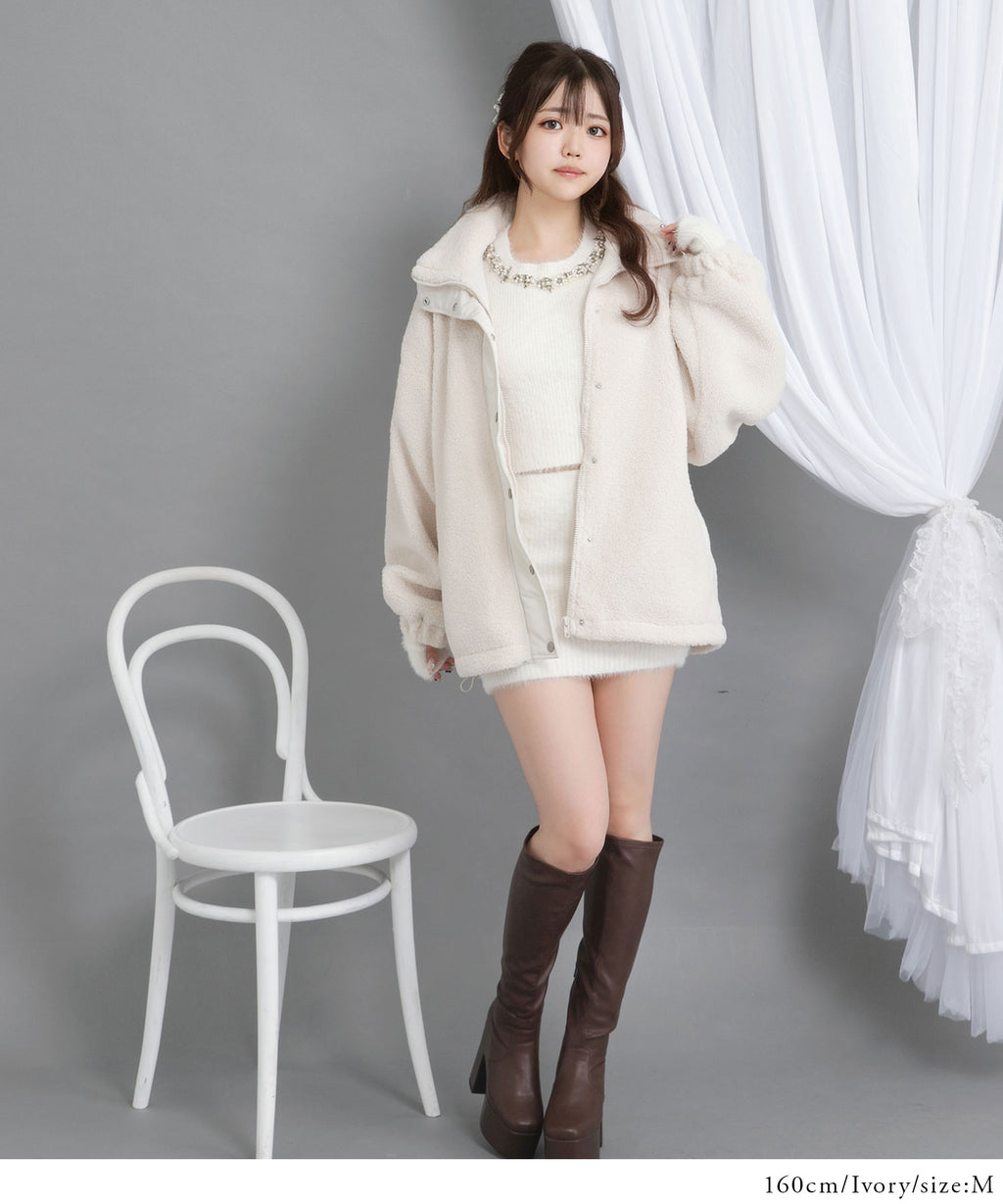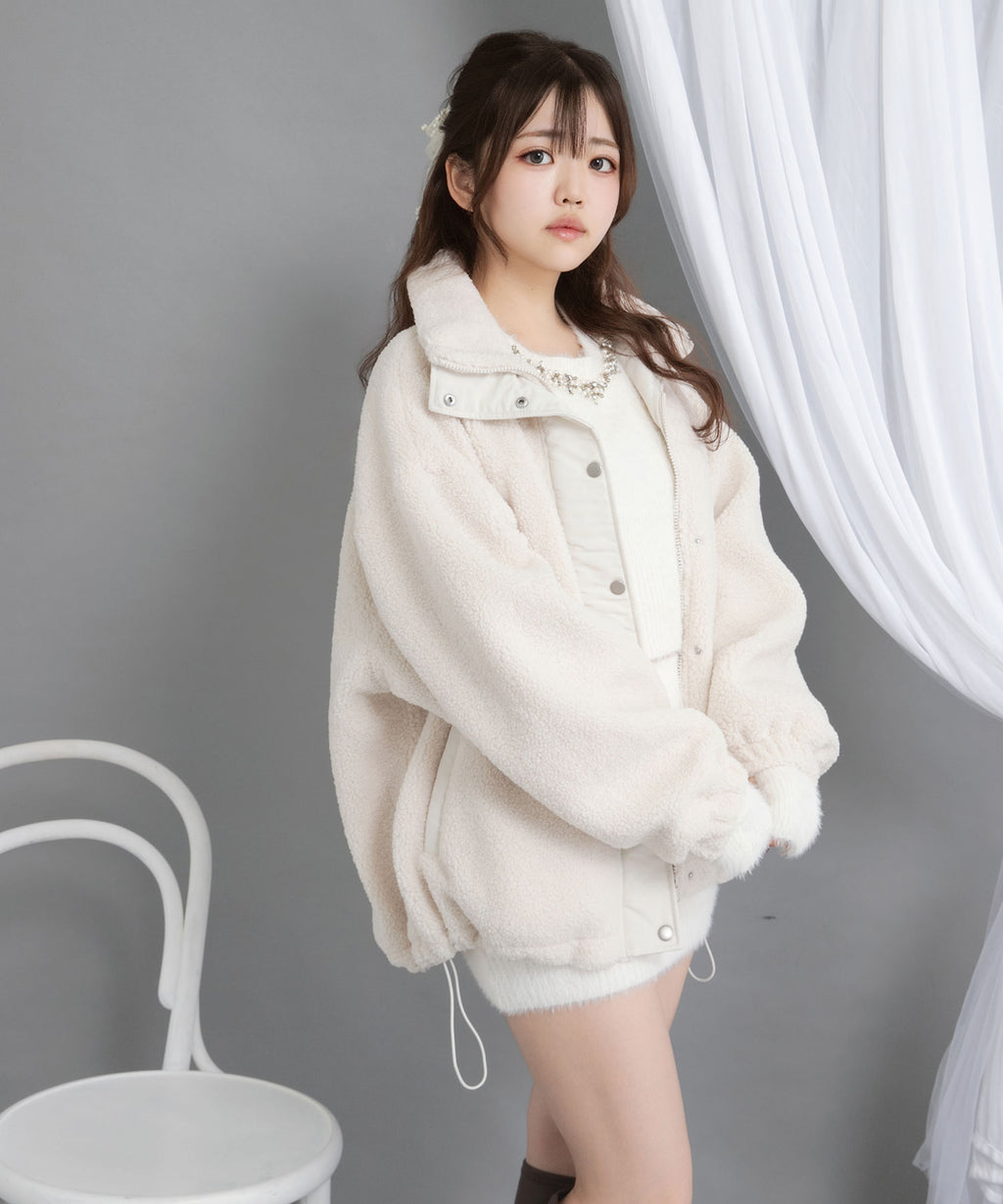 ふんわり柔らかなボア素材で仕立てた、トレンド感あふれるスタンドブルゾン。