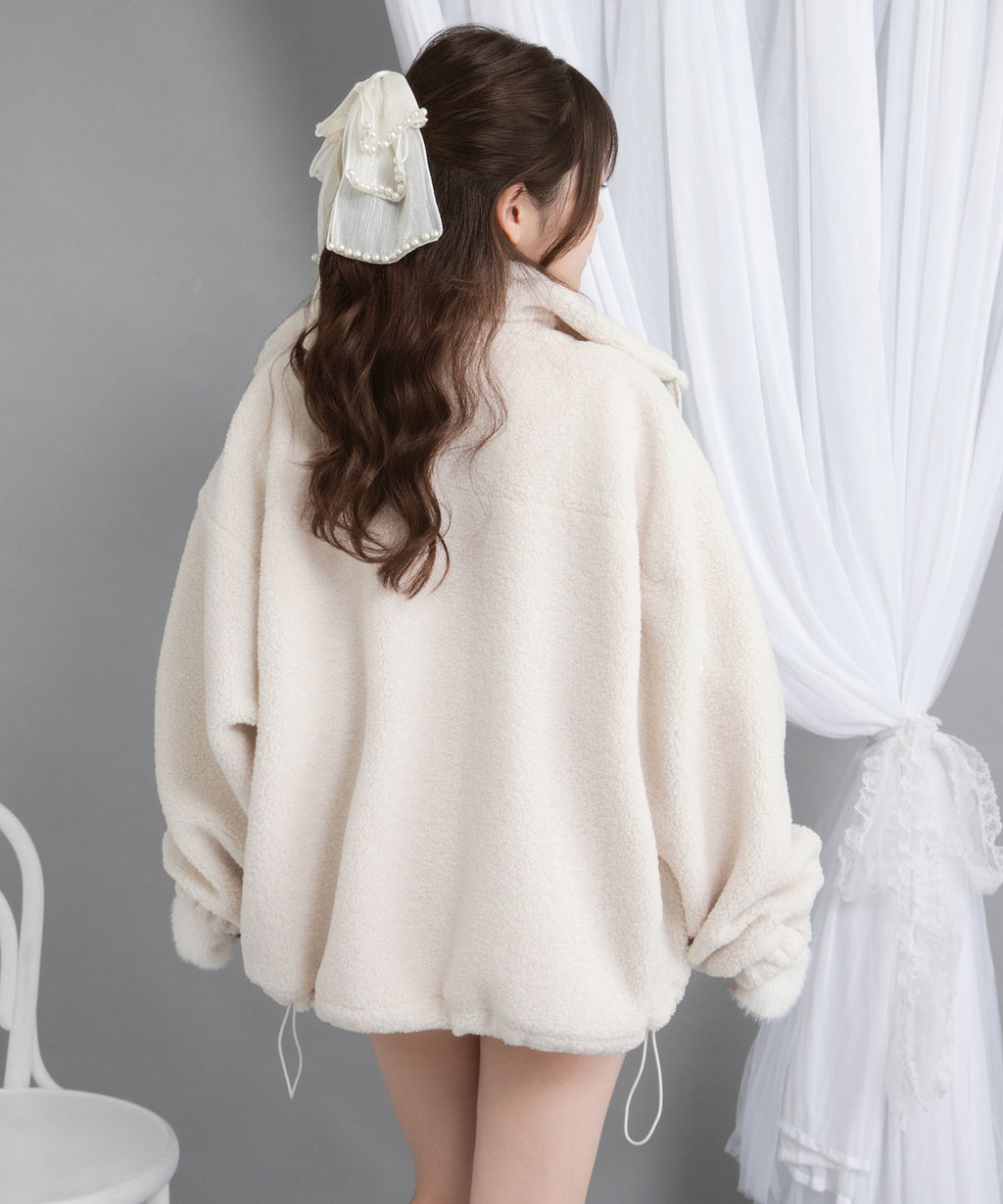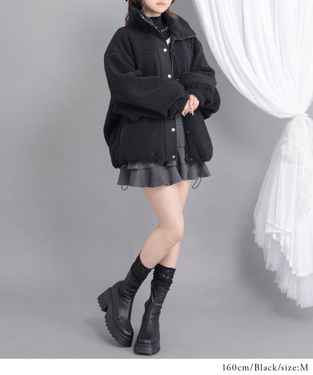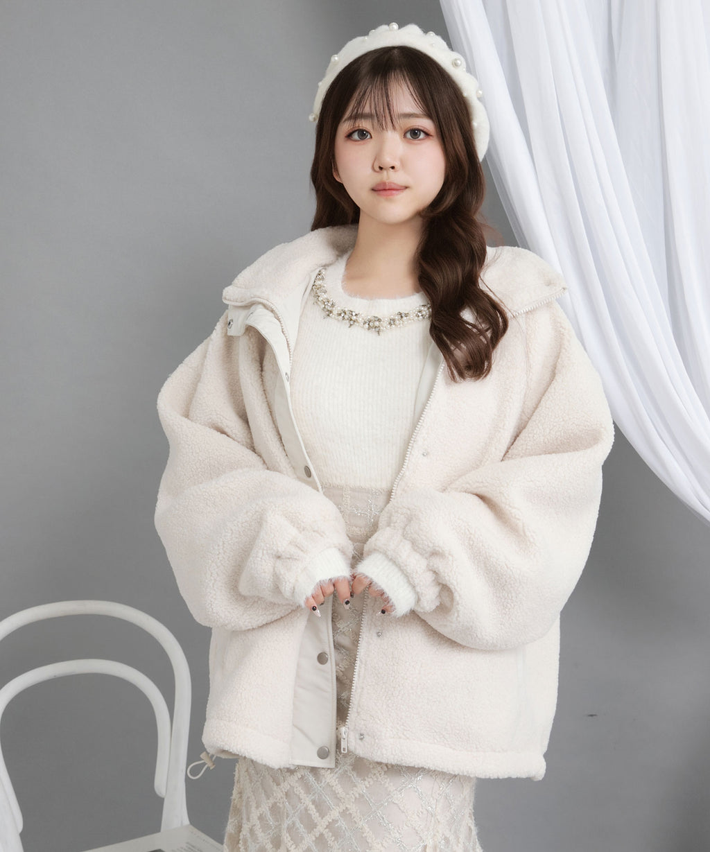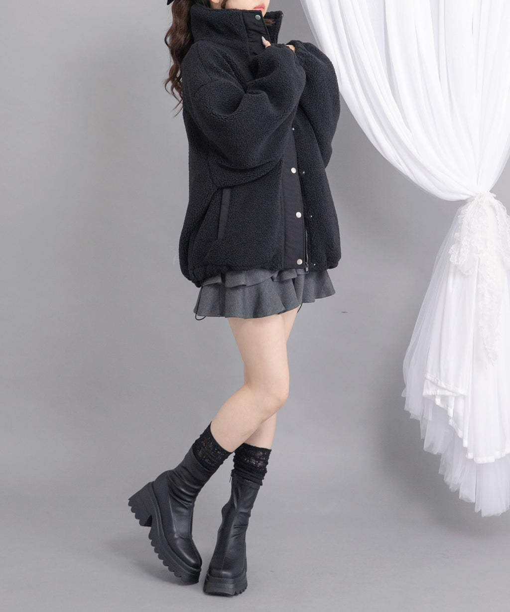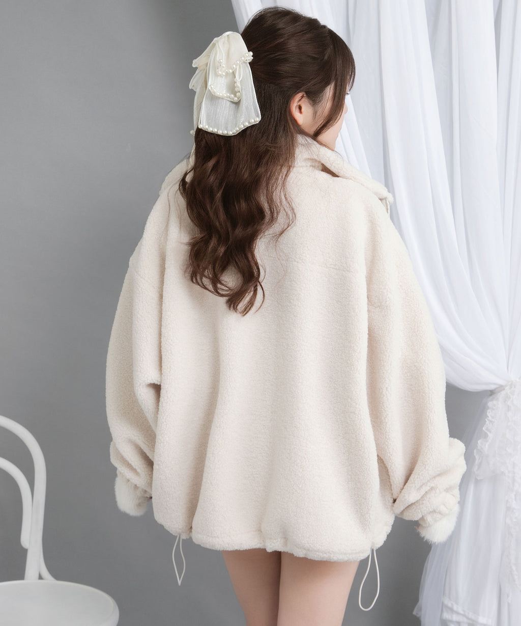 ふんわり柔らかなボア素材で仕立てた、トレンド感あふれるスタンドブルゾン。