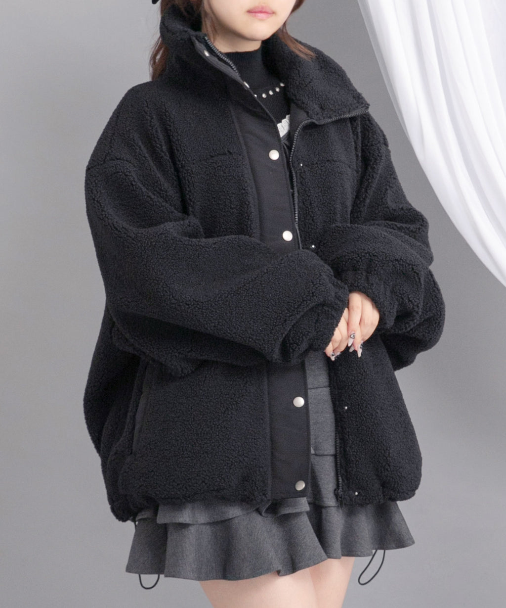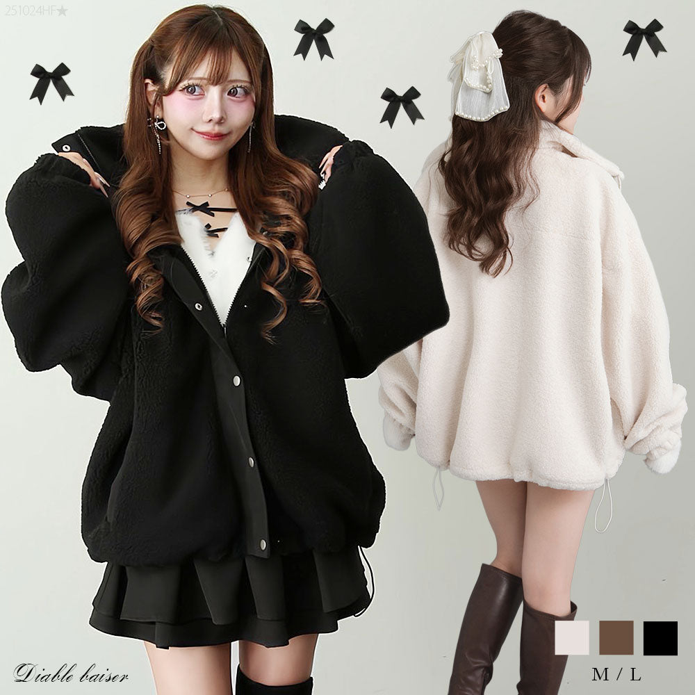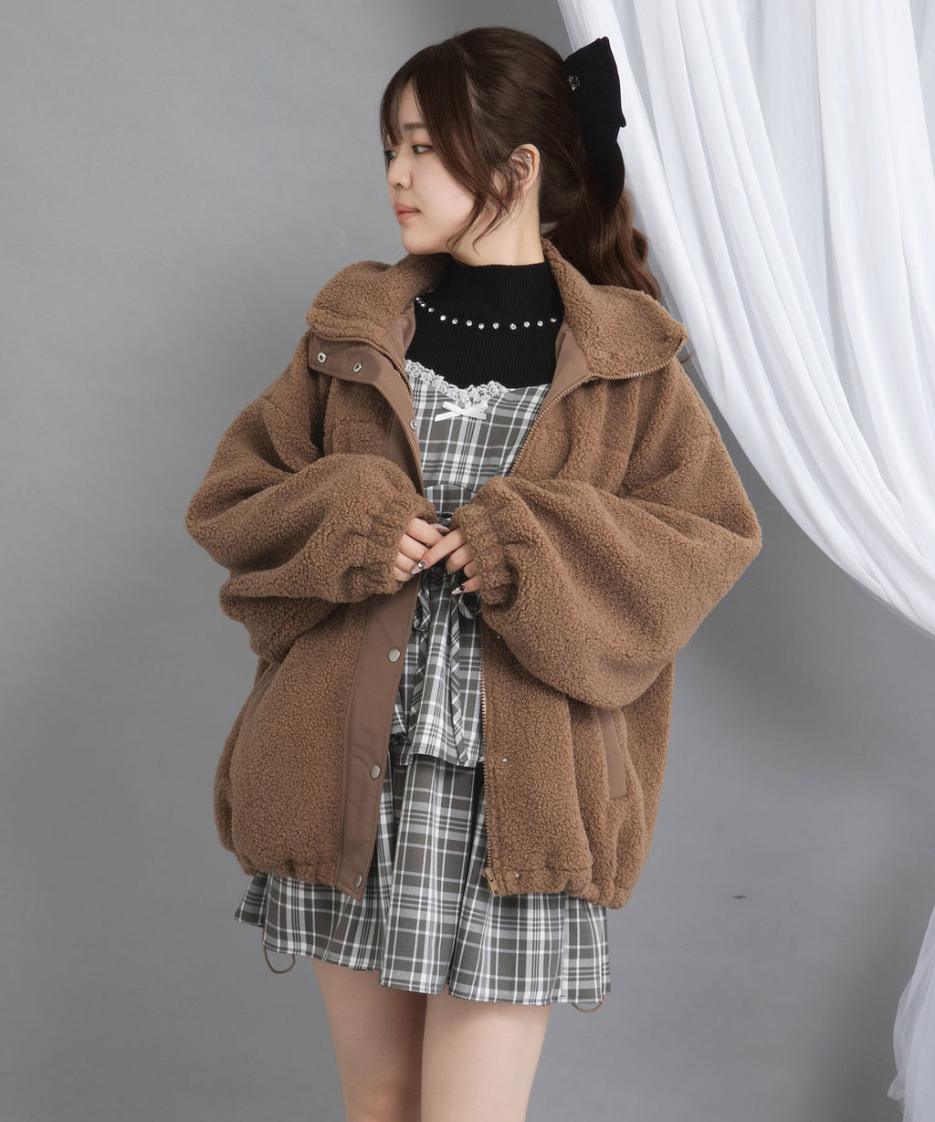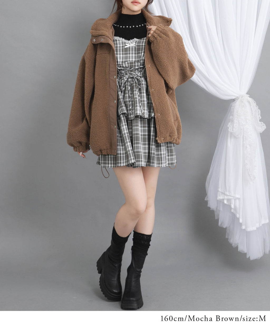 ふんわり柔らかなボア素材で仕立てた、トレンド感あふれるスタンドブルゾン。