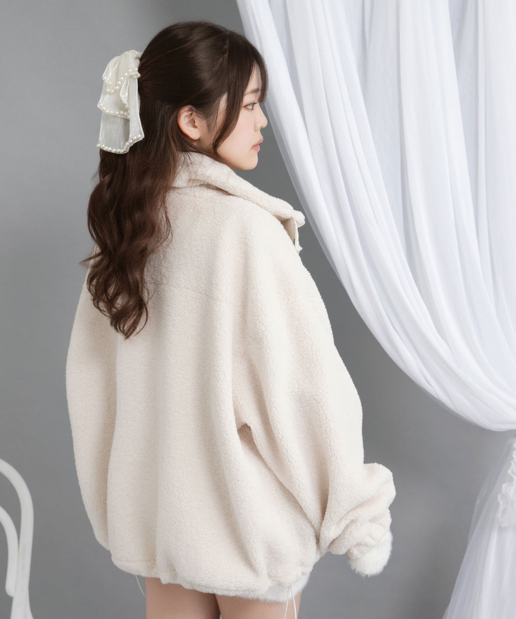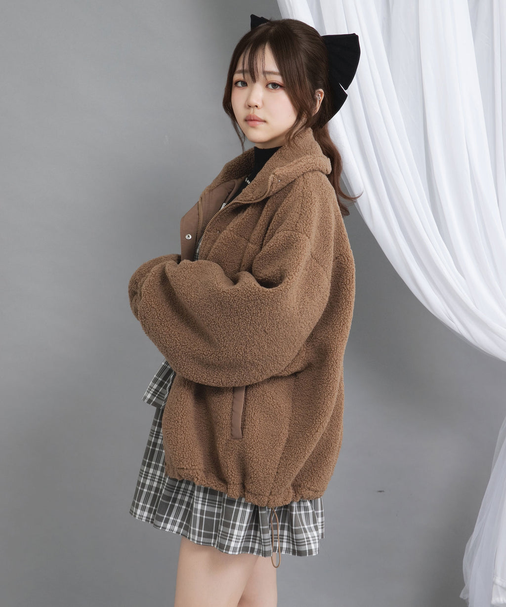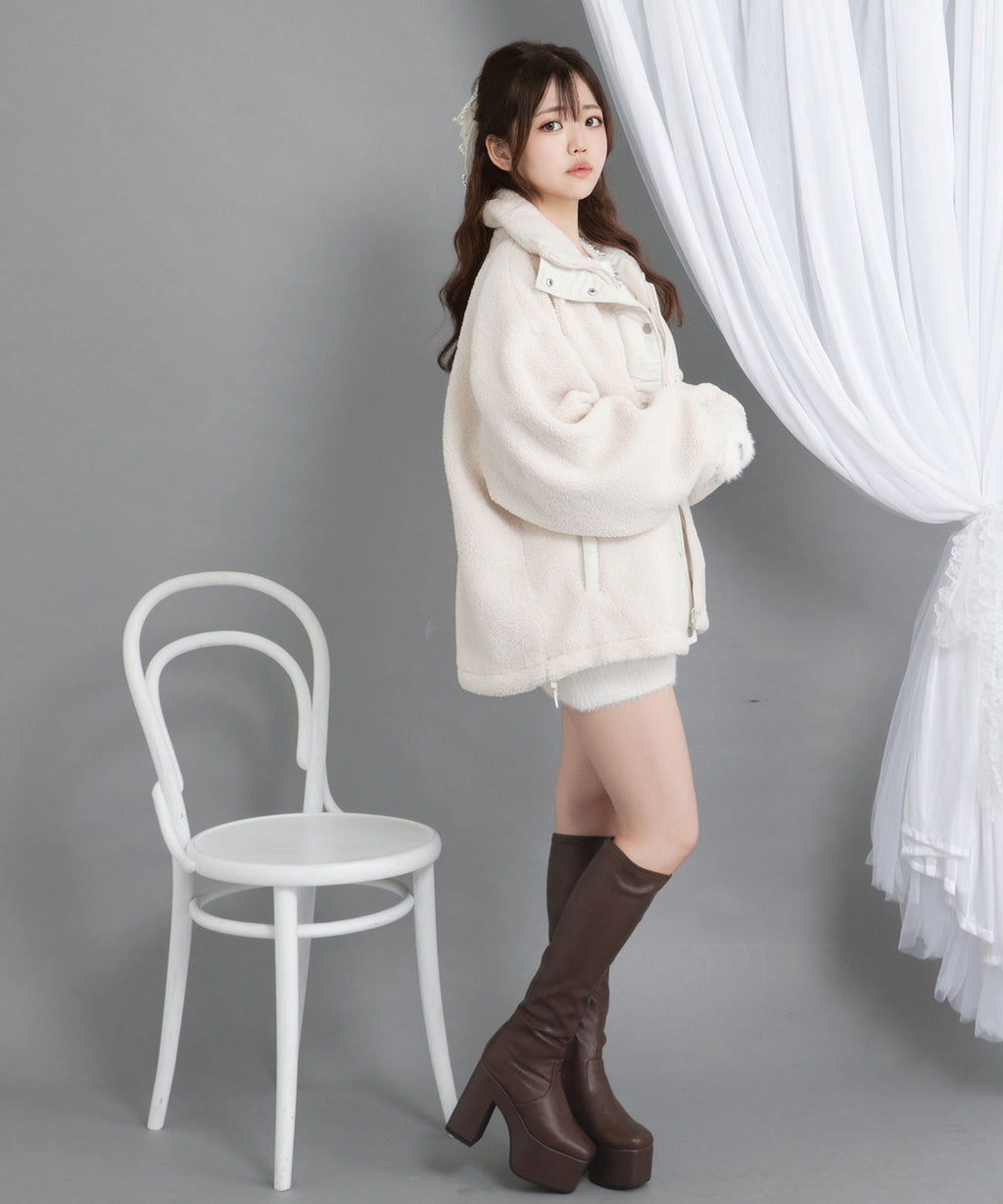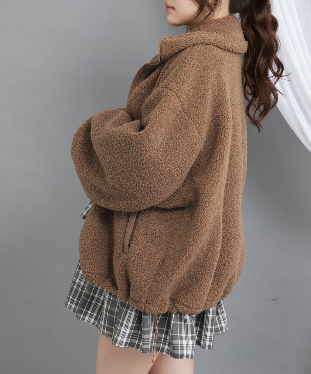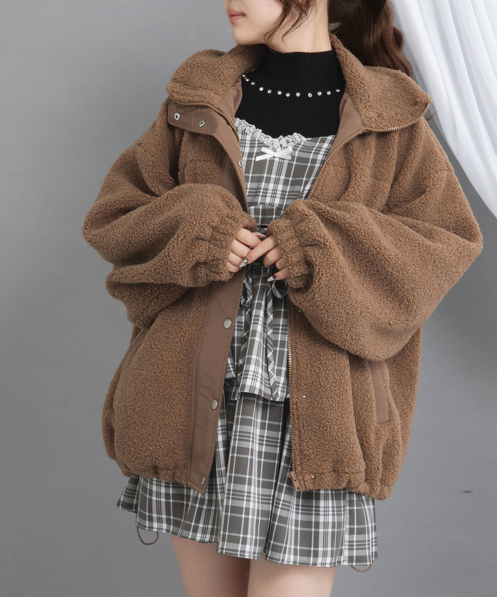 ふんわり柔らかなボア素材で仕立てた、トレンド感あふれるスタンドブルゾン。