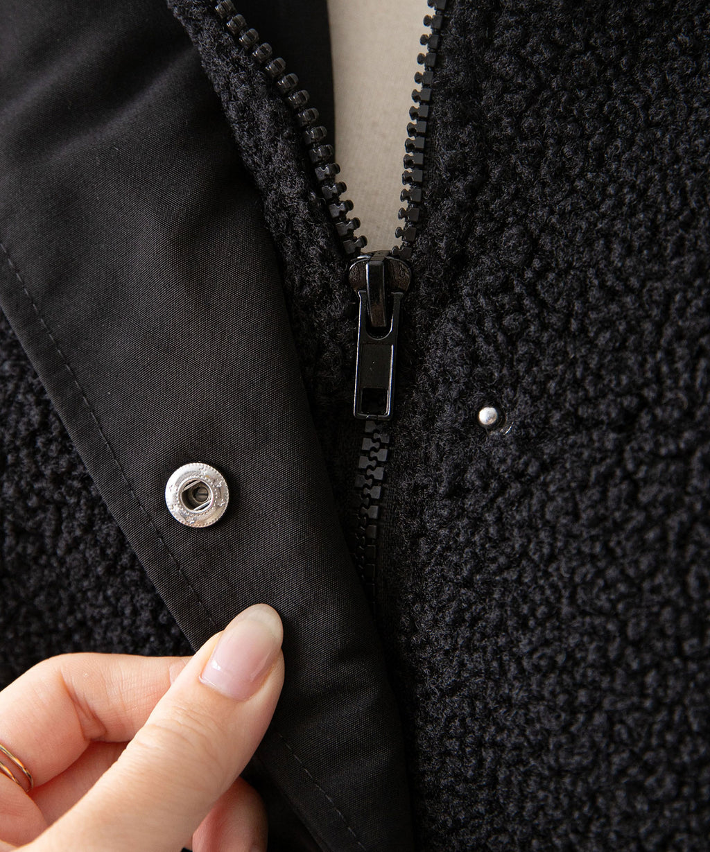 フロントはスナップボタン+ファスナーで防寒性も◎