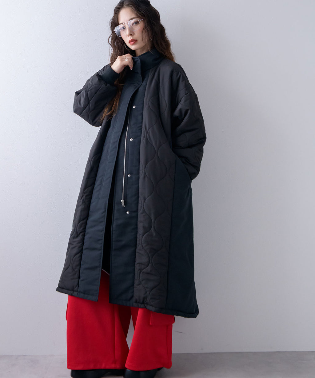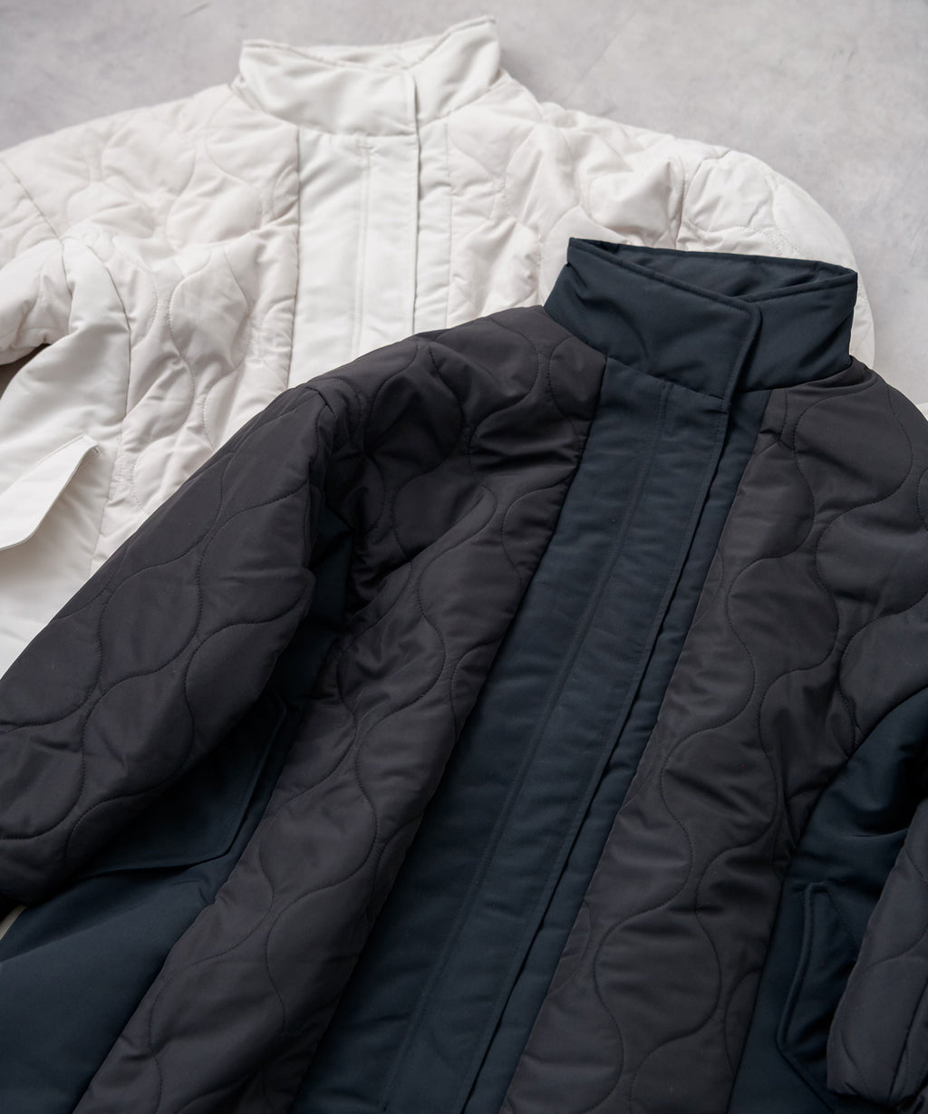 全体キルトではなく切替デザインにすることで、着膨れせずすっきりとした印象に。
