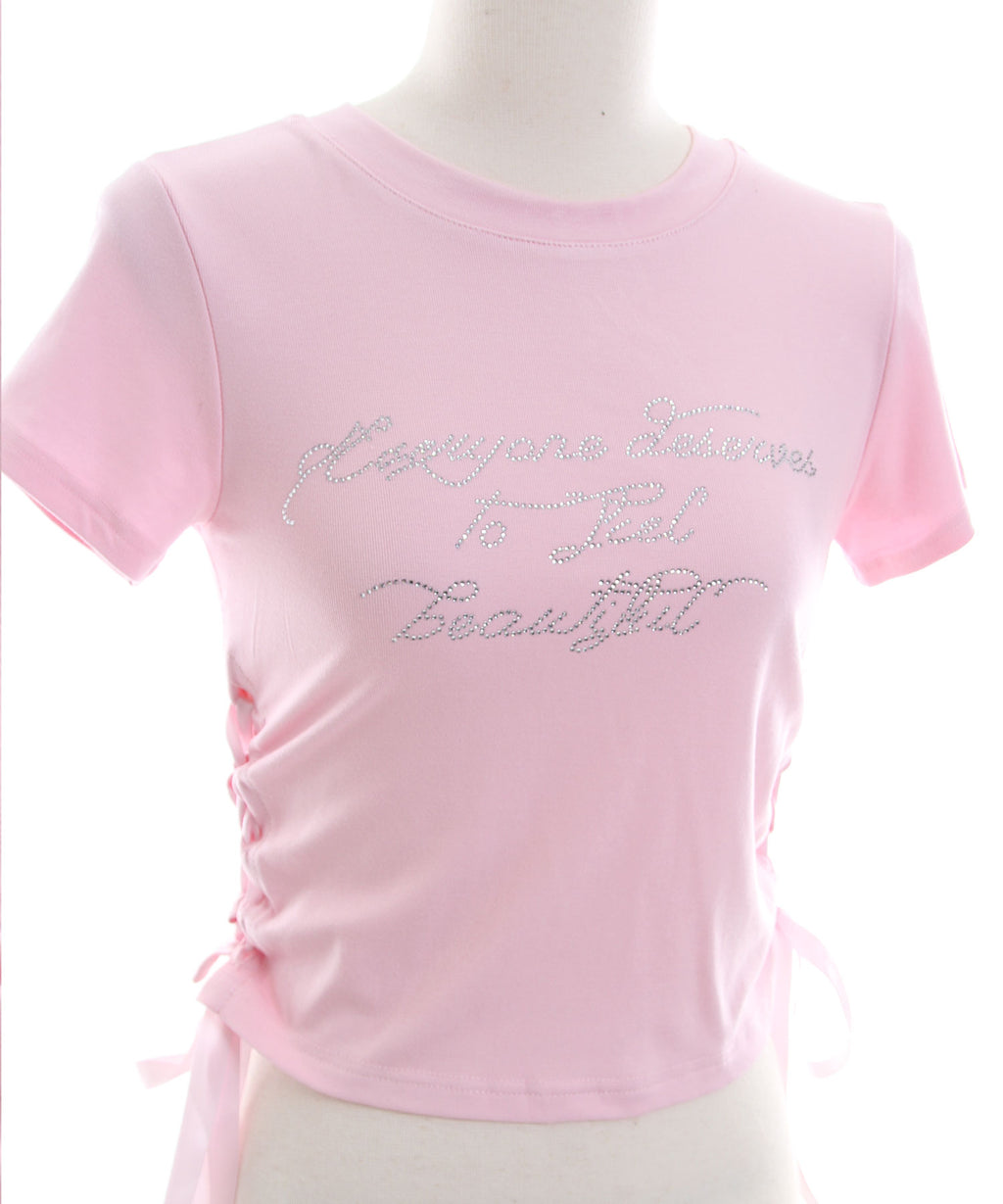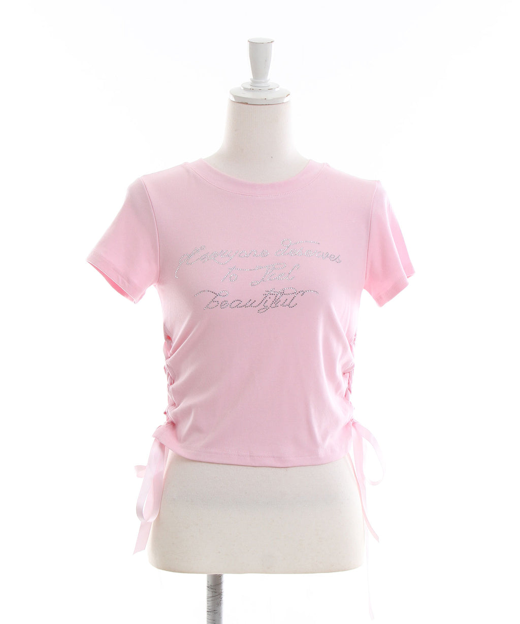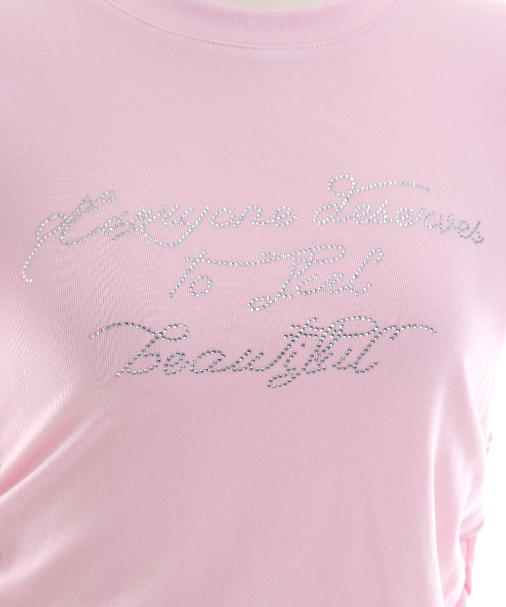 「ロゴビジュー半袖カットソー」は、前面にドーンと入ったビジューロゴで圧倒的存在感。