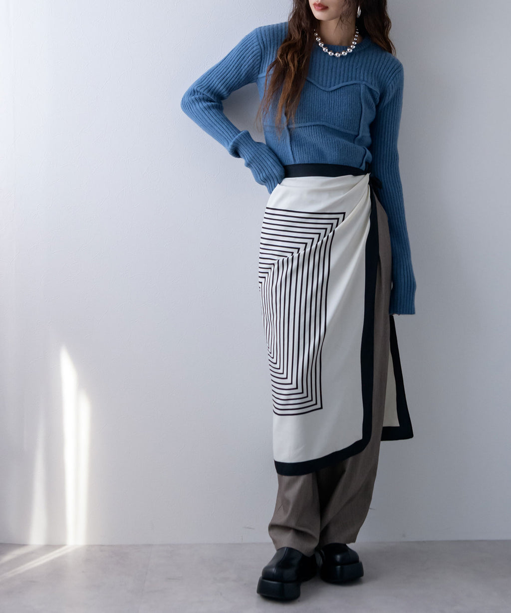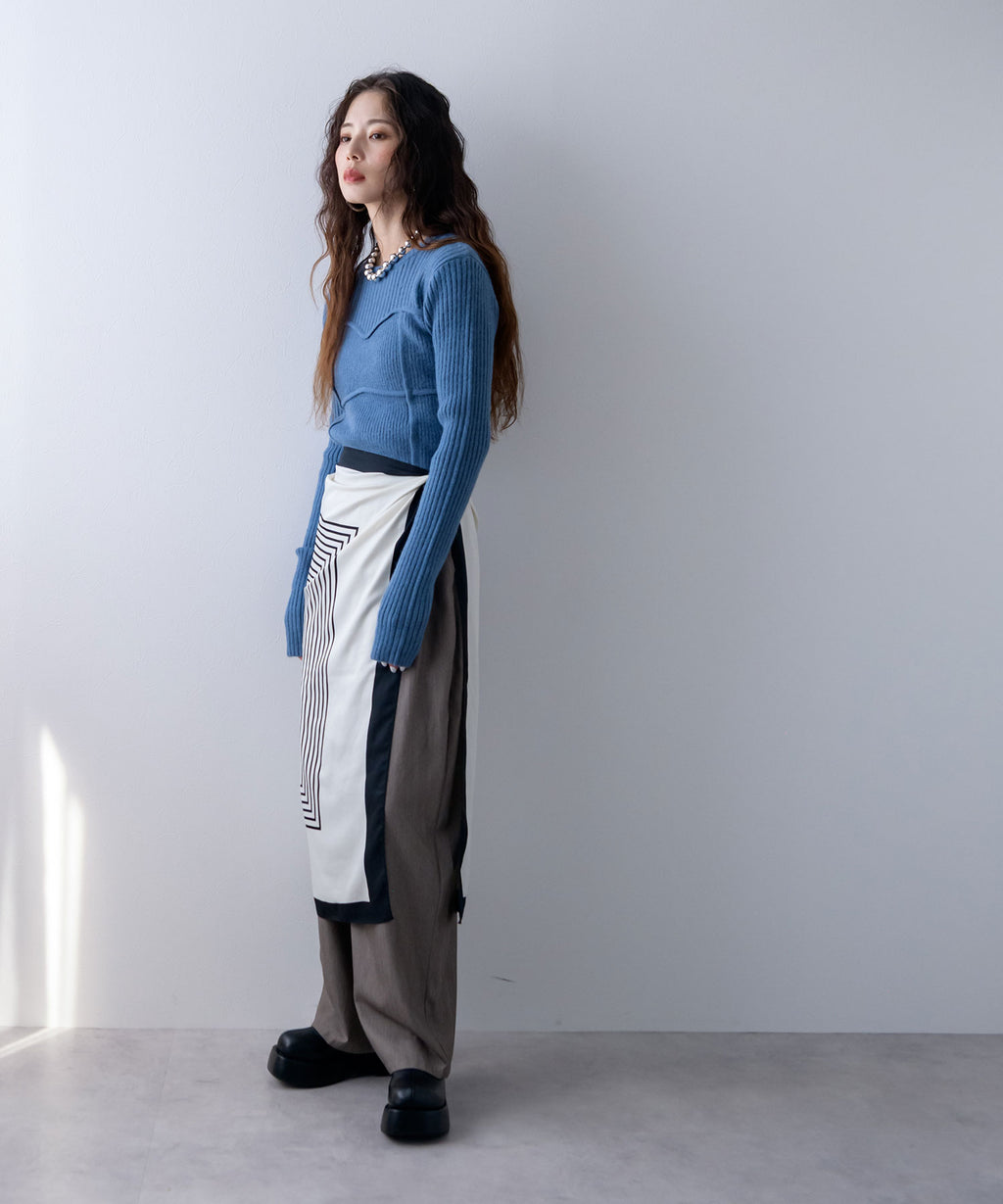 ワイドパンツやカジュアルパンツと合わせれば、リラクシーでありながら女性らしい印象に。