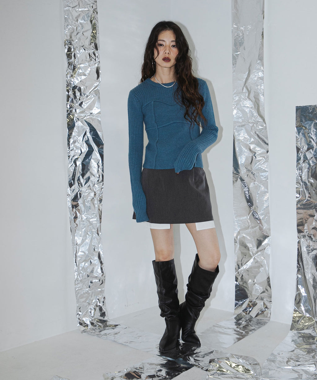 ミニボトム×ロングブーツなら、トレンド感のあるY2K風スタイリングにも。