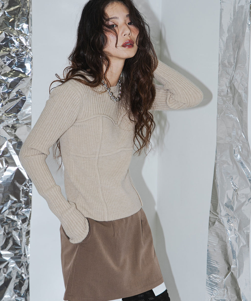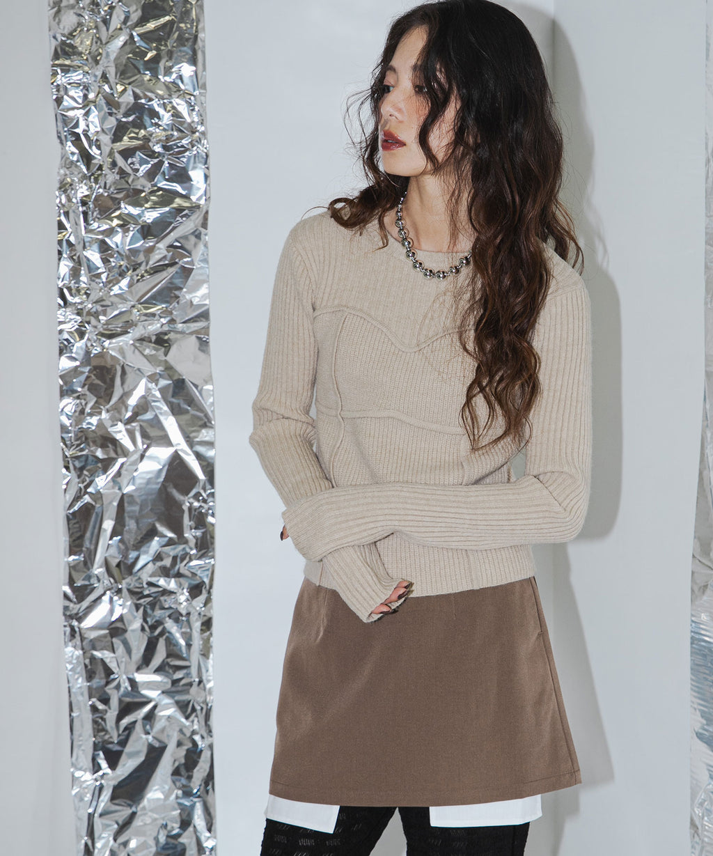 「1枚でスタイルアップ!女性らしさが際立つビスチェ風ニット」