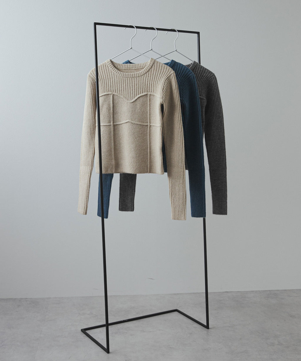 部分ごとに編み地を切り替えており、立体感のある仕上がりに。