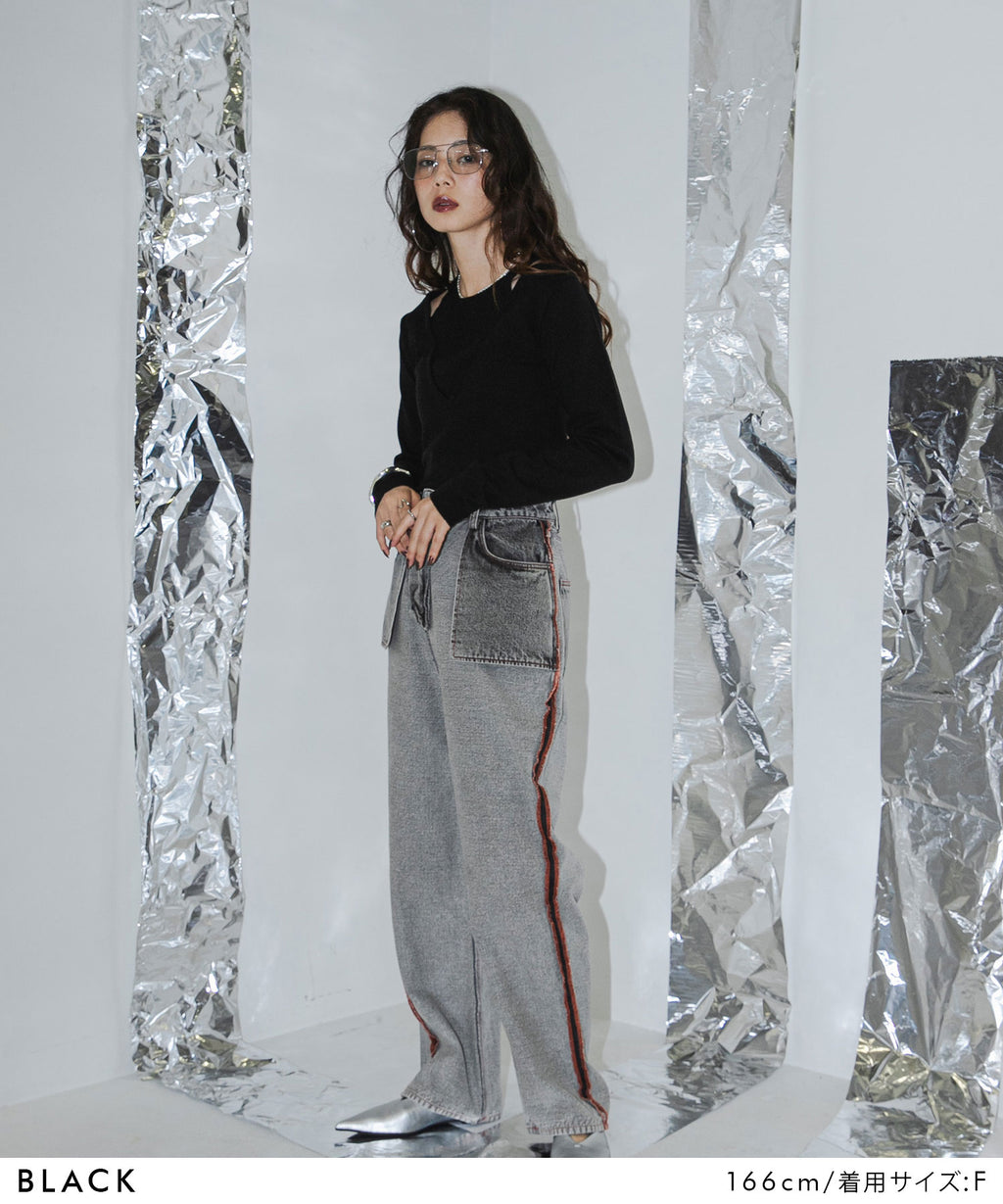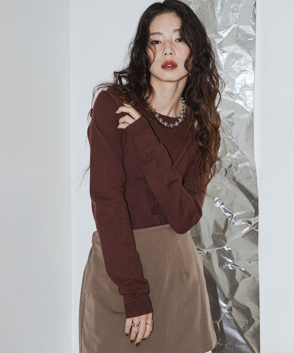 肩部分にさりげない肌見せがあり、大人の抜け感とこなれ感をプラス。