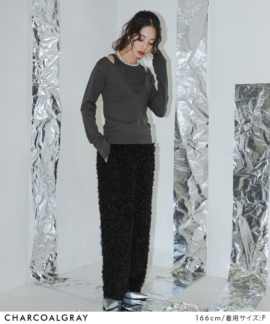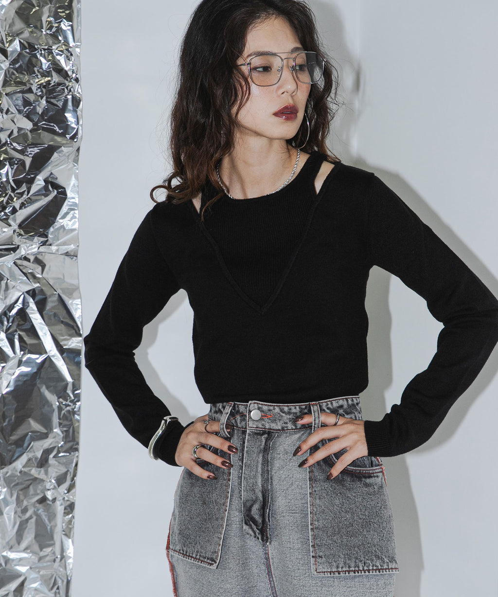 1枚で着ても重ね着しているようなおしゃれ感が楽しめるニット。