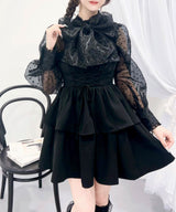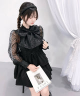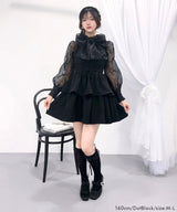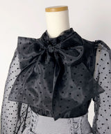 襟元のリボンは前後どちらでも結ぶことができ、気分やシーンに合わせて表情を変えられる優秀デザイン。