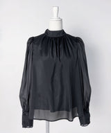 シアー素材でエアリー感たっぷりな、前後2WAYリボンシャツブラウス♪