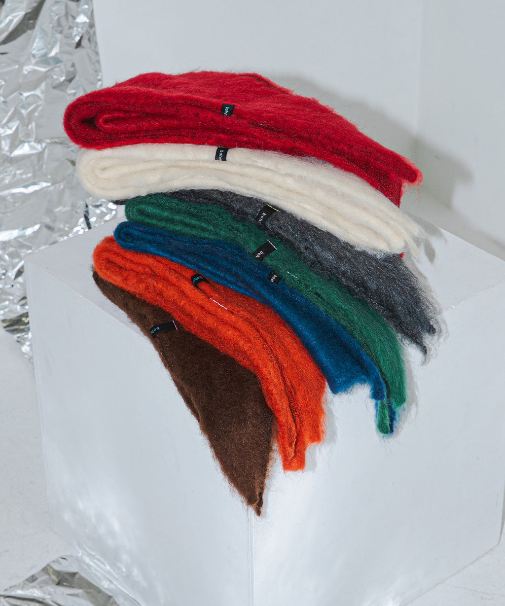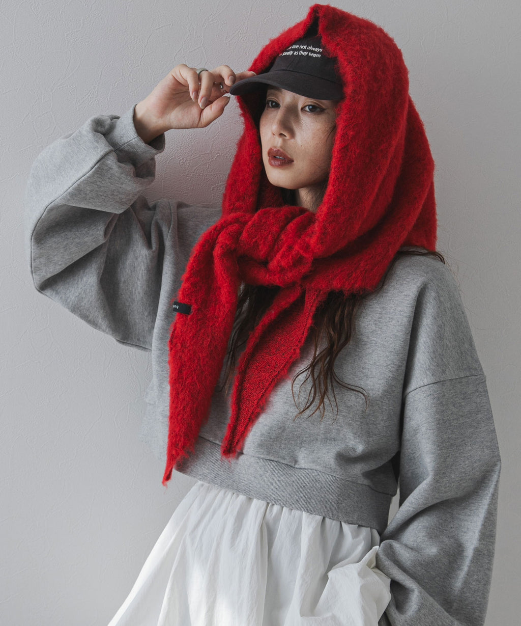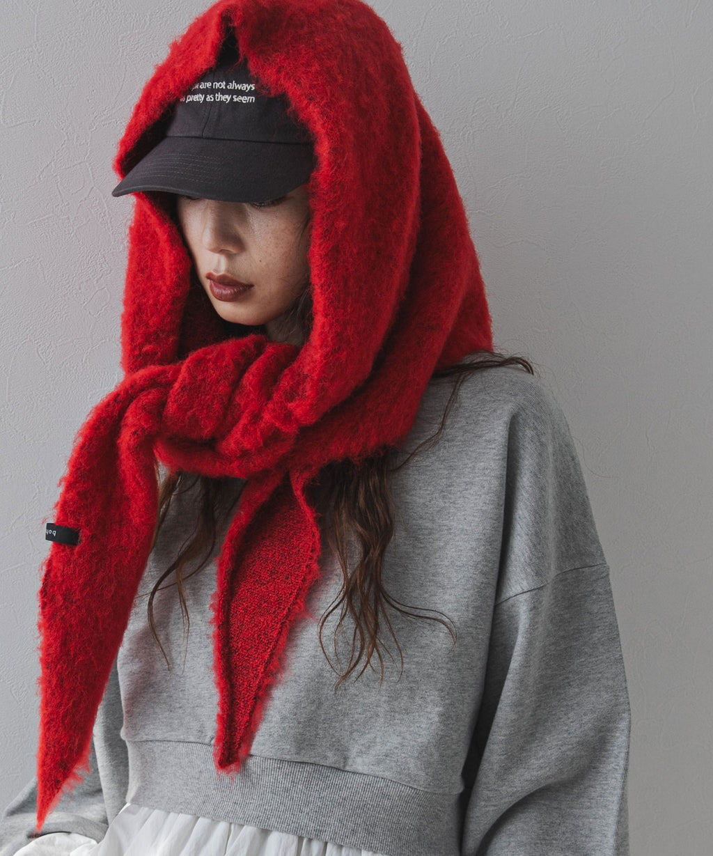 軽くて柔らかなモヘアタッチ糸を使用。