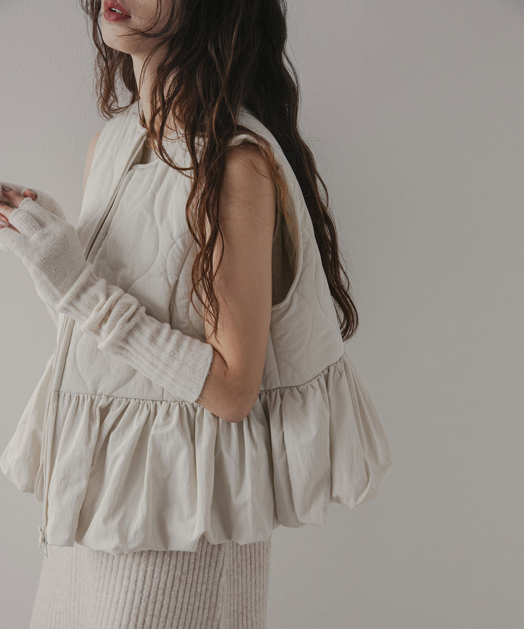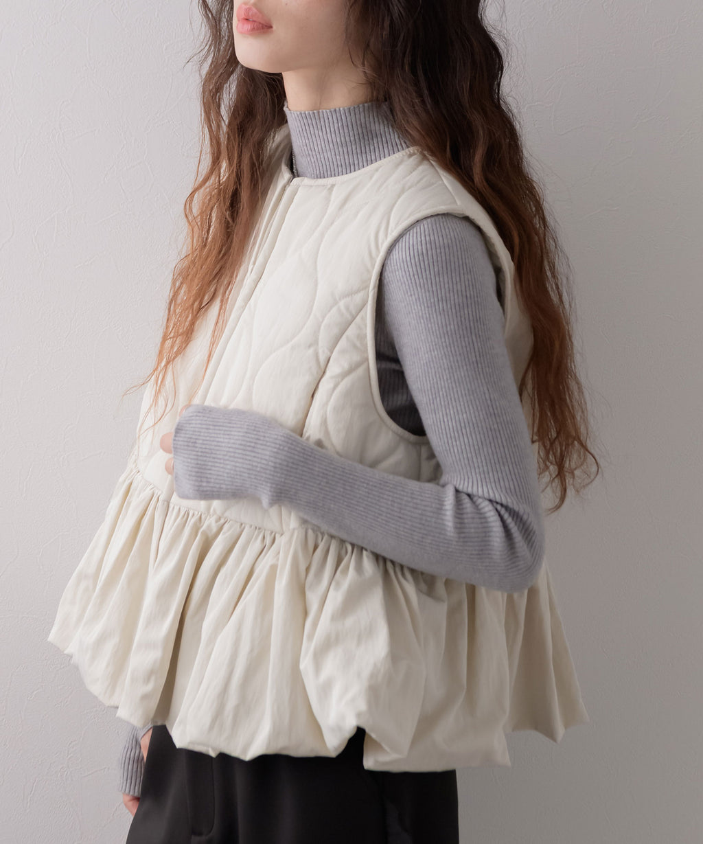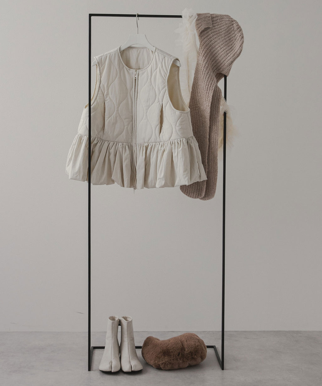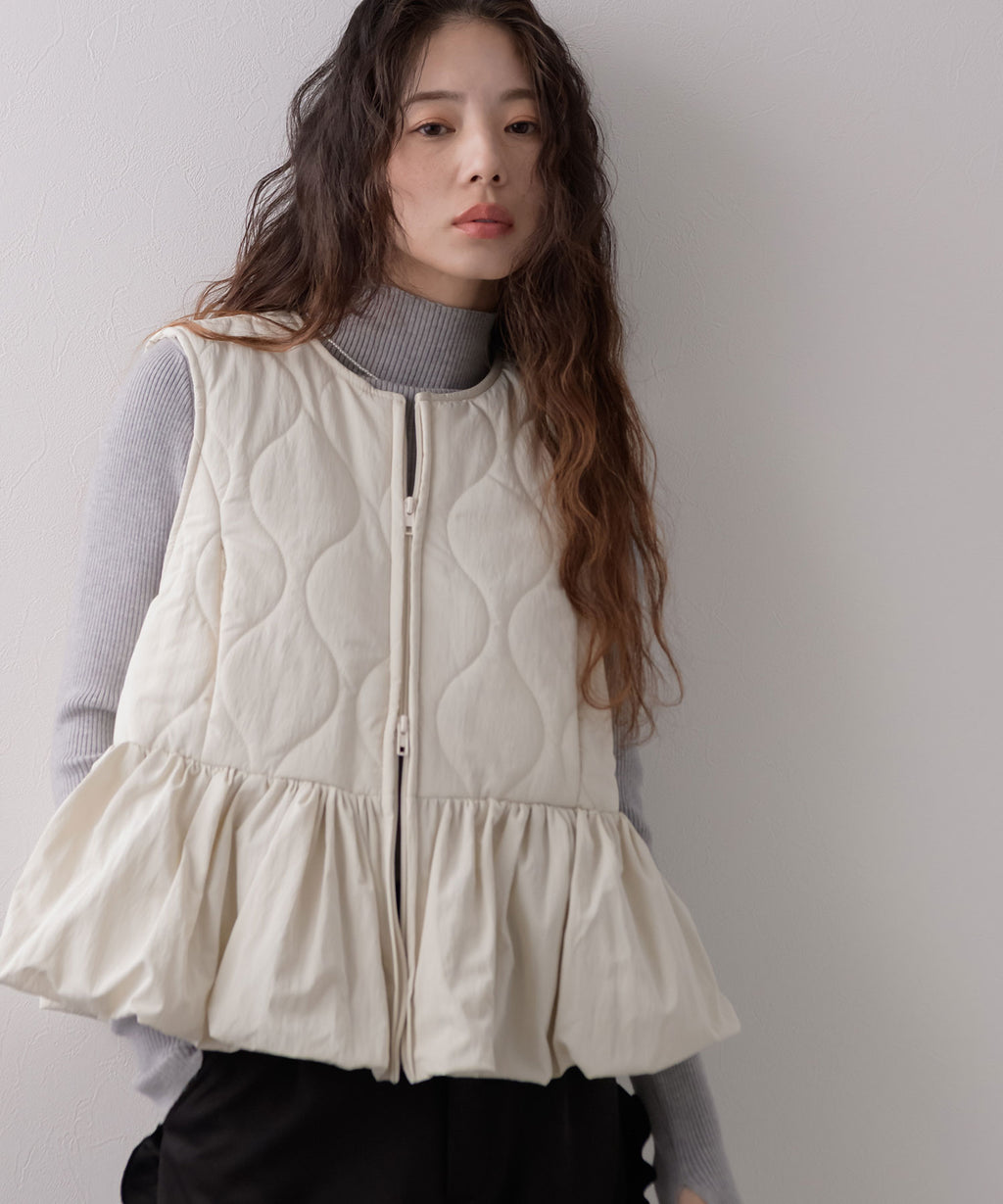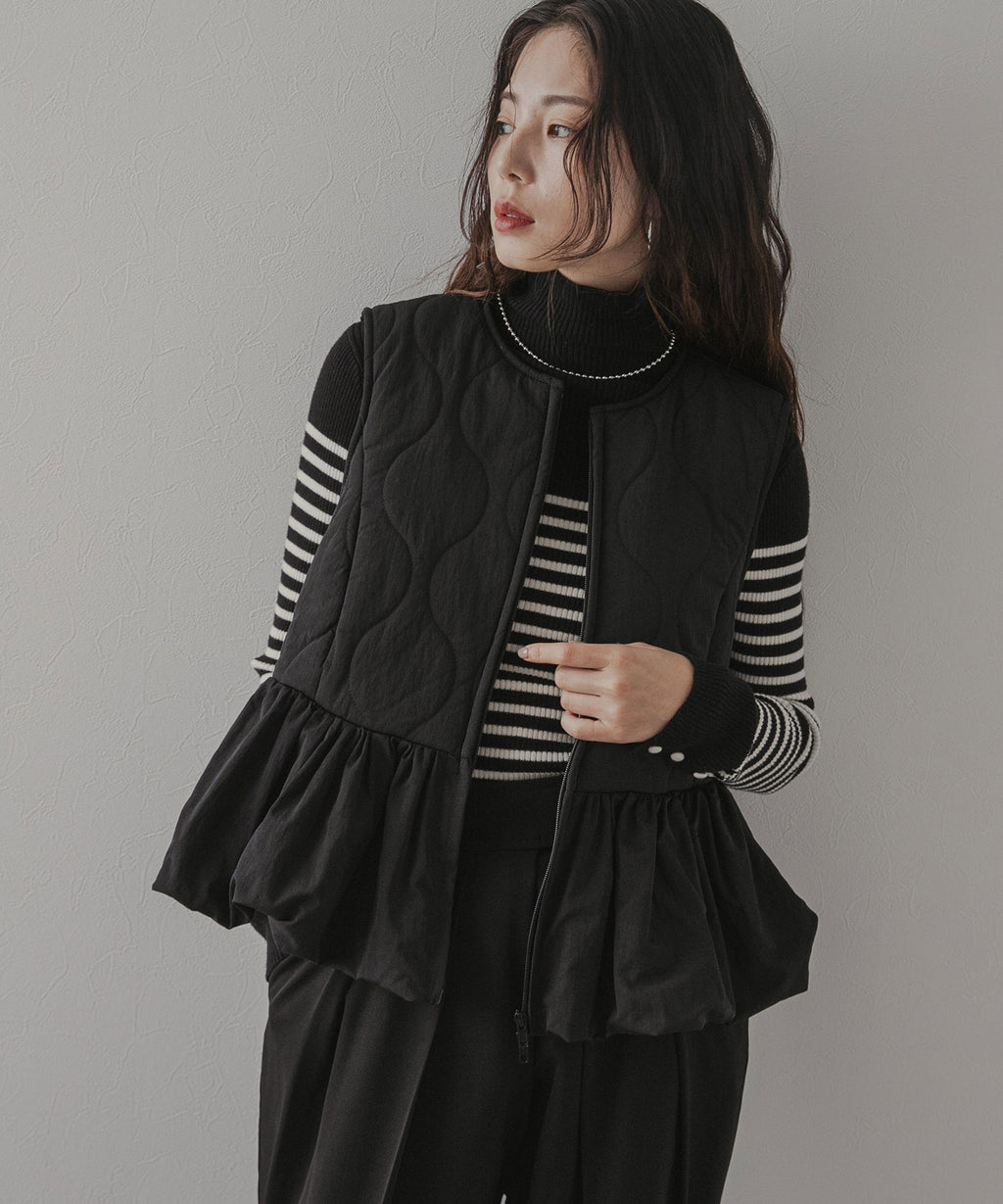 裾にかけて広がるフレアシルエットが魅力のキルティングベスト。