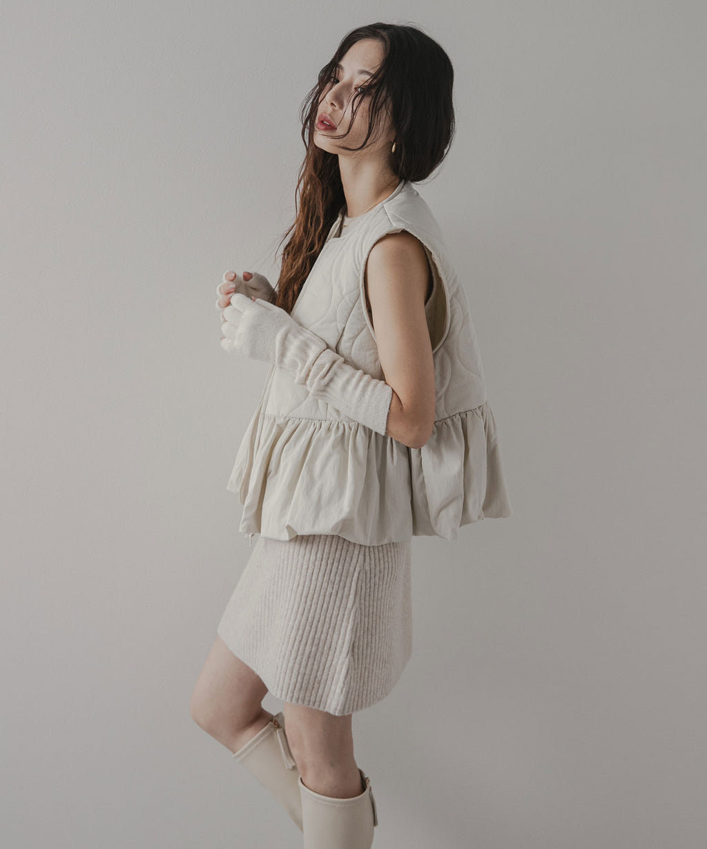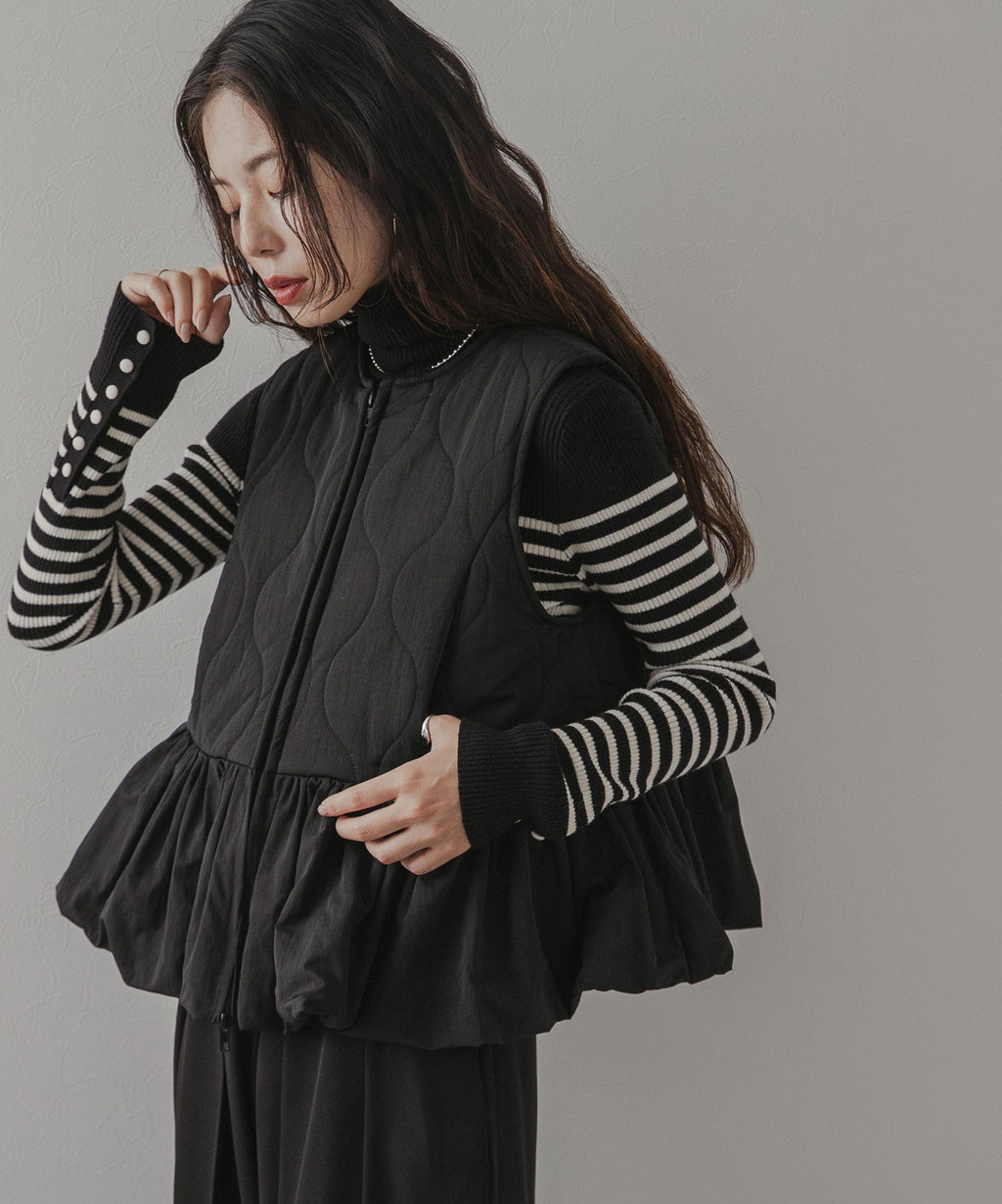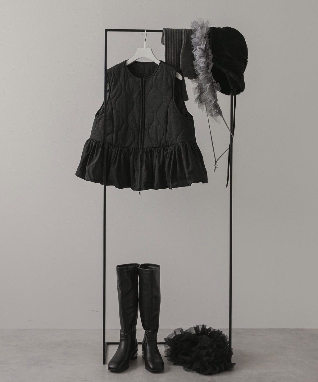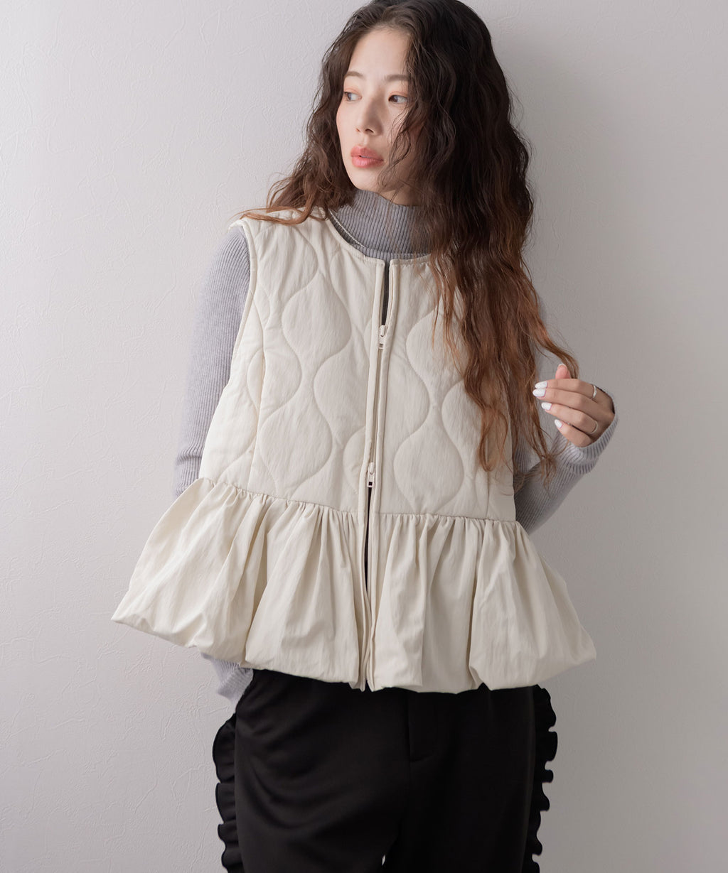 裾にかけて広がるフレアシルエットが魅力のキルティングベスト。