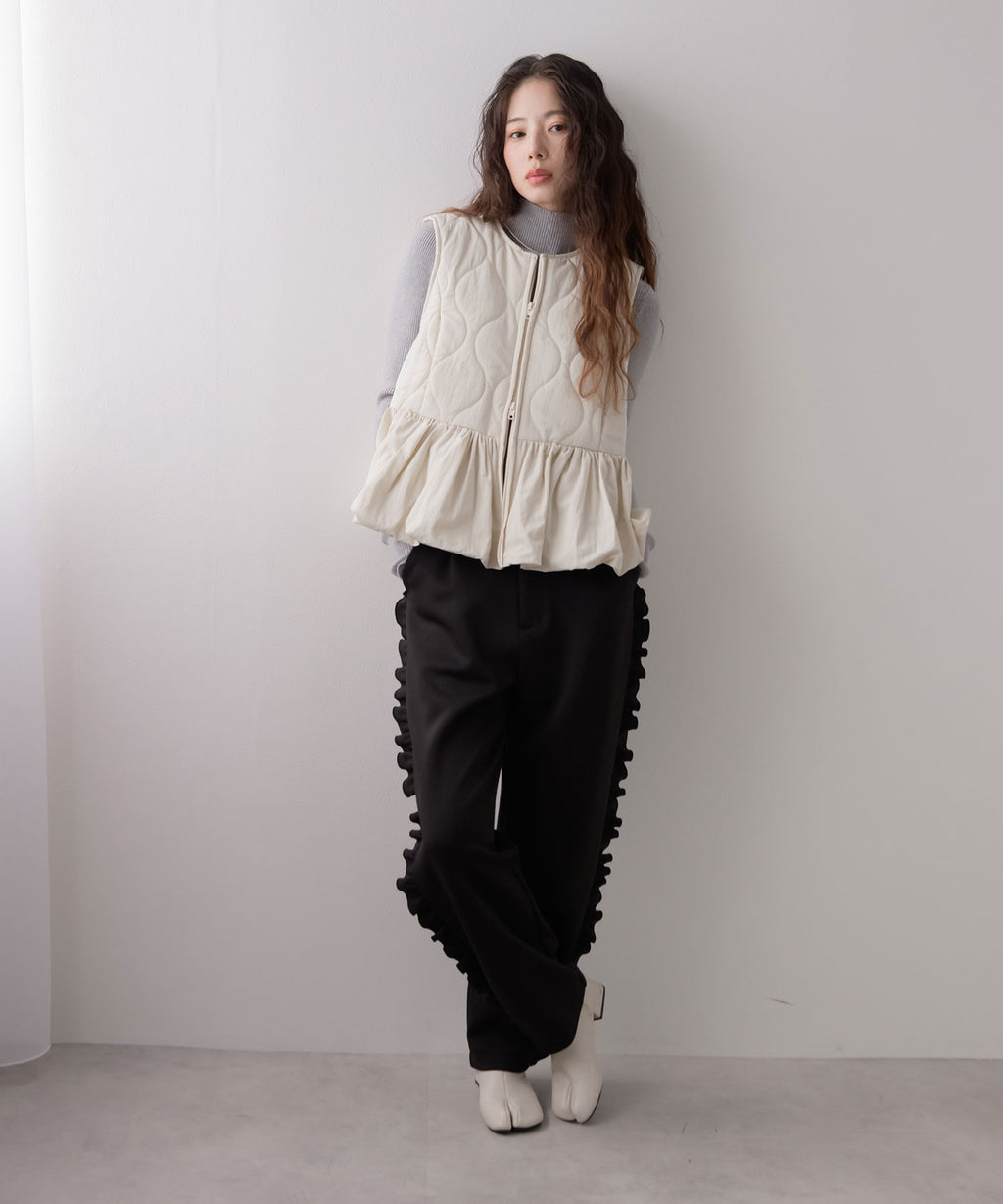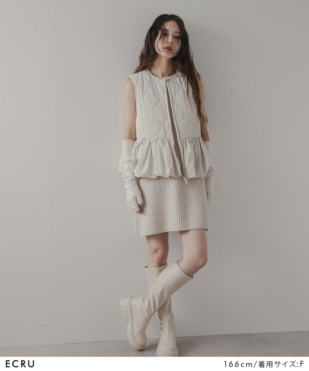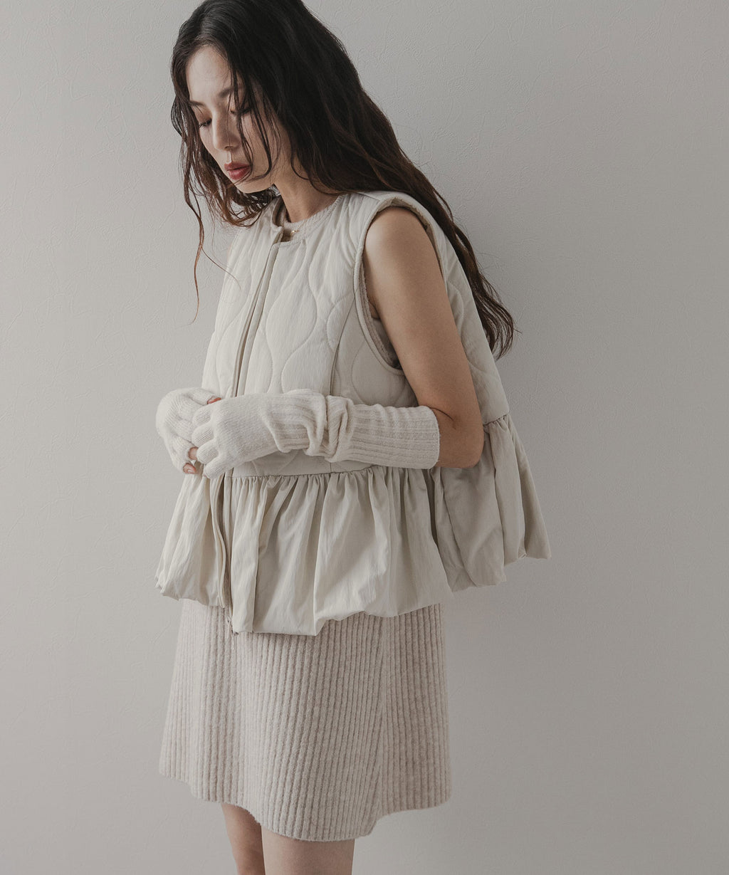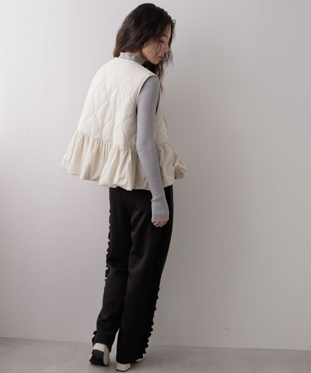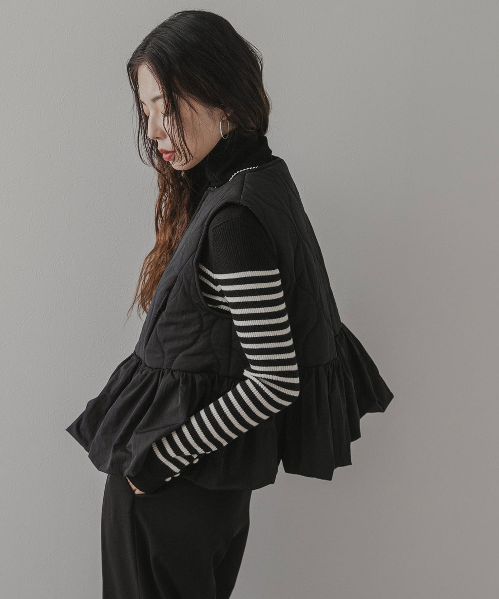 裾にかけて広がるフレアシルエットが魅力のキルティングベスト。