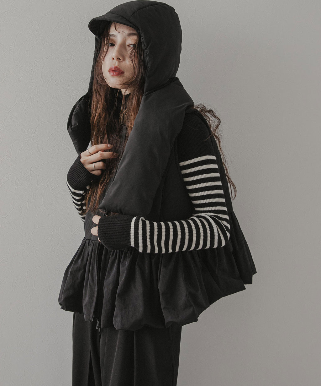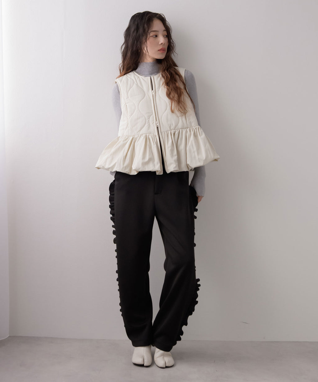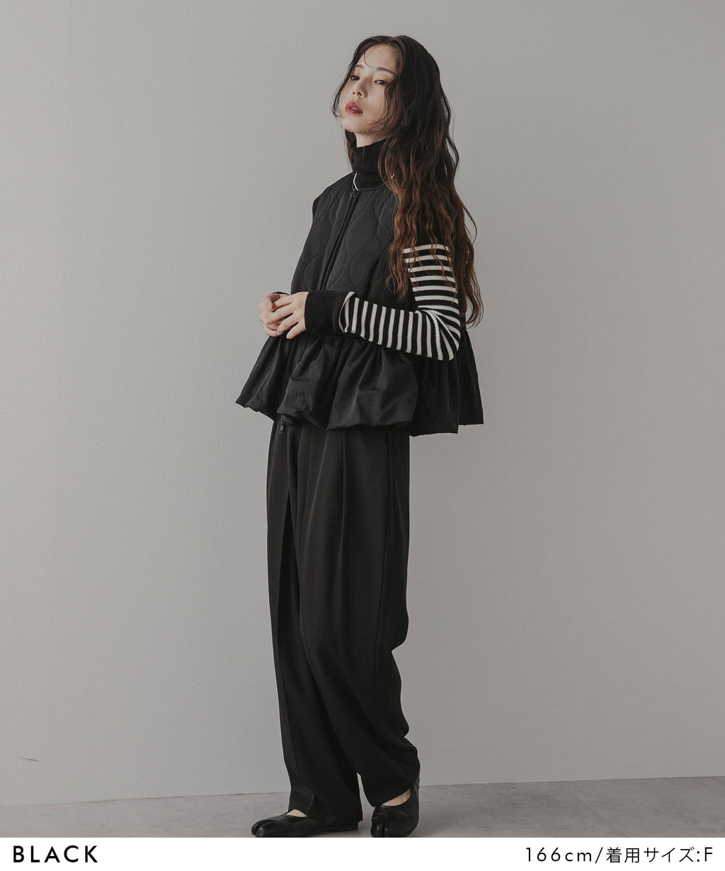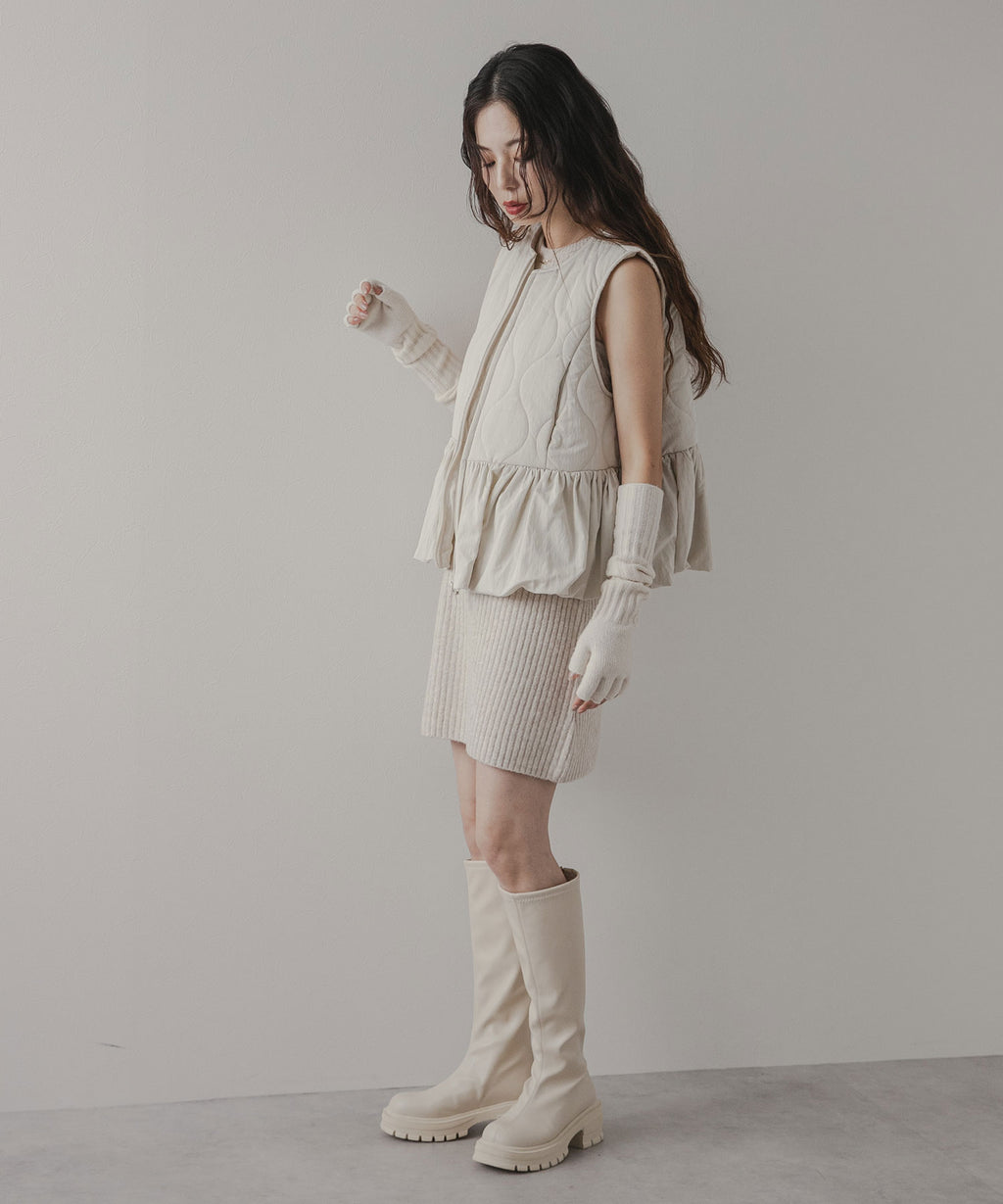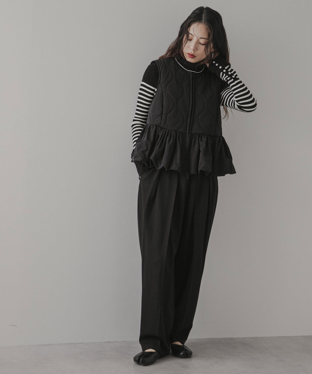 裾にかけて広がるフレアシルエットが魅力のキルティングベスト。