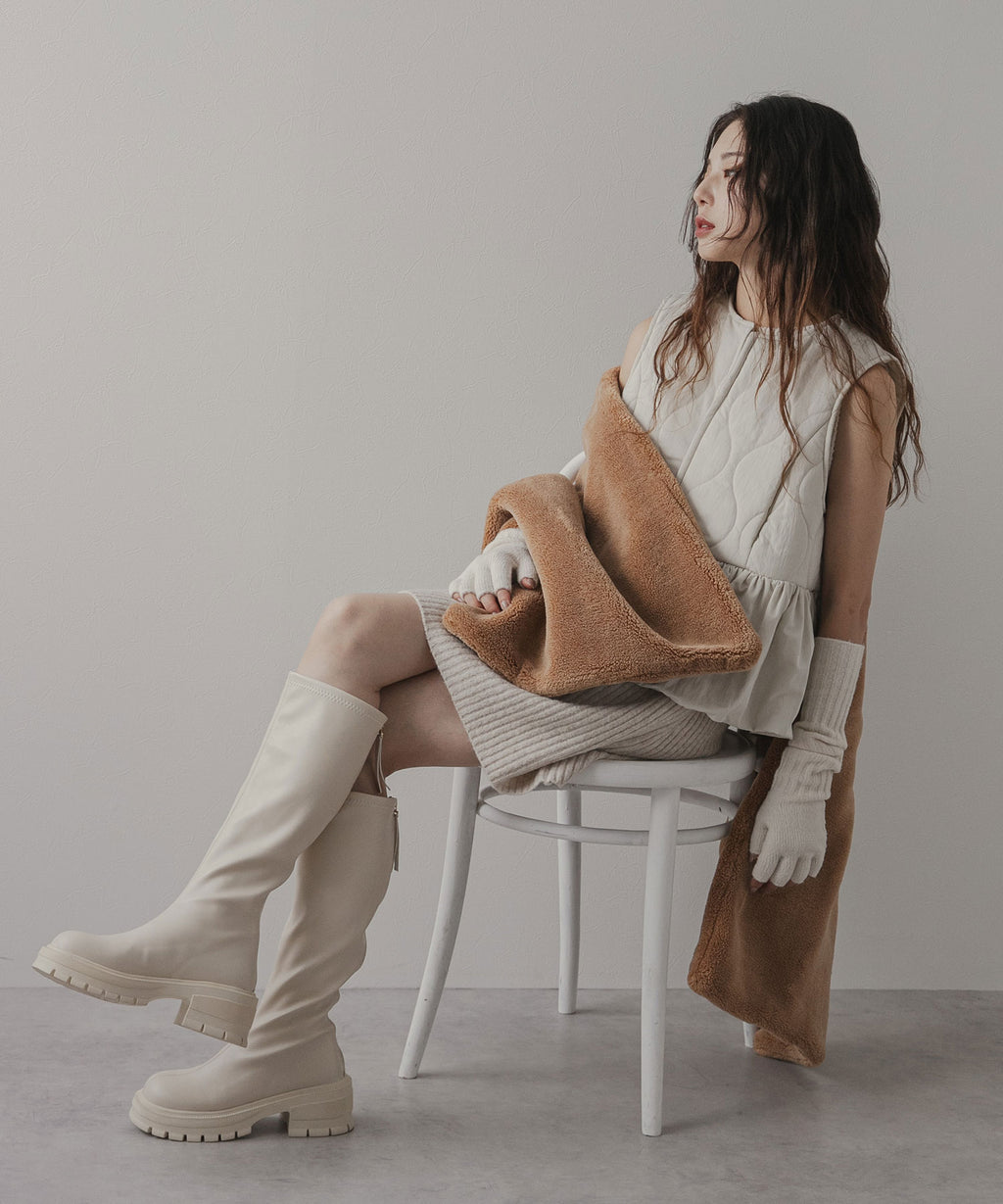 軽やかで保温性のある中綿入りキルティング素材を使用。