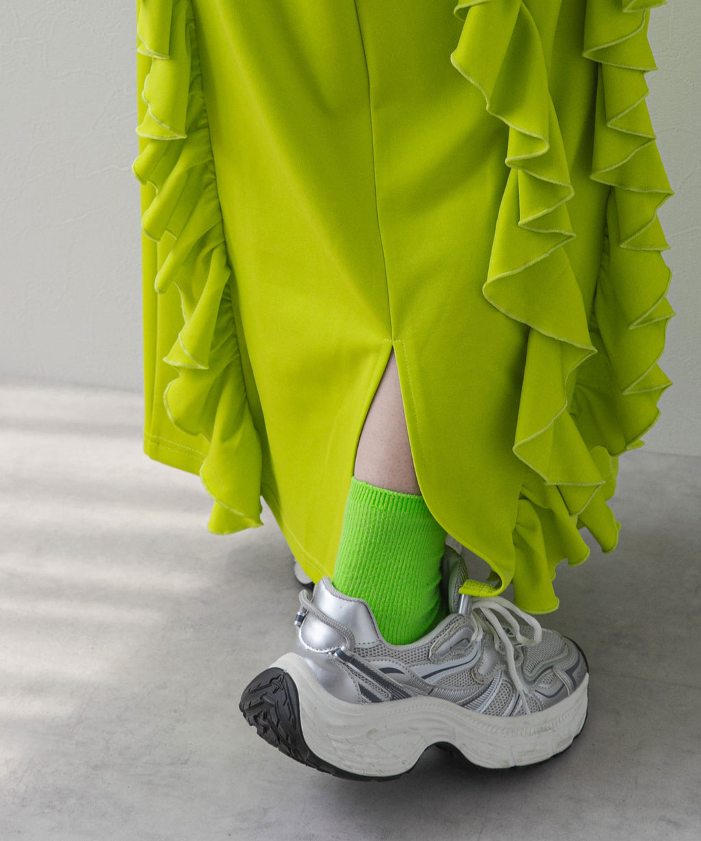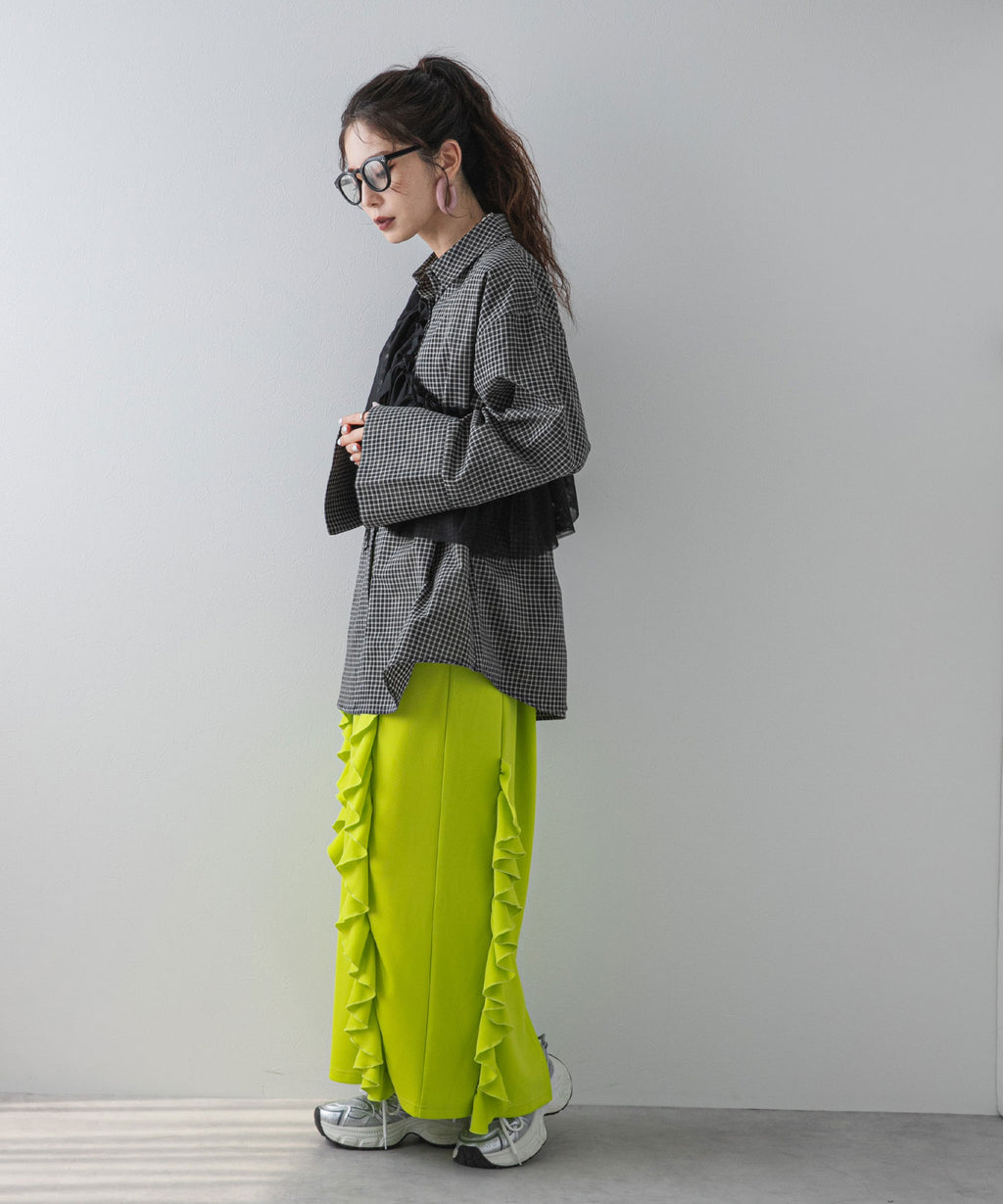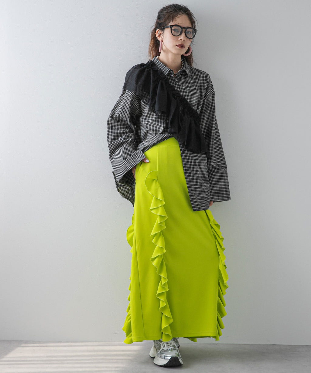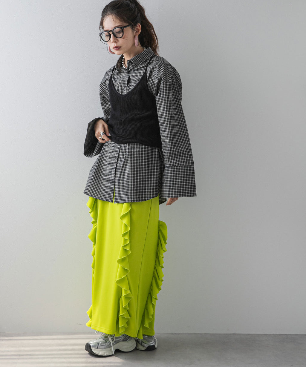バランスを計算し尽くしたフリル配置で、スタイルアップ効果も抜群。