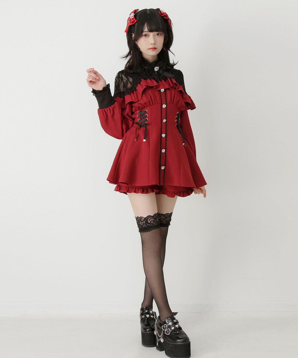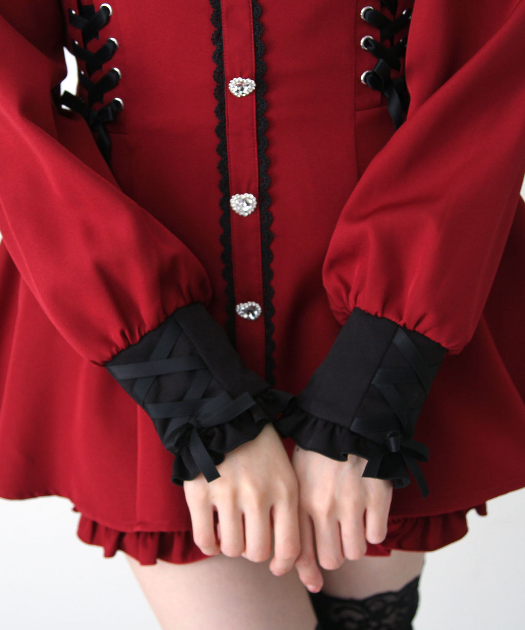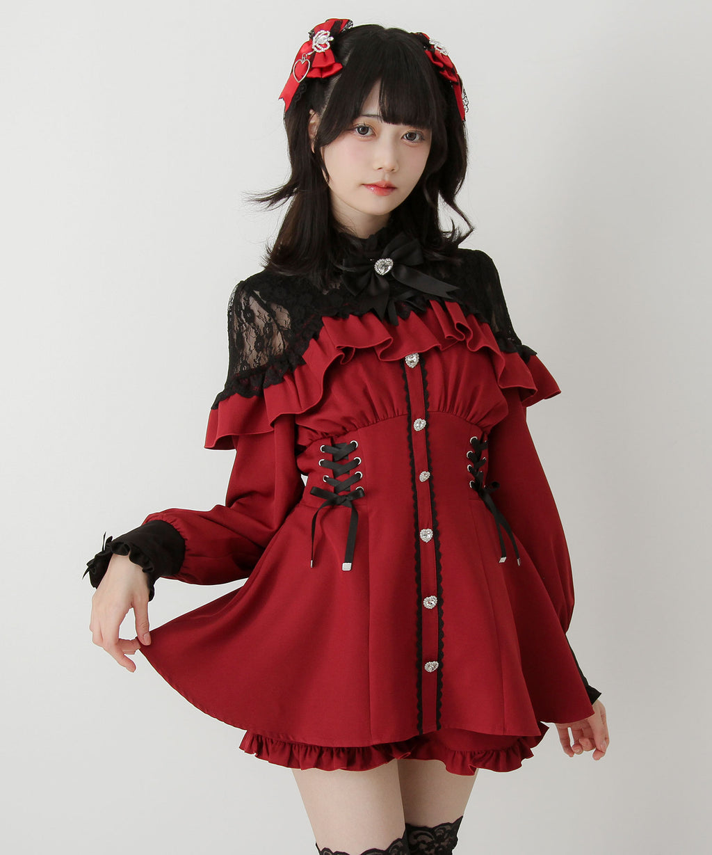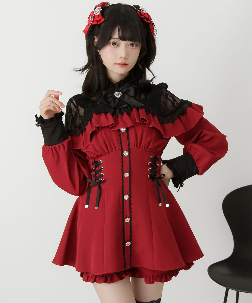 レース切替デザインがかわいくレースアップやキラキラハートビジューがかわいいセットアップ♪