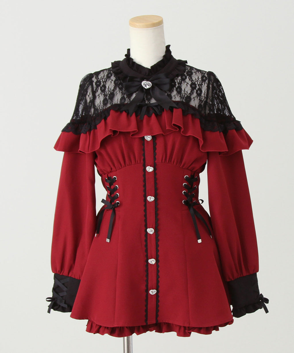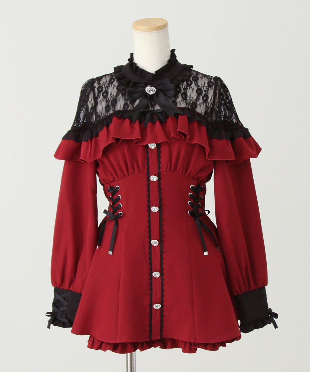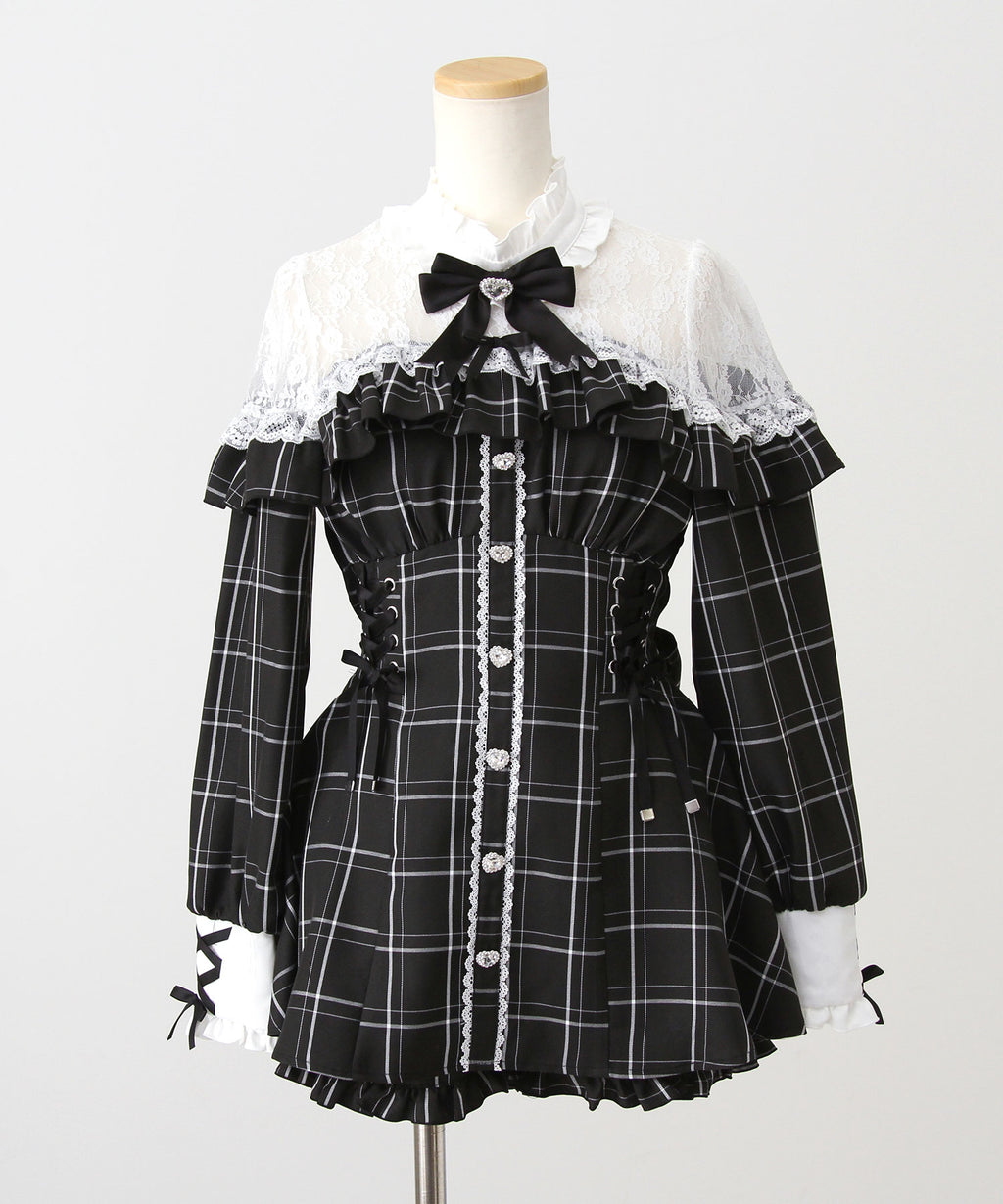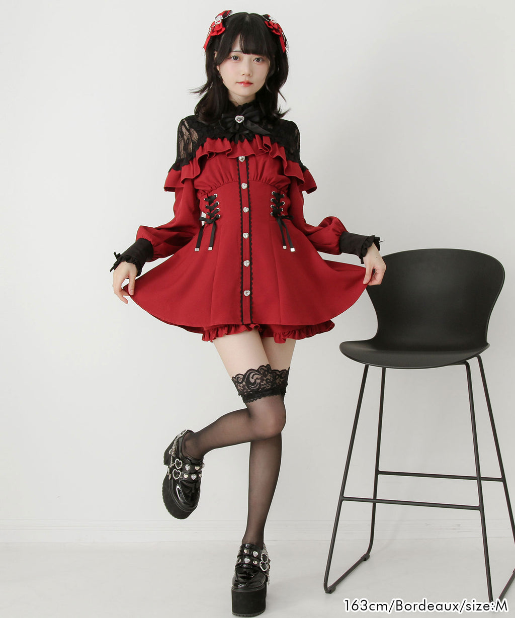レース切替デザインがかわいくレースアップやキラキラハートビジューがかわいいセットアップ♪