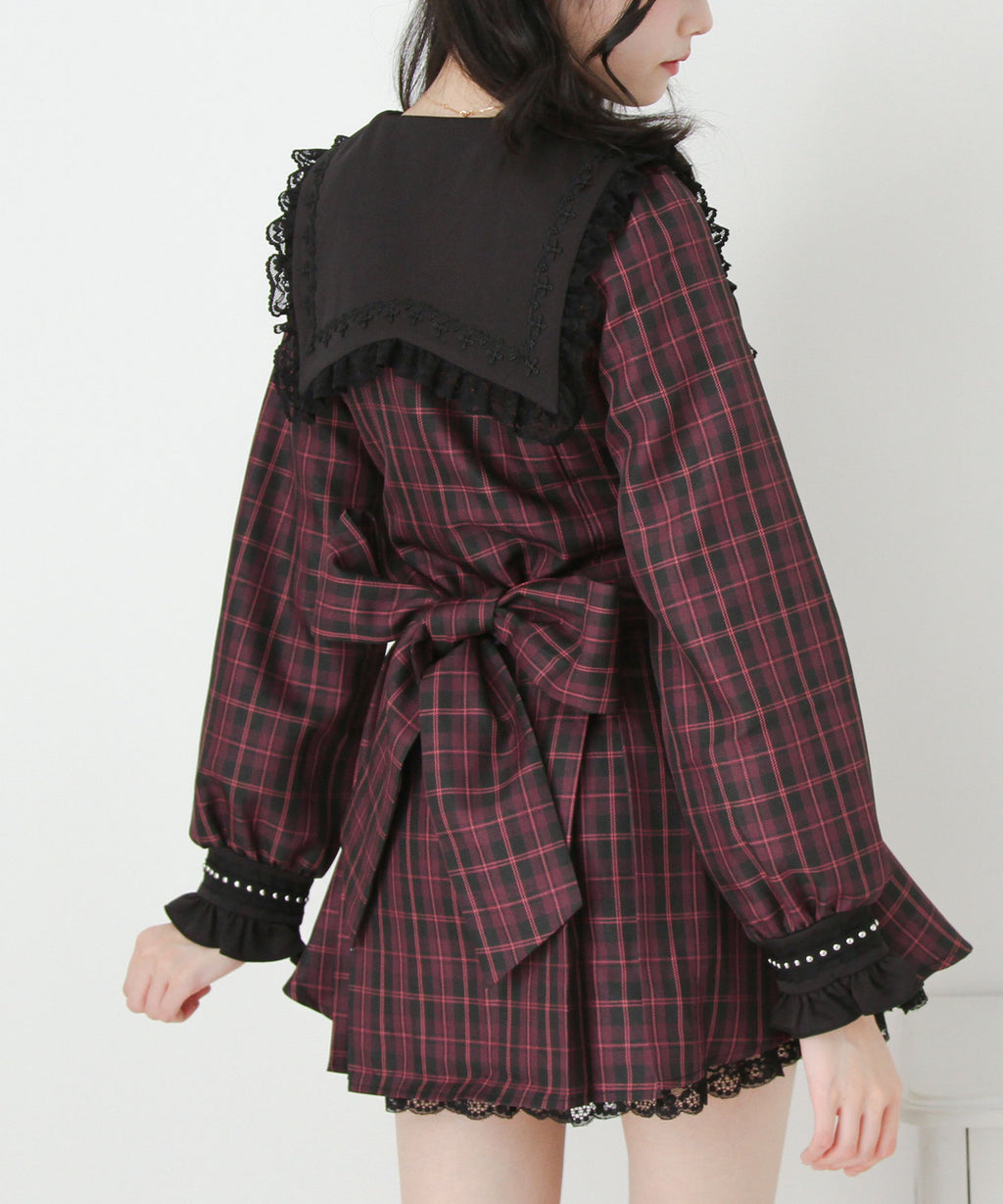 セーラー襟風のデザインが可愛らしさと清楚さを両立し、バックリボンでシルエット調整も可能です。