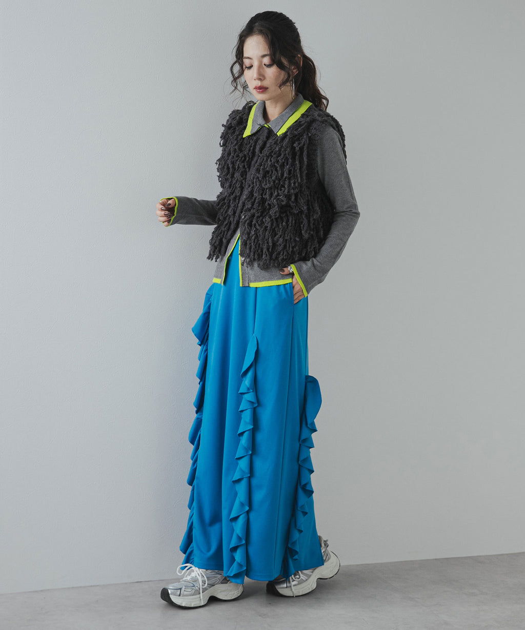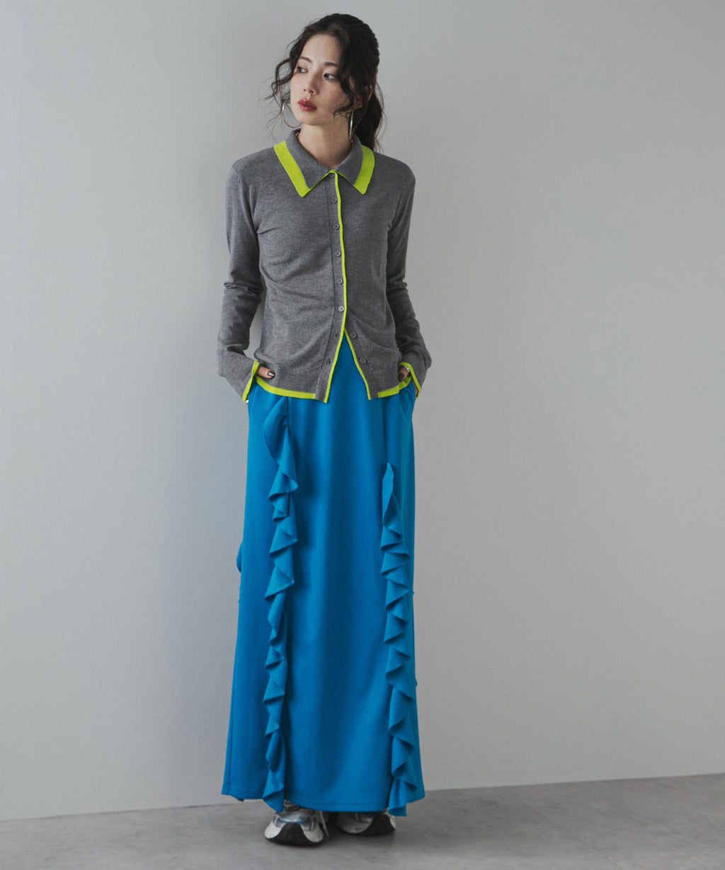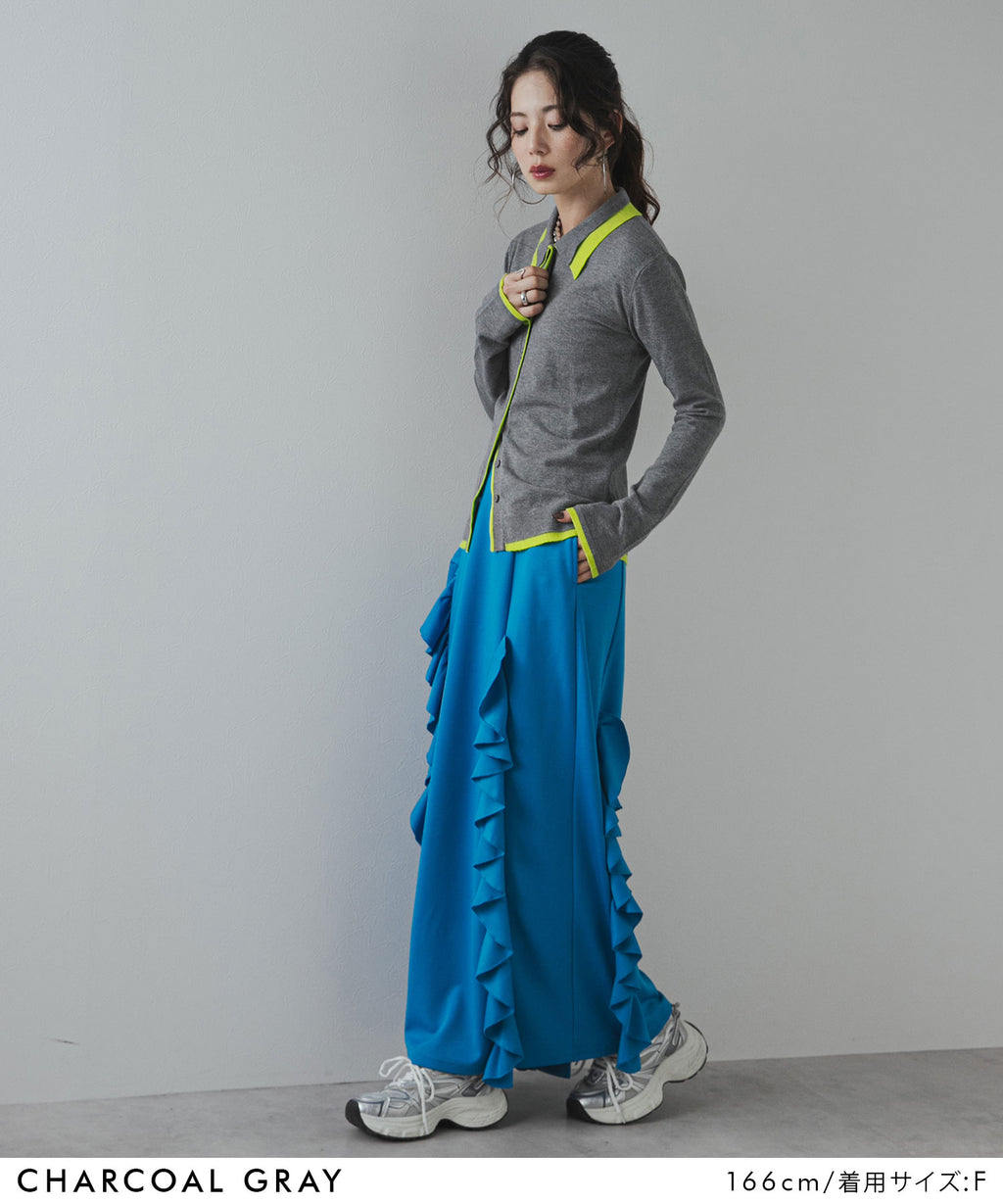 裾を開ければこなれ感が生まれ、袖口のさりげないフレアが女性らしい抜け感をプラス。